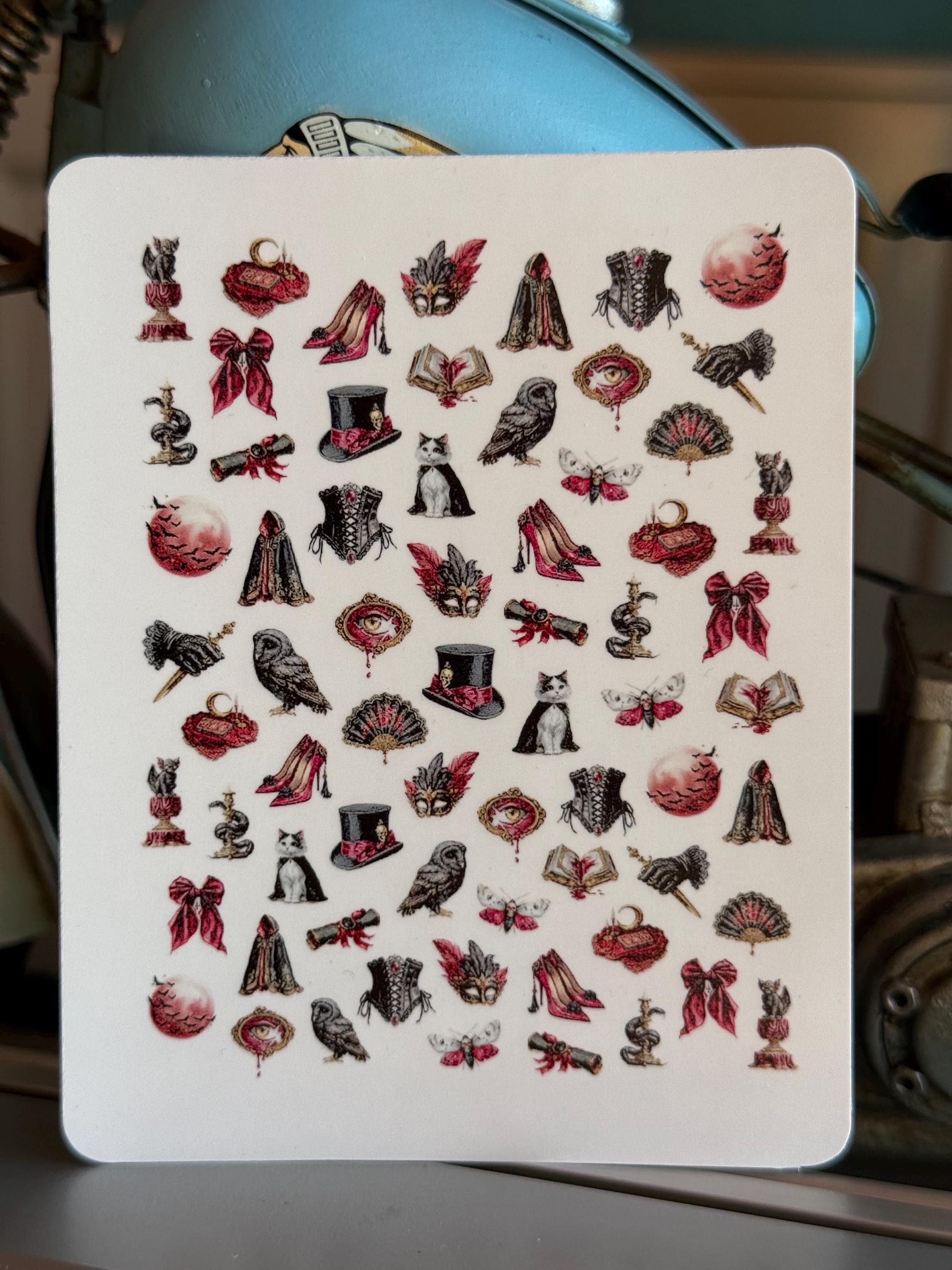2D Water Nail Stickers Gothic, Stickers for Nails, Nail Art Red Black Elements