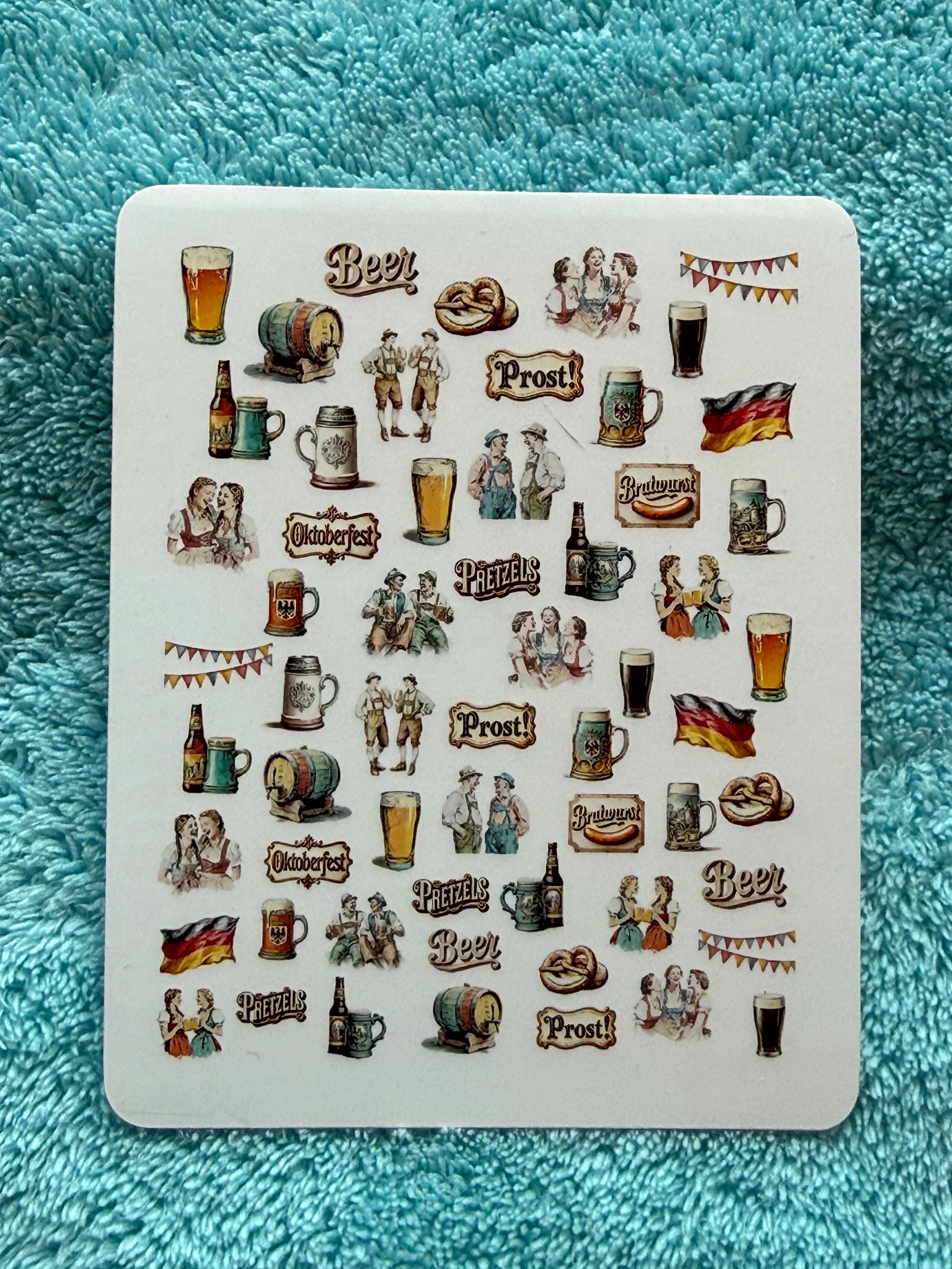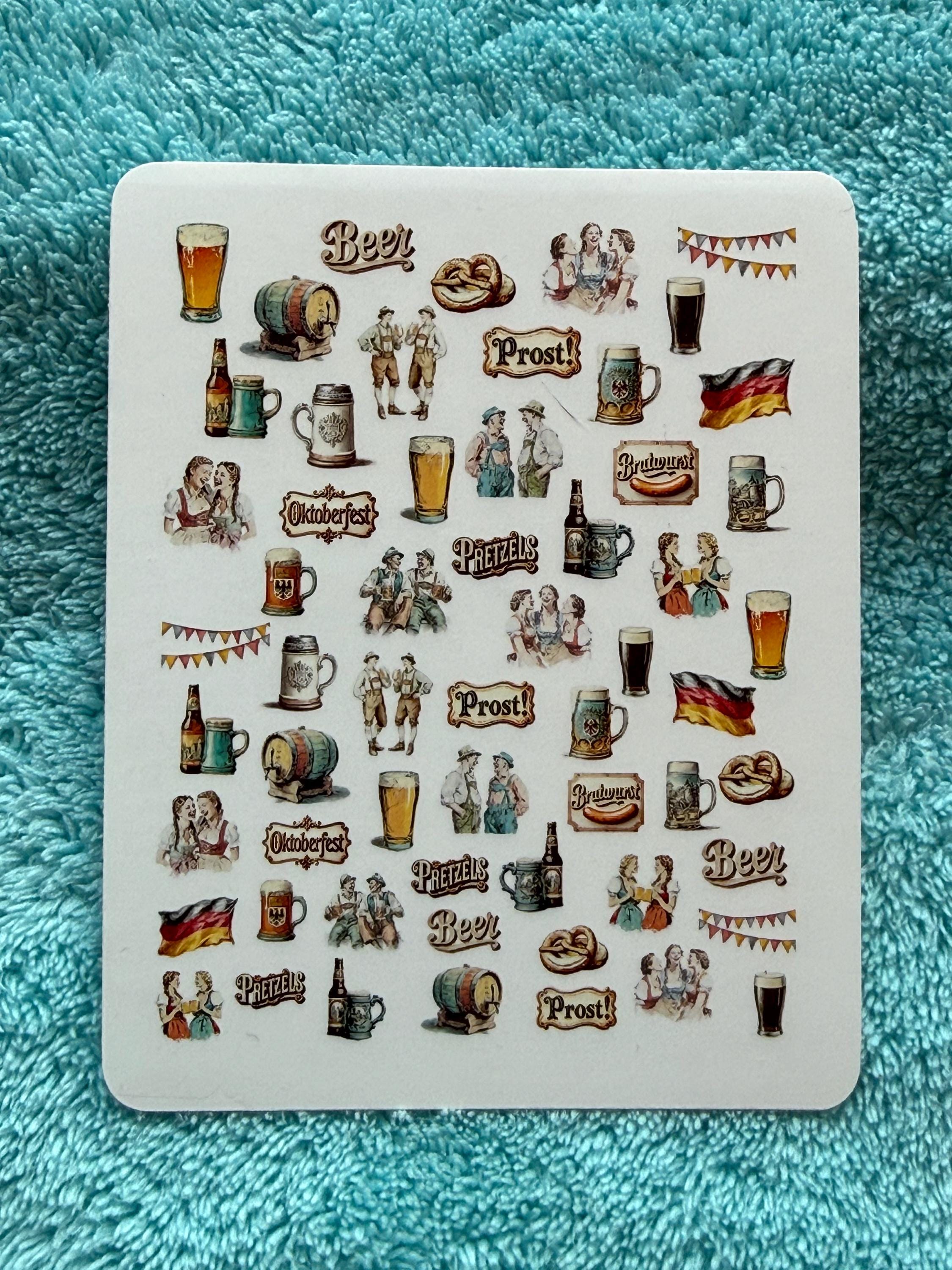 2D Oktoberfest Water Slide Nail Stickers, Nail Art Stickers for Beer Lovers, Beer Festival, Beer Garden