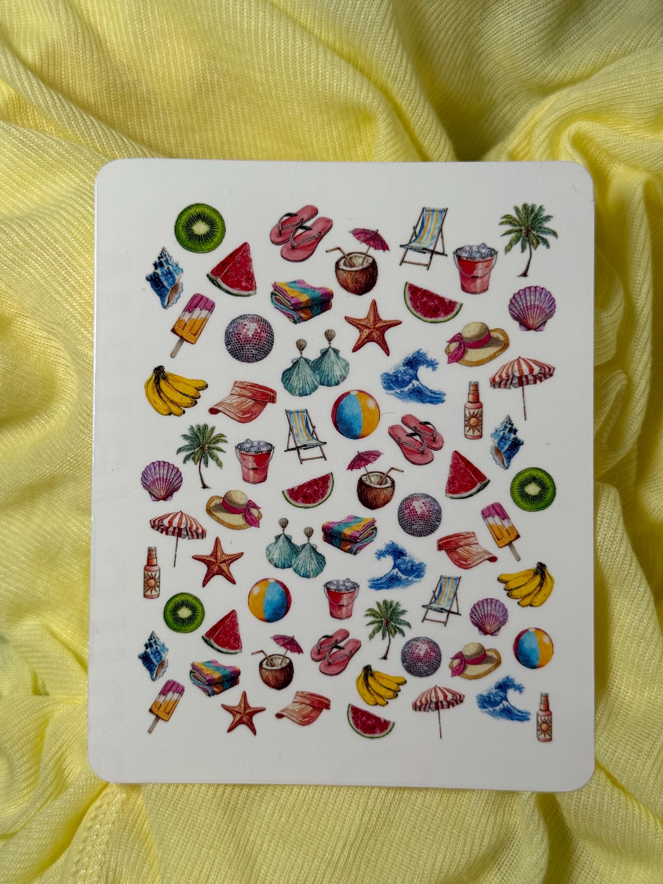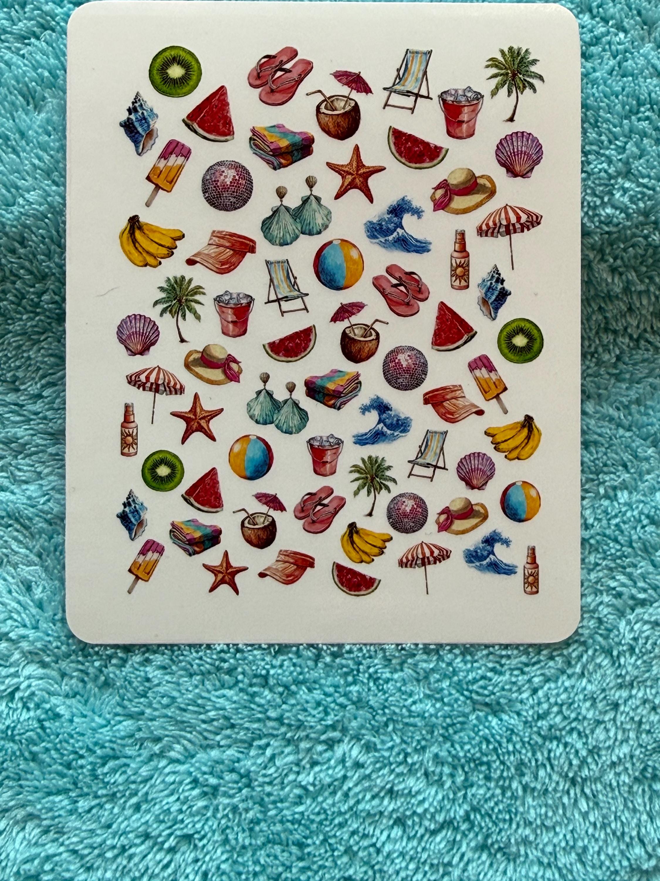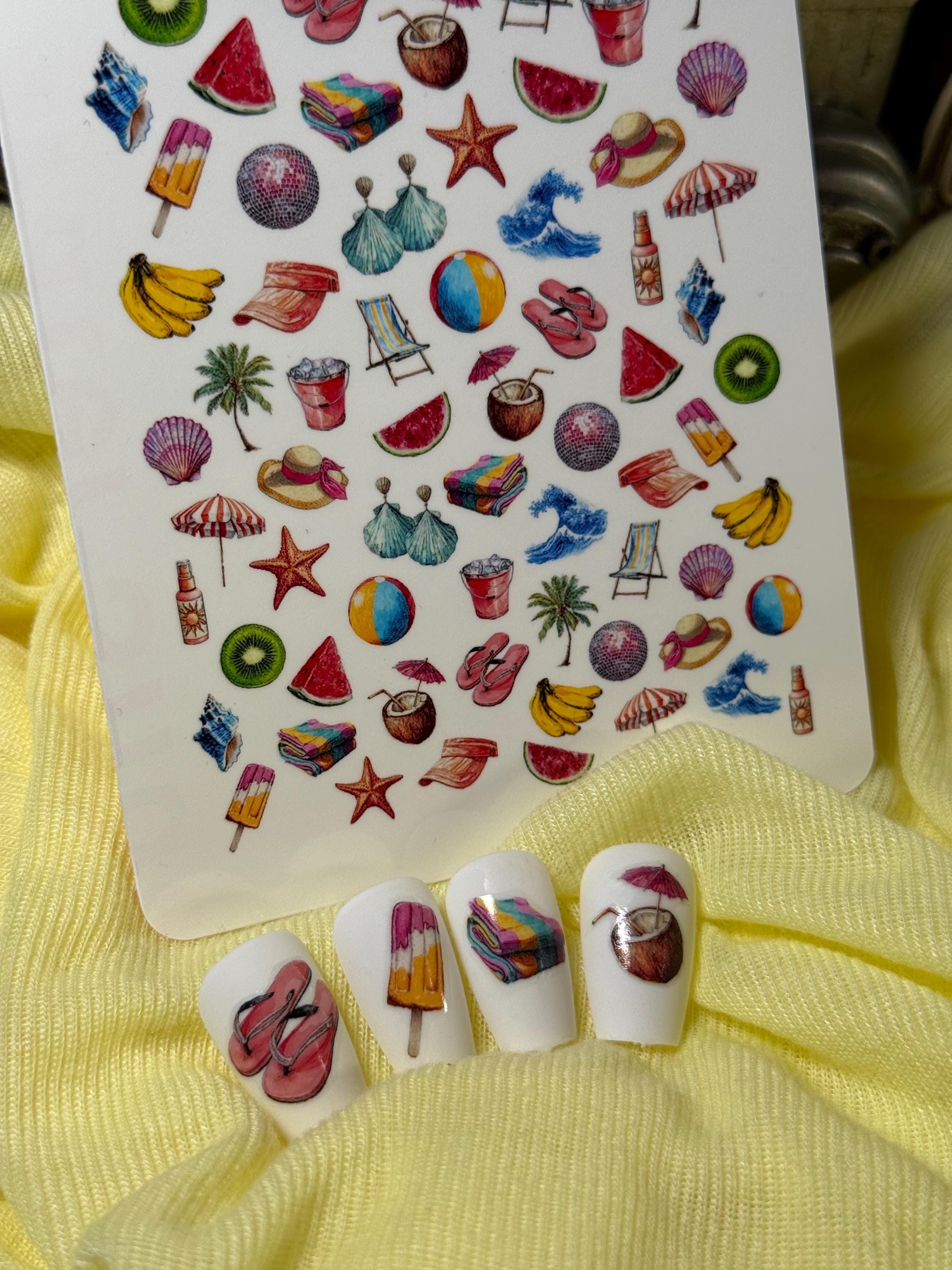 Summer Party Water Nail Stickers, Water Slide Decals, Retro Nail Art Stickers, Holiday, Sun