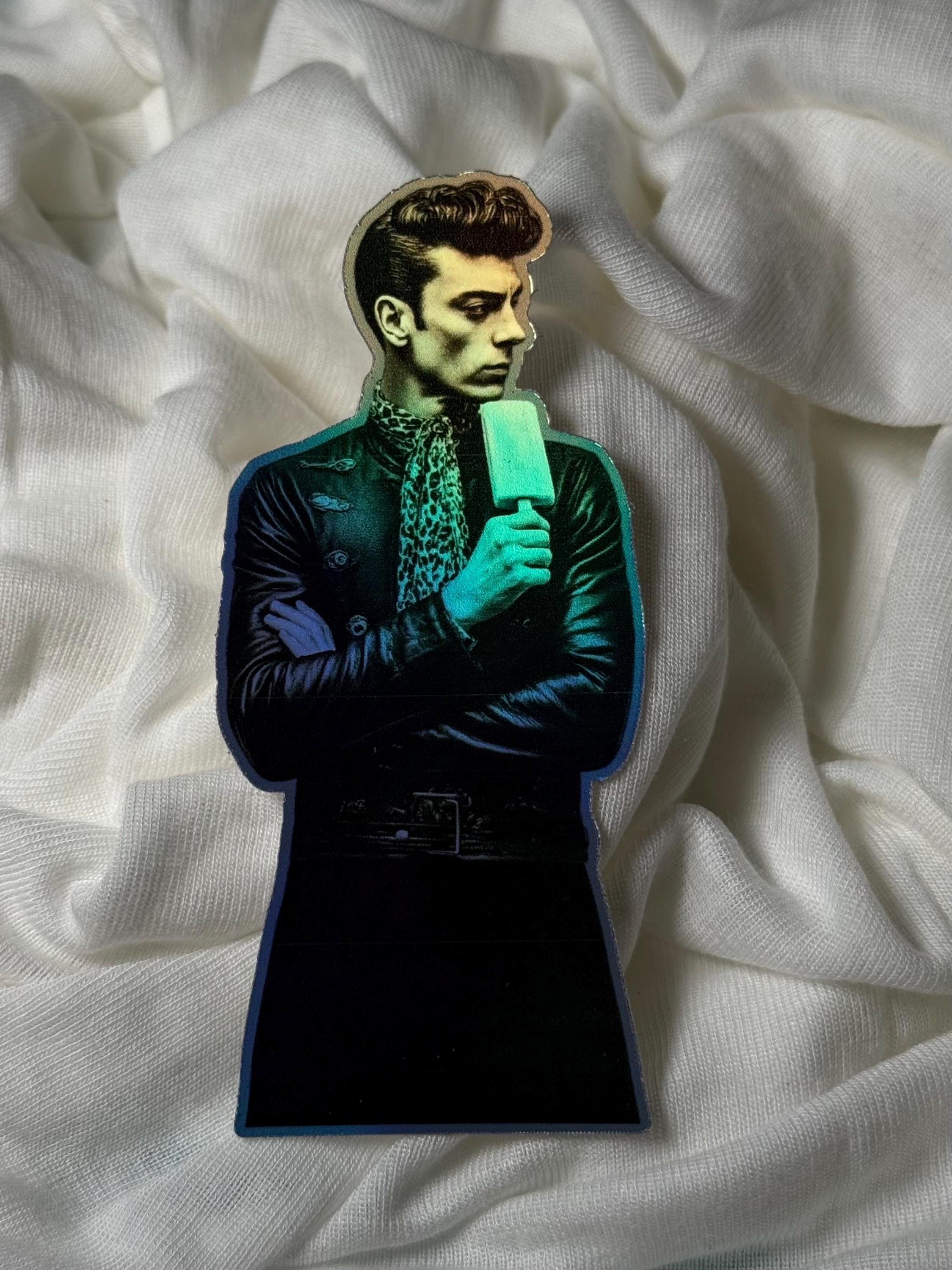 Quirky Man with Ice Cream Vinyl Sticker, Hologram, Waterproof, Approx. 4 inches / 10 cm