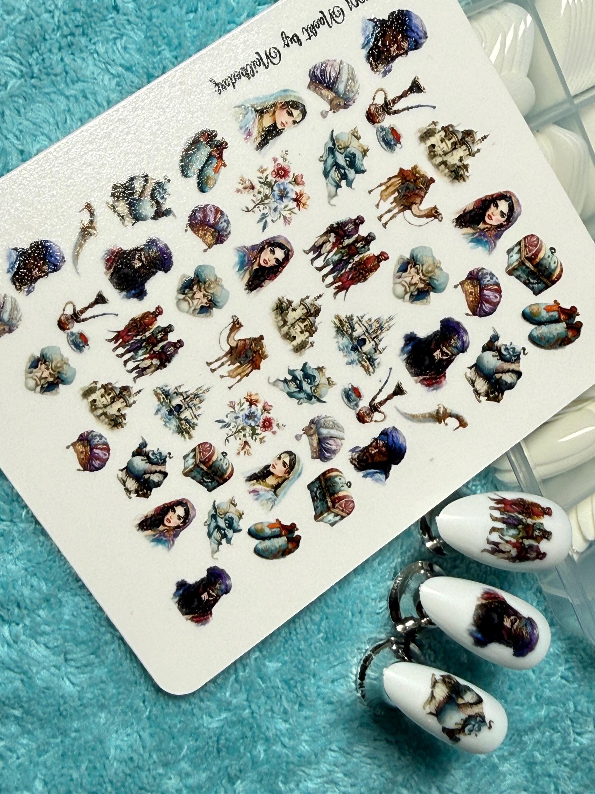 1001 Nights Water Slide Nail Stickers, Water Slide Nail Art Stickers, Magic Lamp, Aladdin, Princess, Fairy Tale