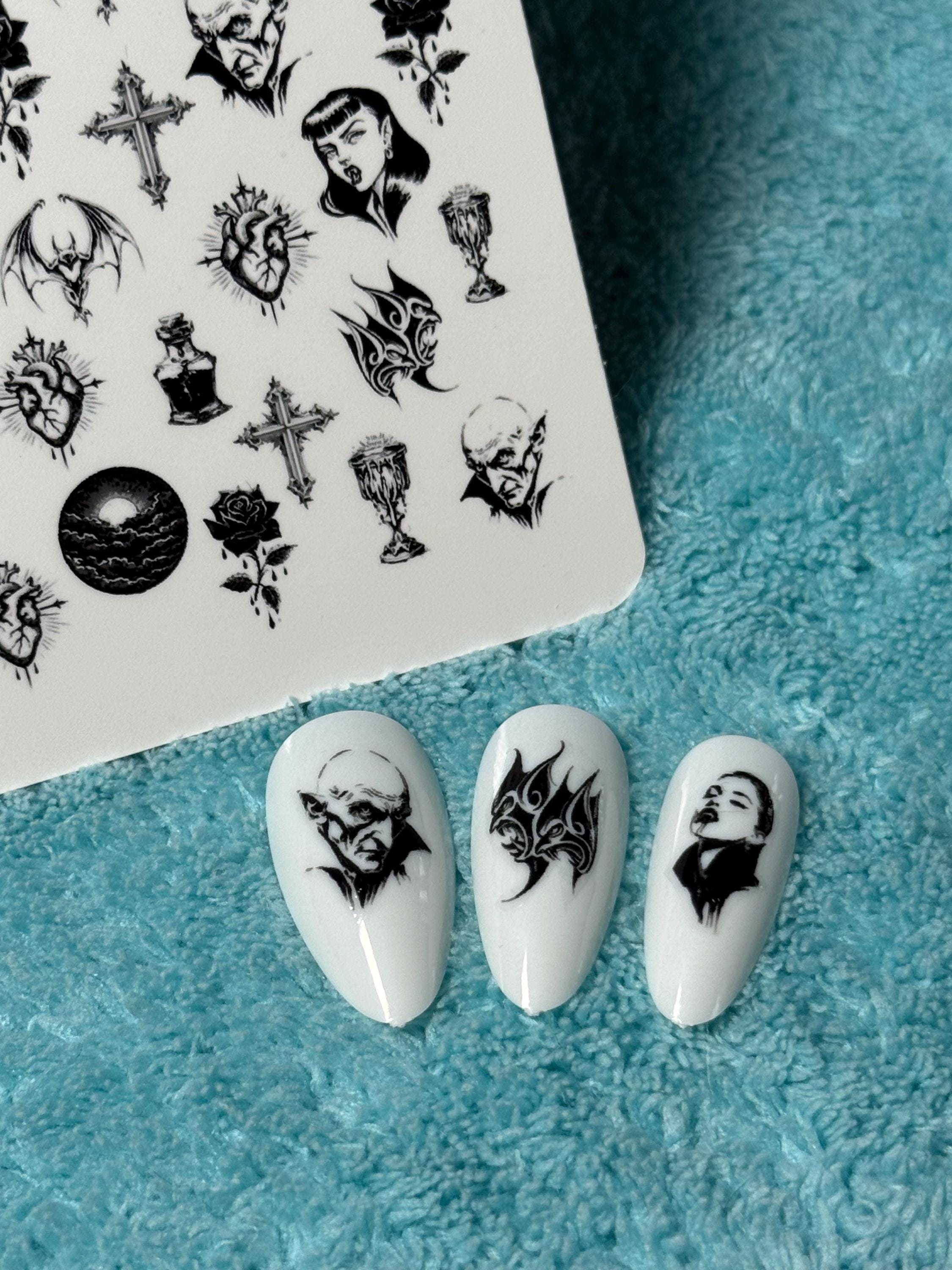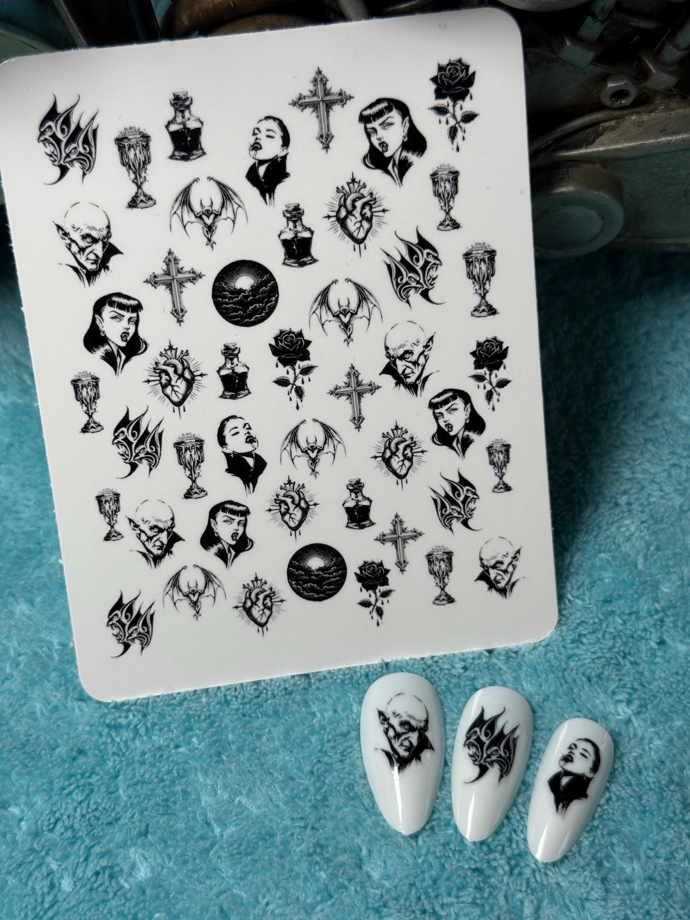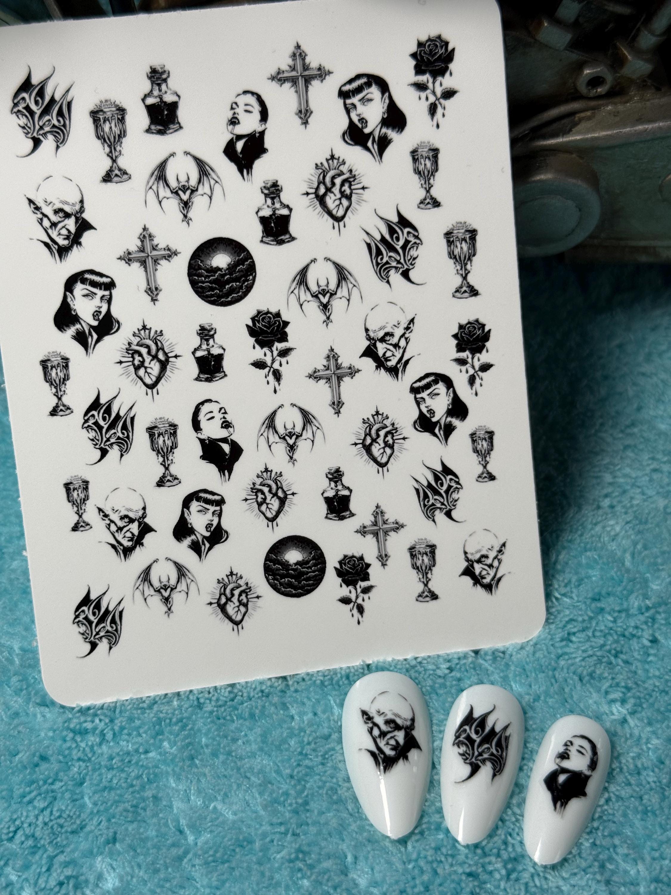 Creepy Gothic Water Nail Stickers, Water Slide Stickers for Nails, Vampire Nail Art Stickers, Old School