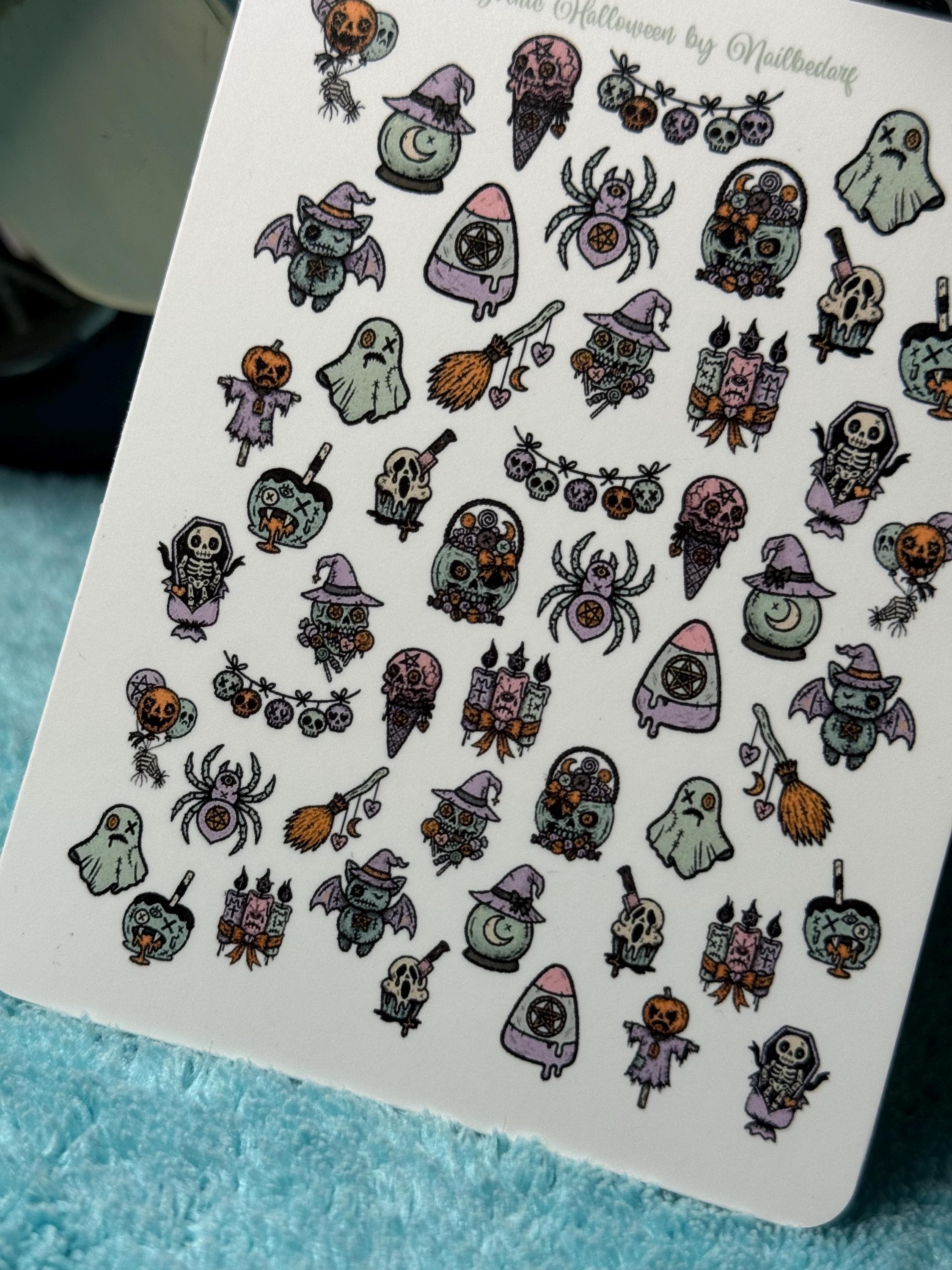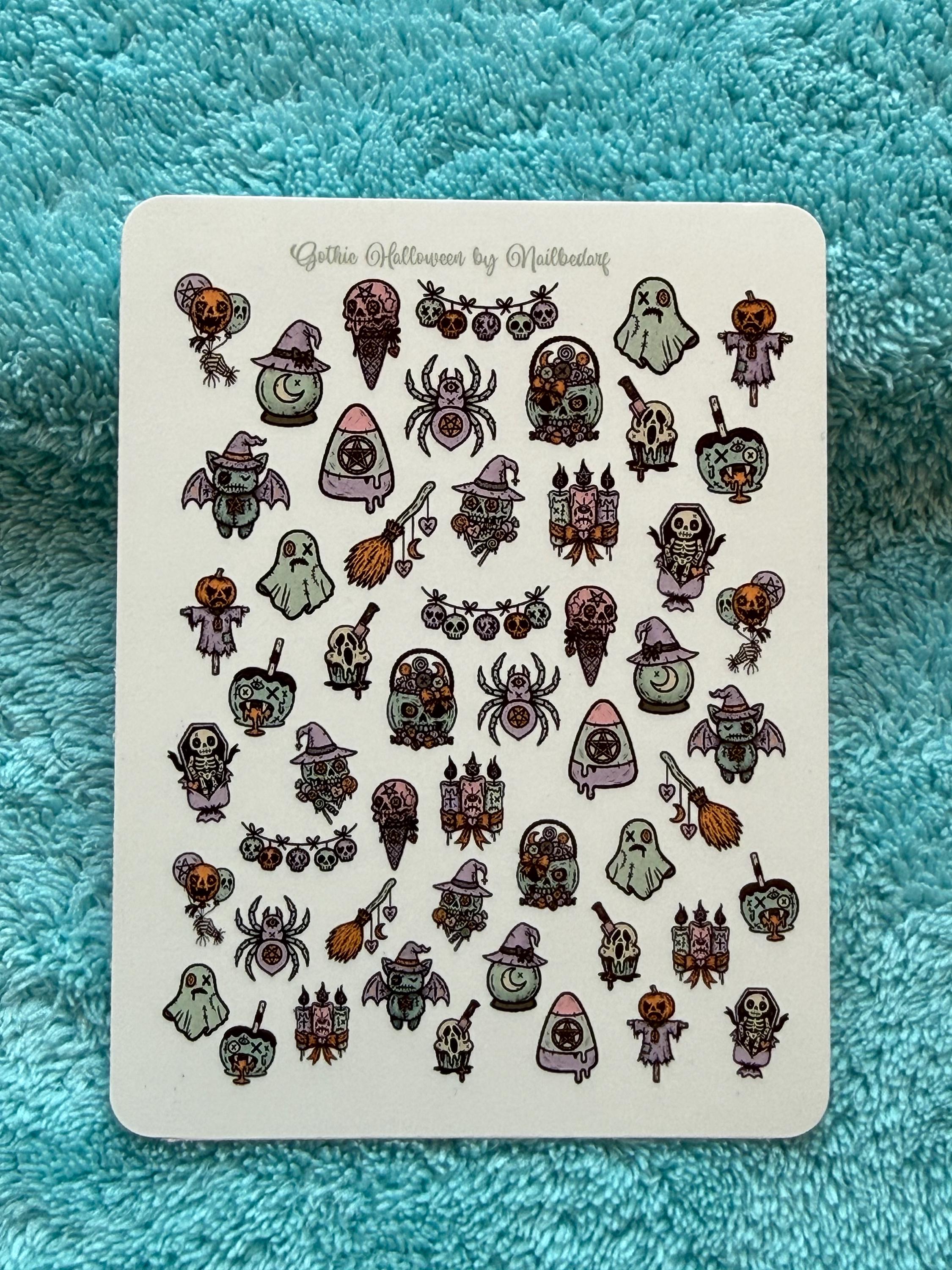 Cute Gothic Halloween Water Slide Stickers for Nails, Nail Art Nail Stickers: Cursed Ghost, Witch, Skull, Candy