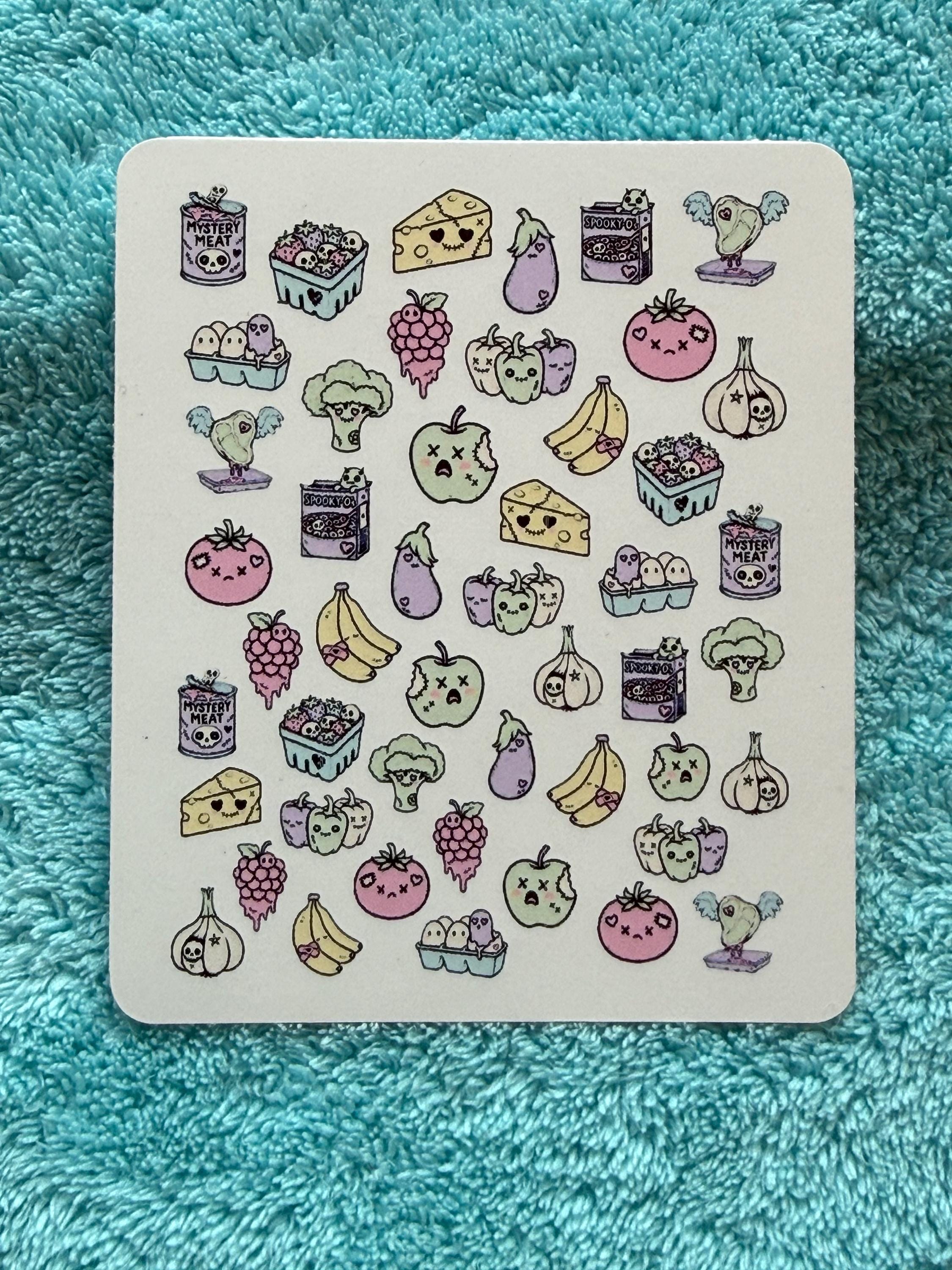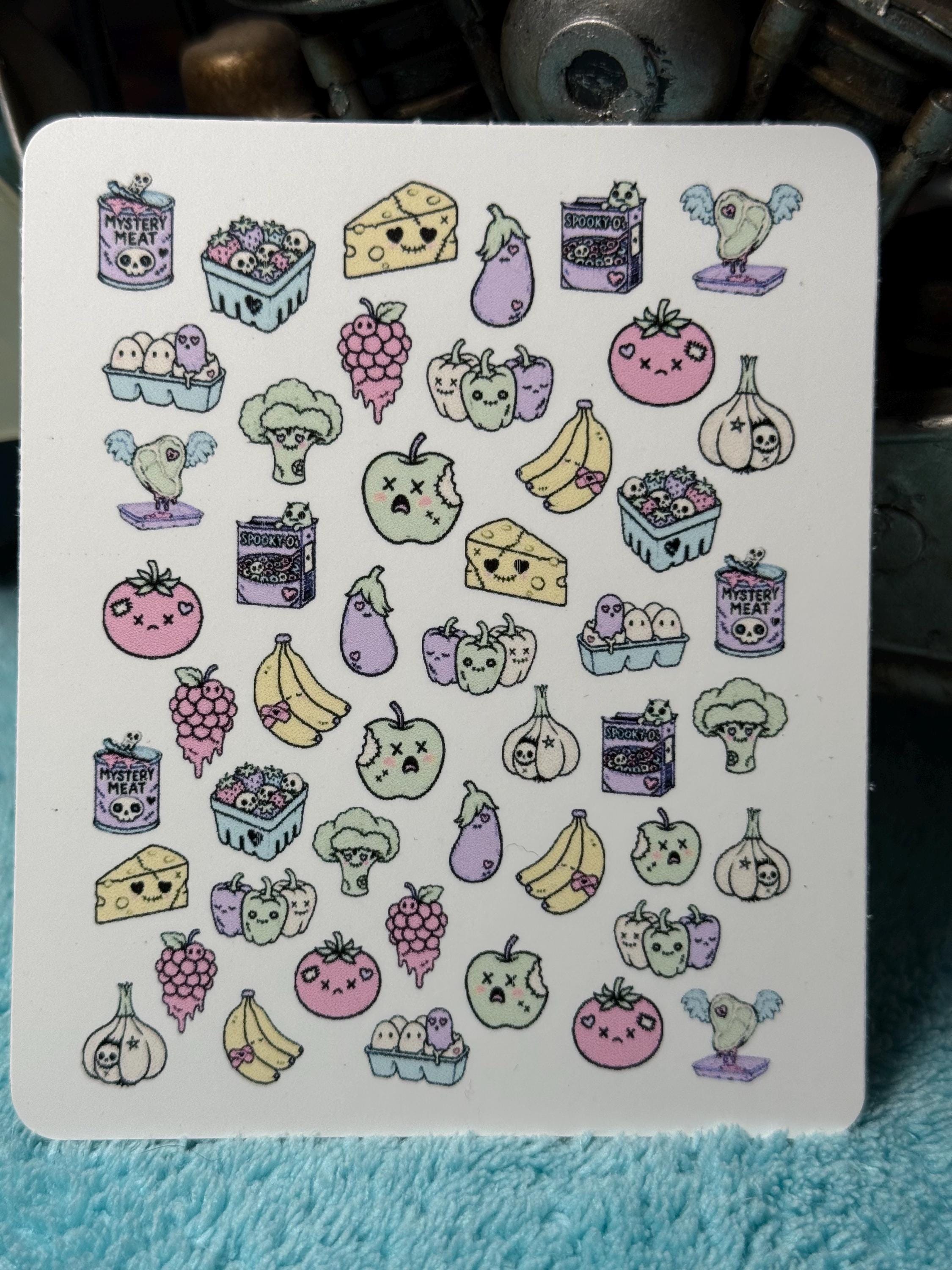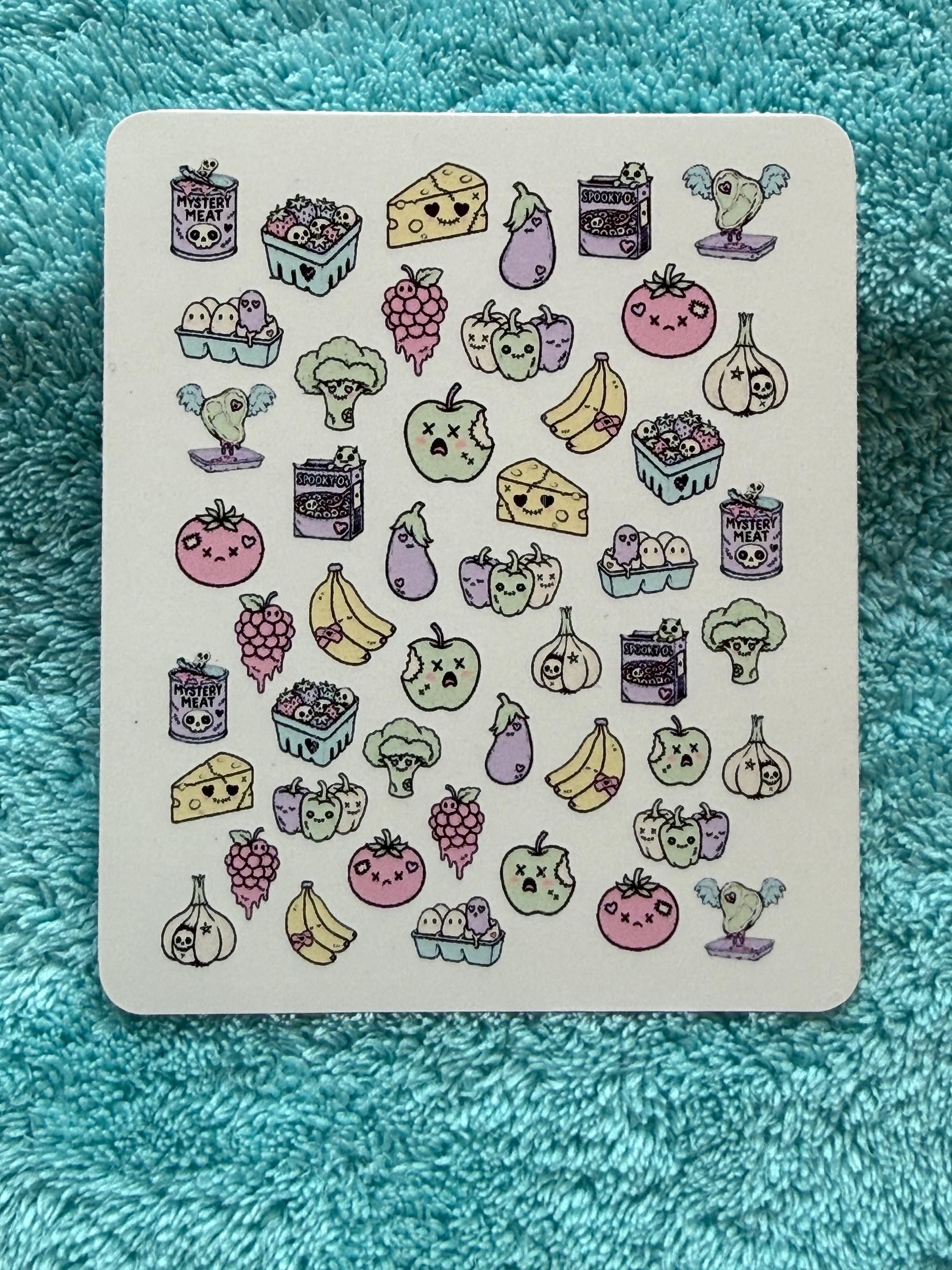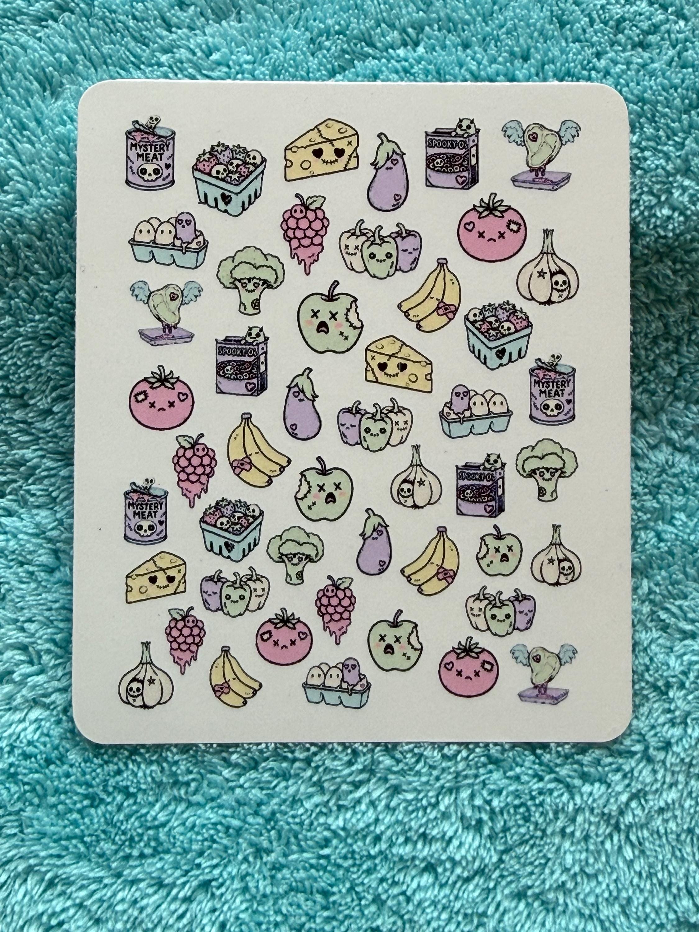 Cute Food Water Slide Stickers for Nails, Nail Art Nail Stickers: Cursed Cheese, Strawberry Skull, Sick Banana
