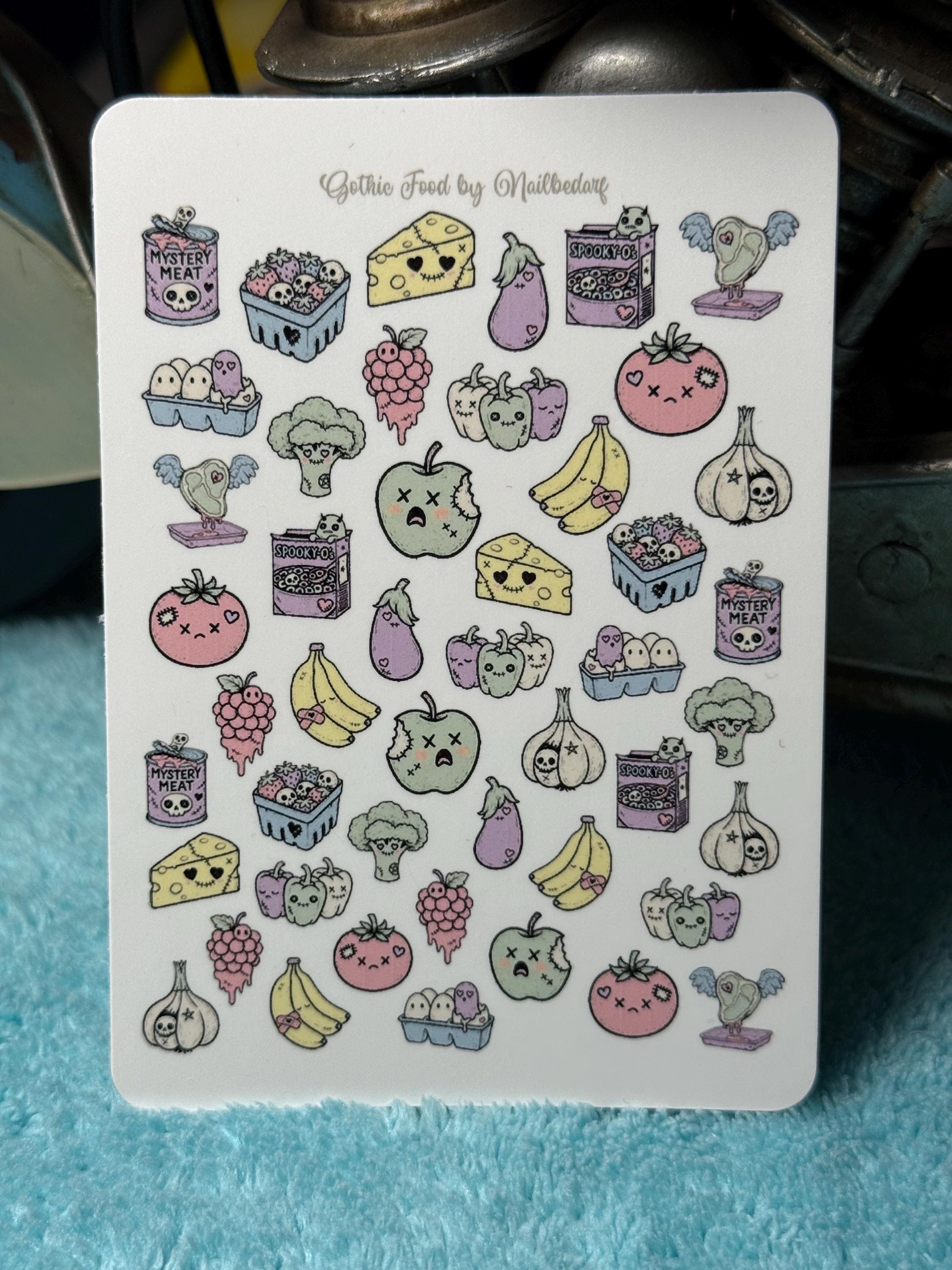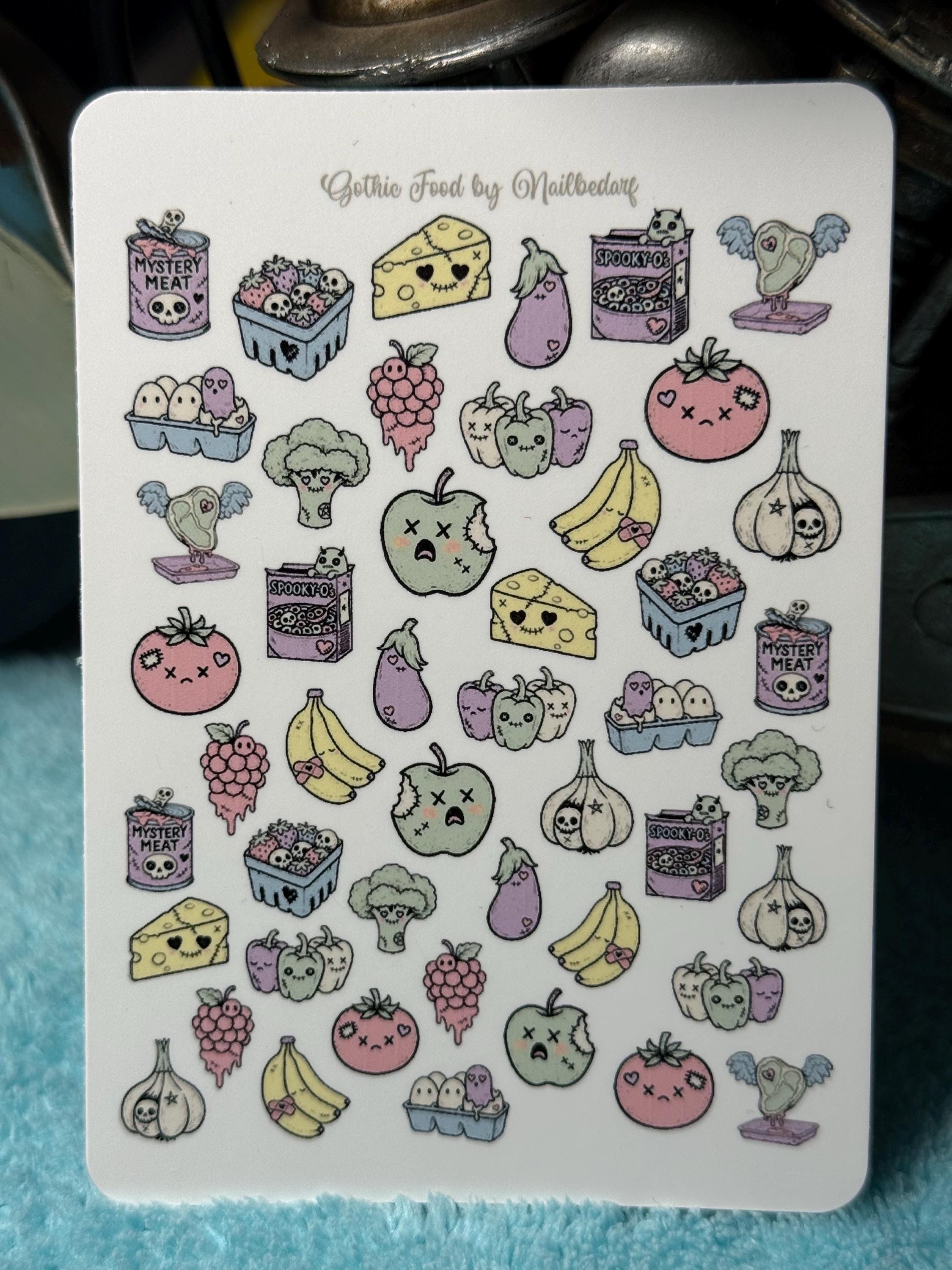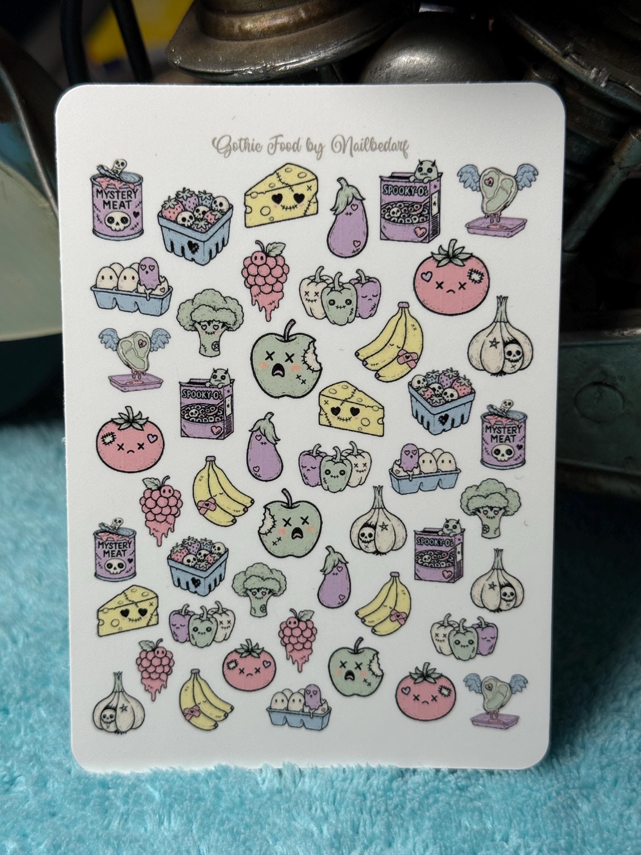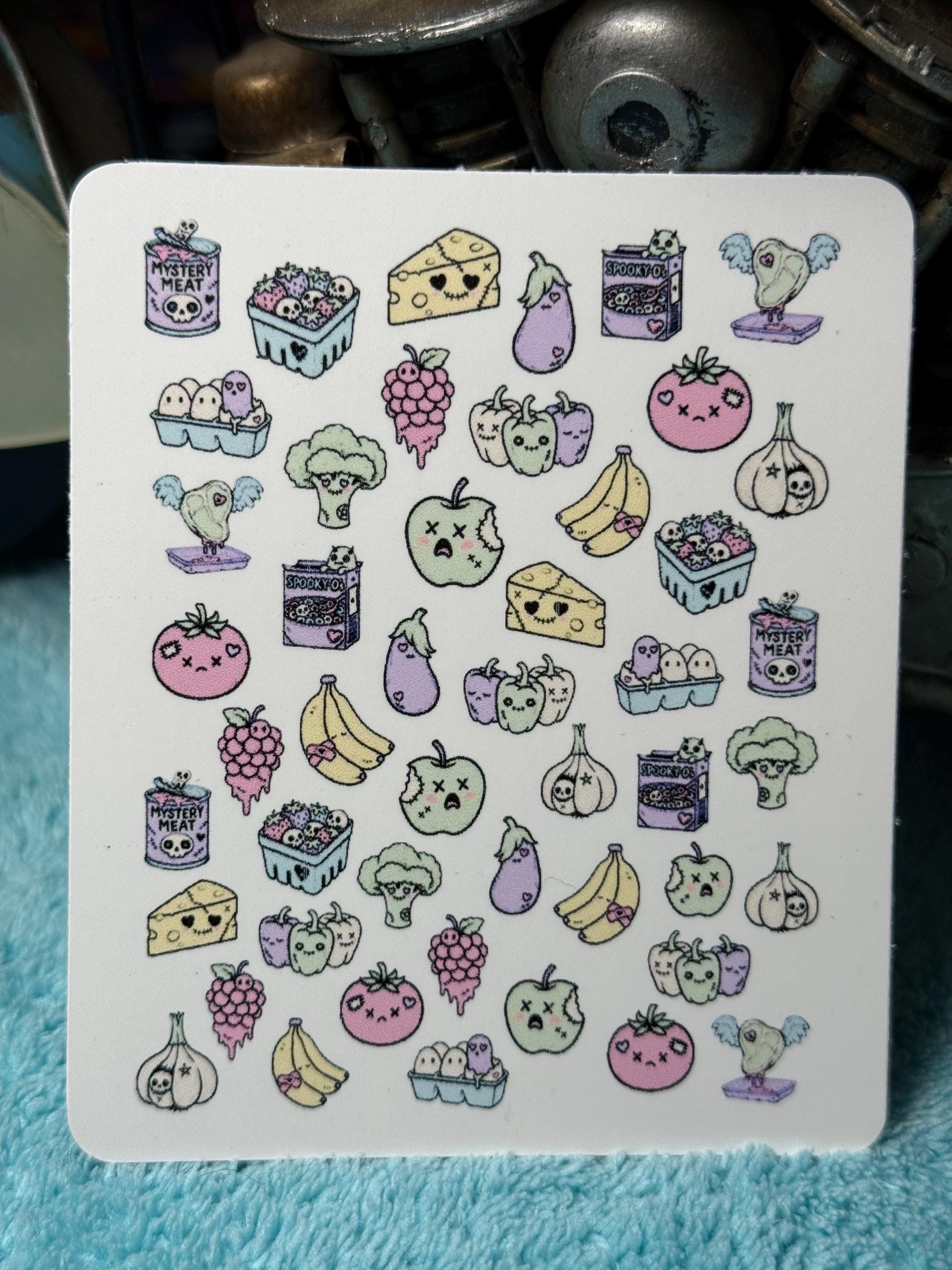 Cute Food Water Slide Stickers for Nails, Nail Art Nail Stickers: Cursed Cheese, Strawberry Skull, Sick Banana
