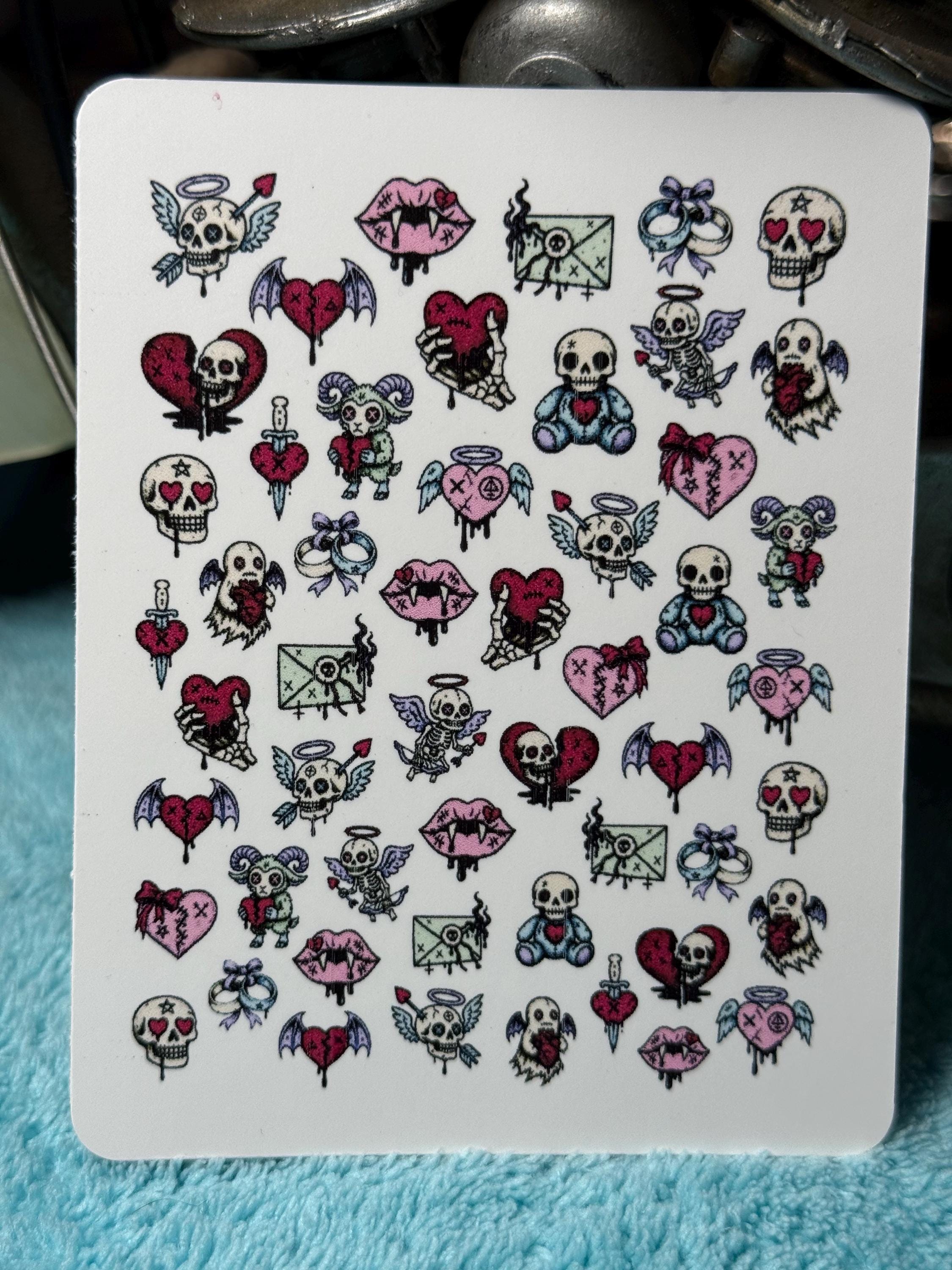 Gothic Pastel Valentine's Day Water Slide Stickers for Nails, Creepy Cute Nail Art Stickers, Cursed Valentine's Day Greeting