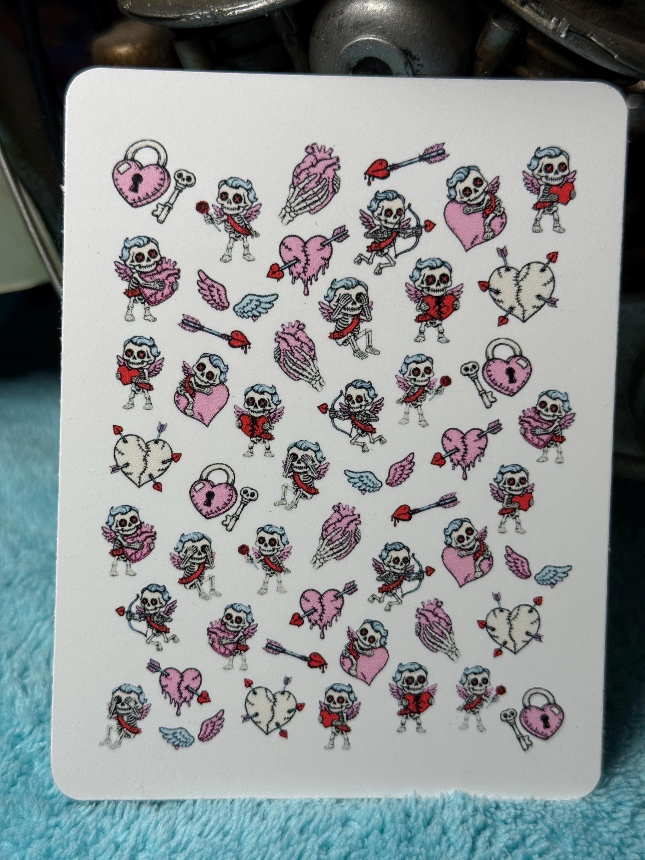 Gothic Pastel Valentine's Day Water Slide Stickers for Nails, Creepy Cute Nail Art Stickers, Cursed Valentine's Day Greeting