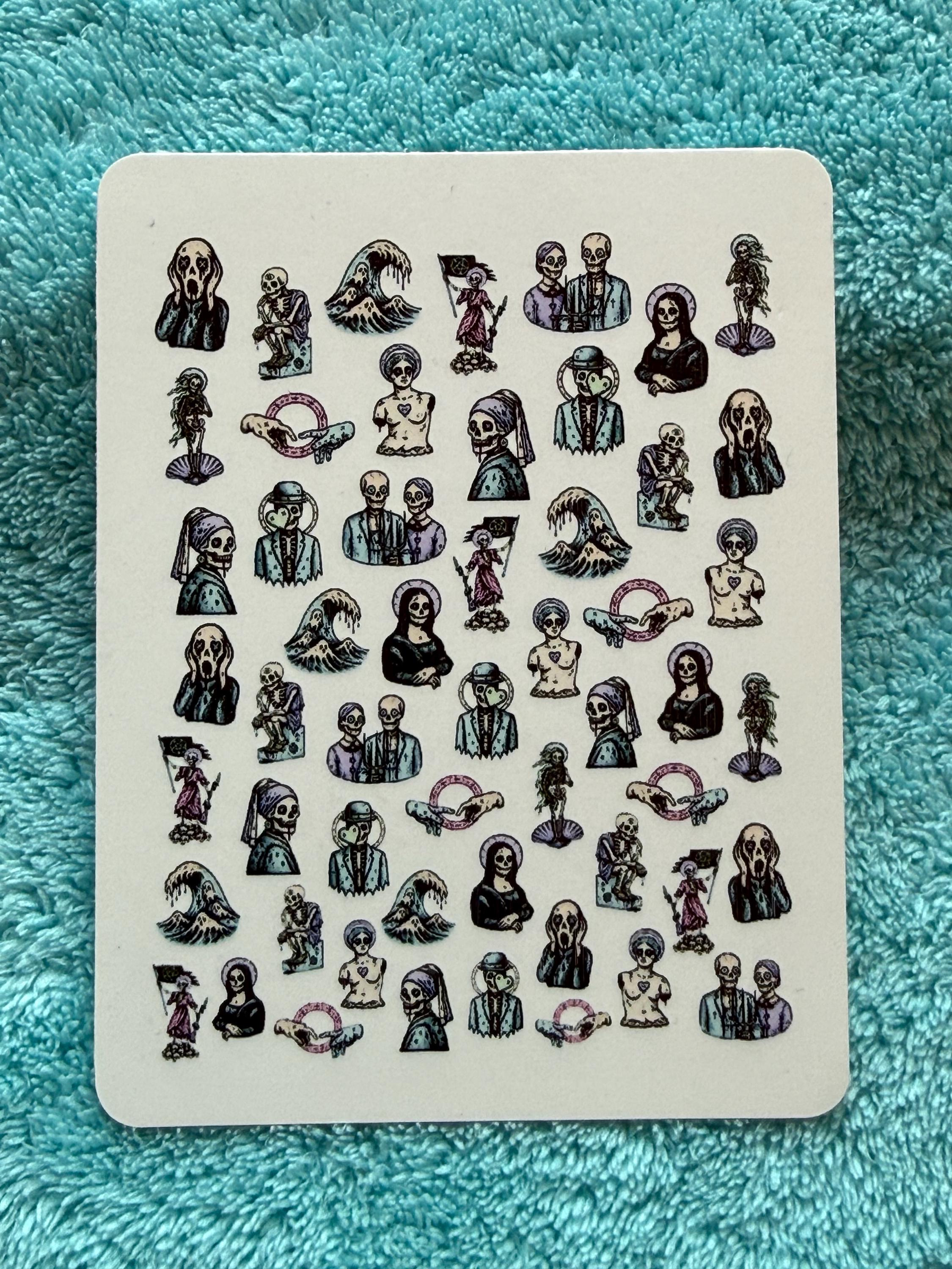 Gothic pastel classic art waterslide stickers for nails, nail art nail stickers, creepy cute horror