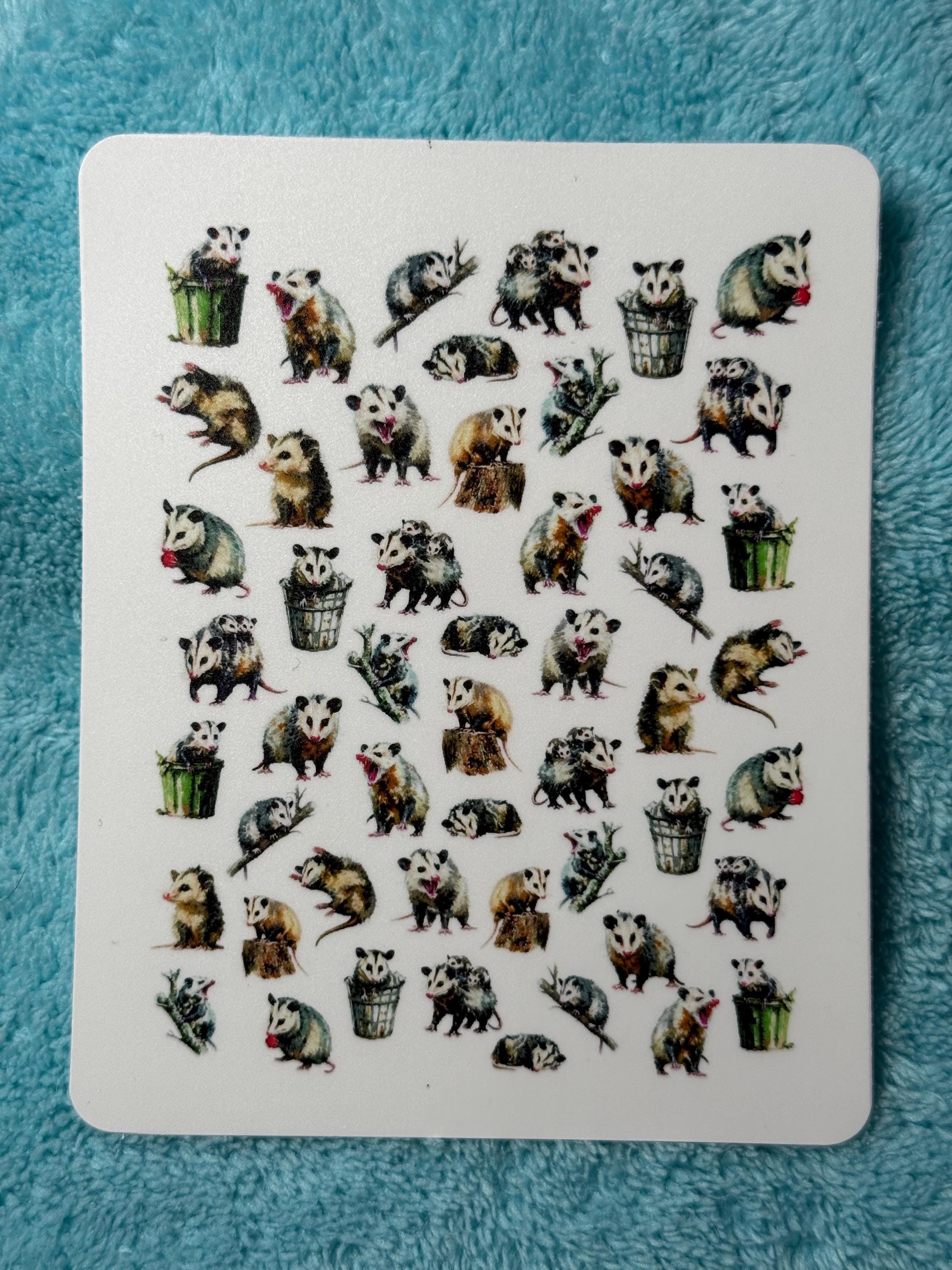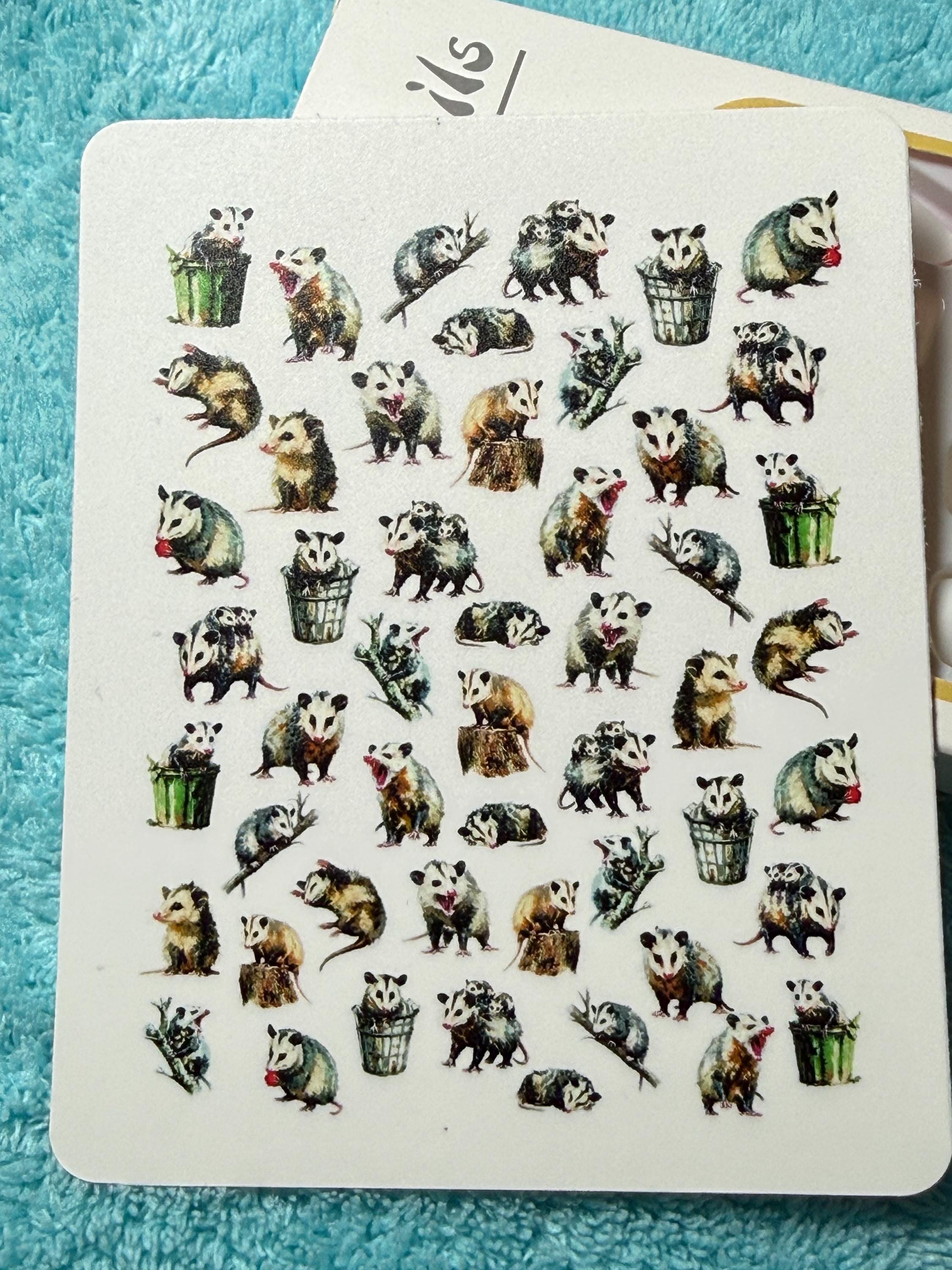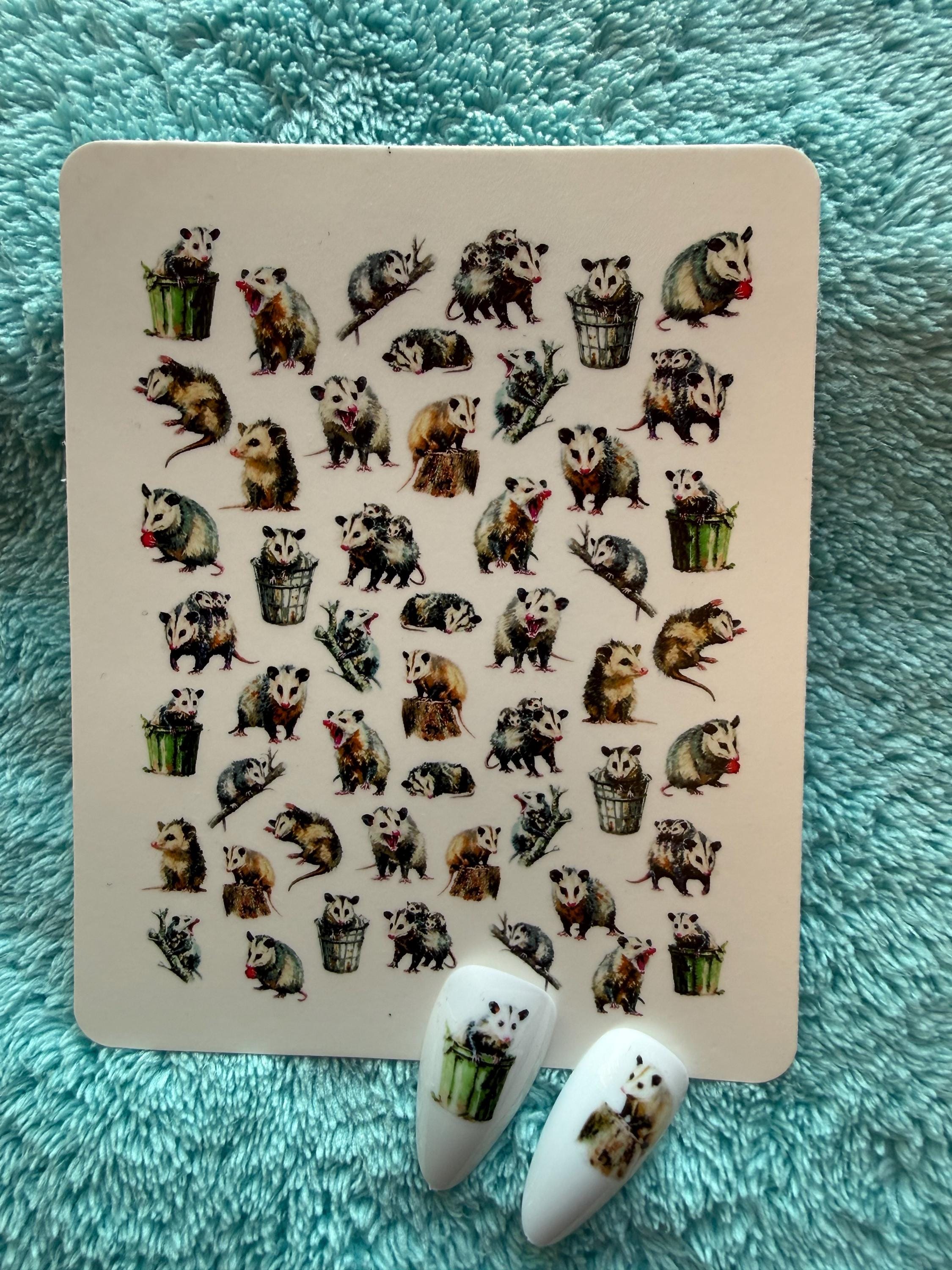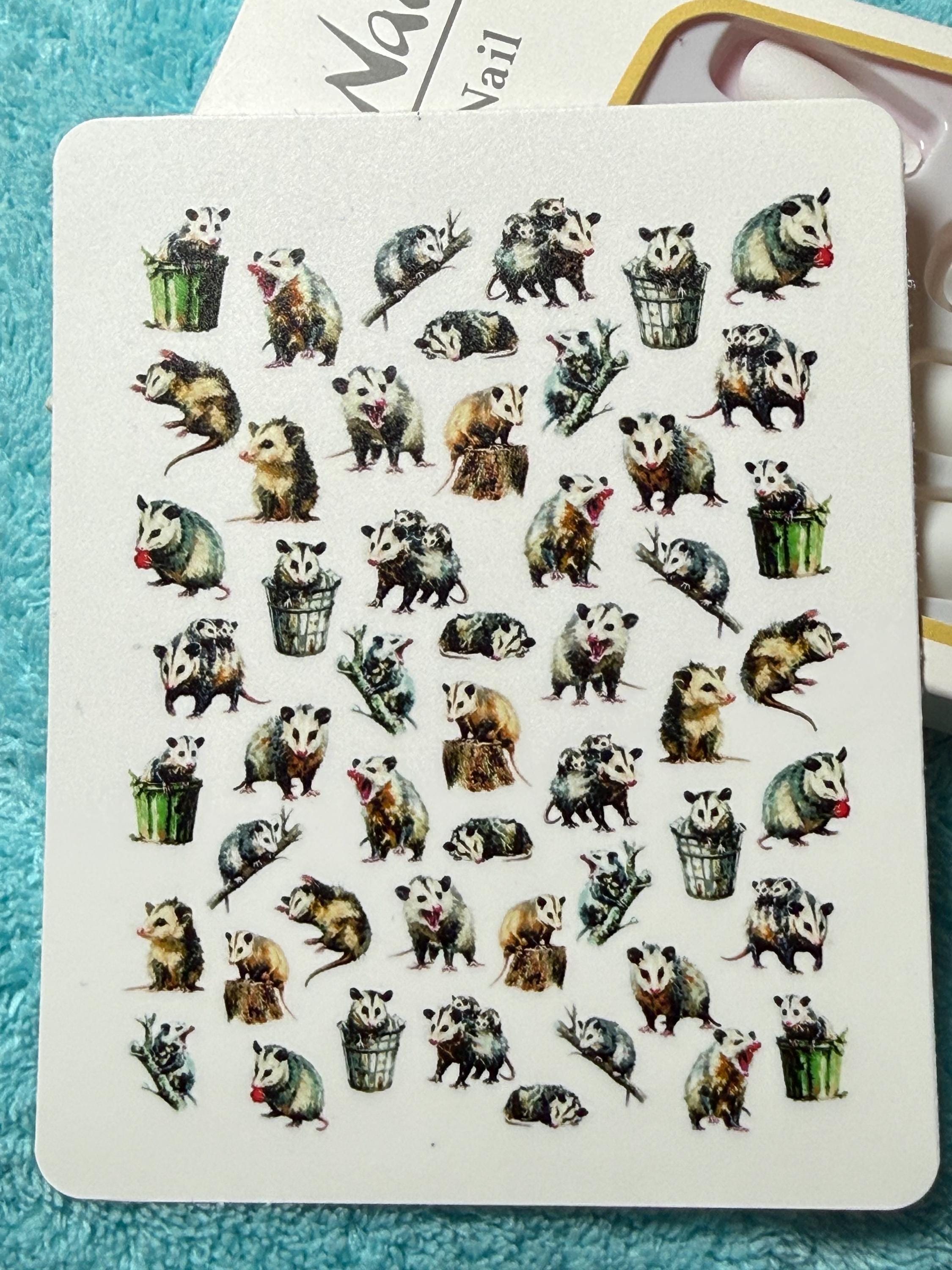 Opossum Nail Art Water Slide Stickers for Nails, Marsupial Nail Stickers, Wildlife Forest