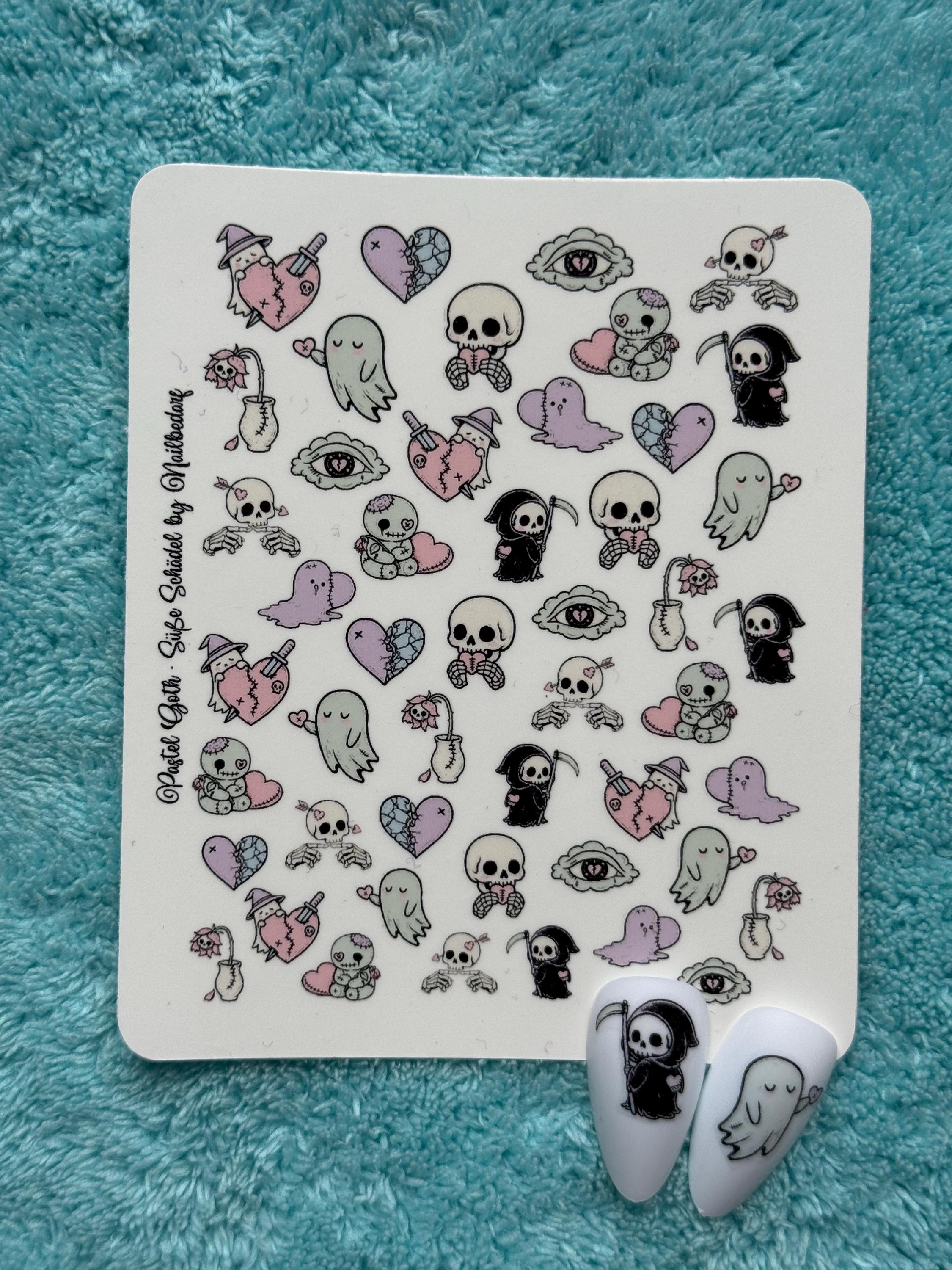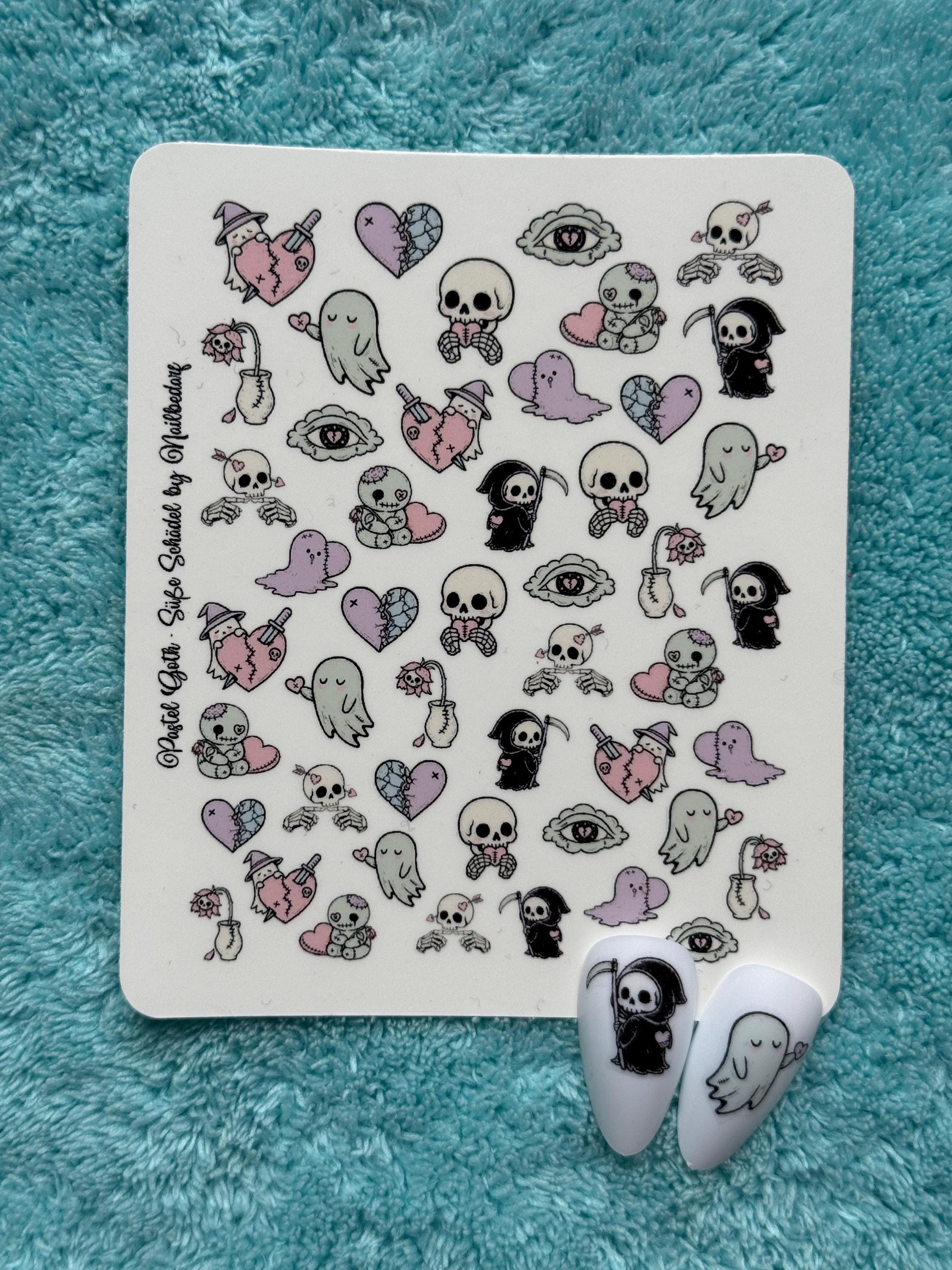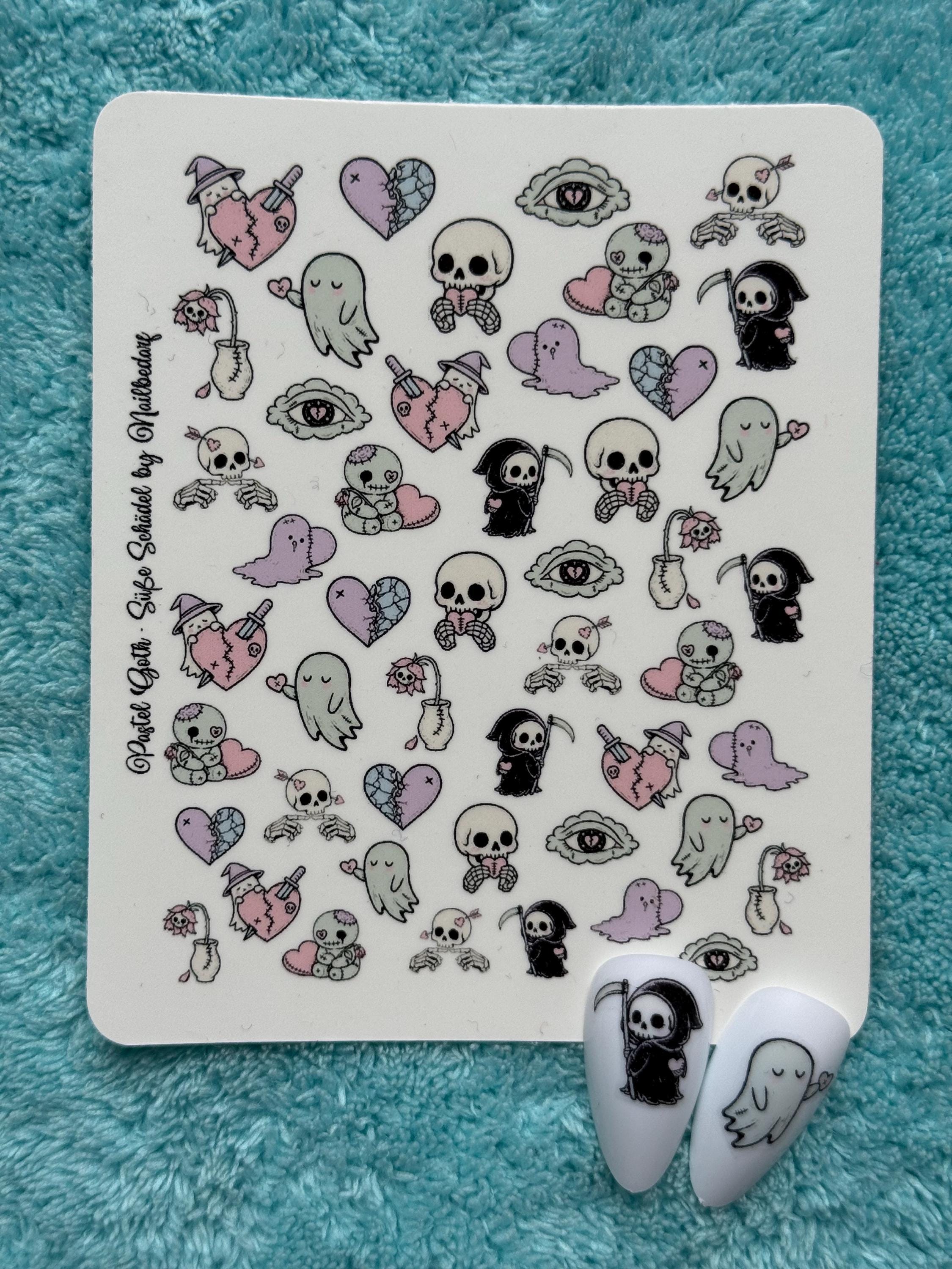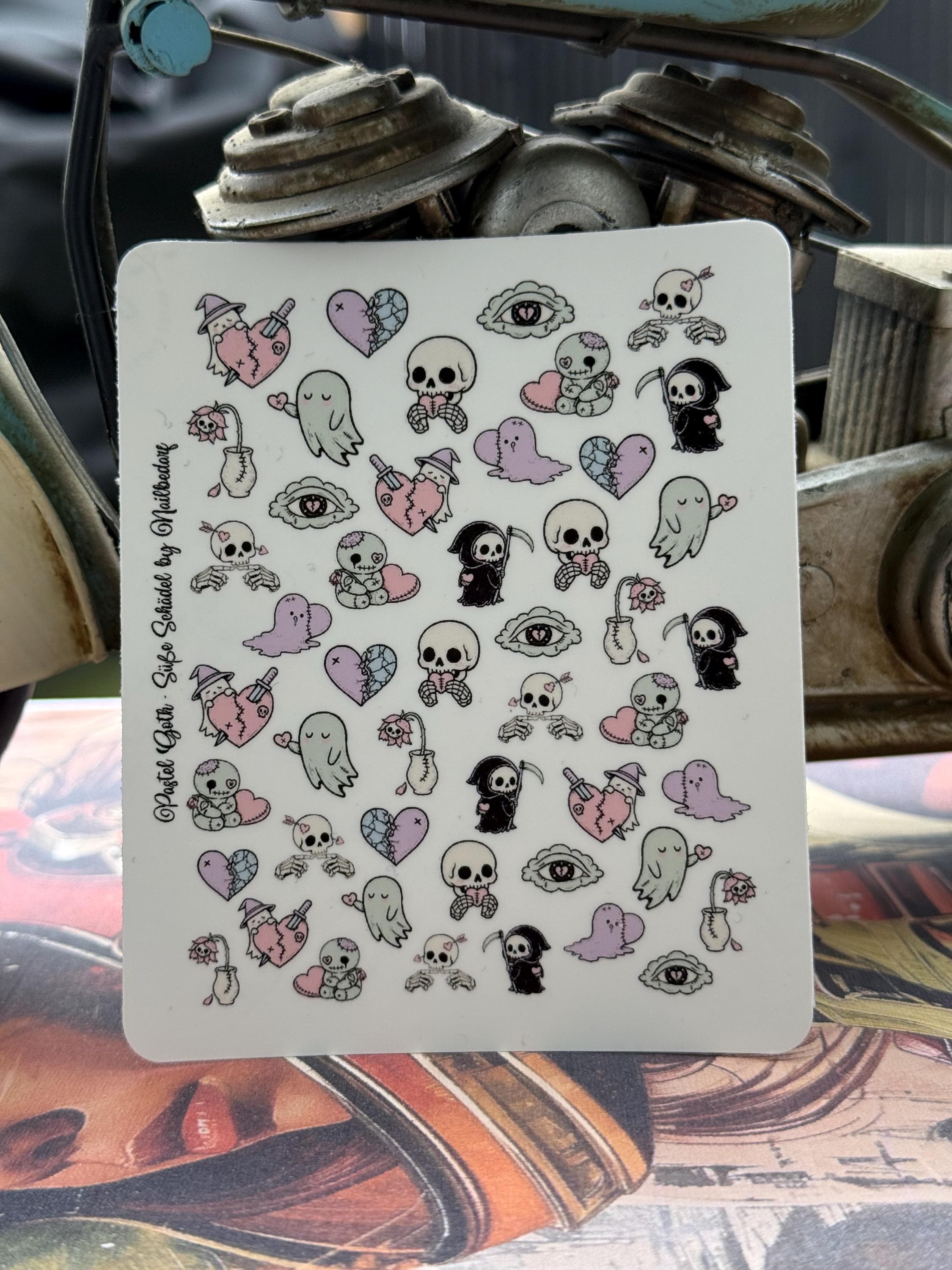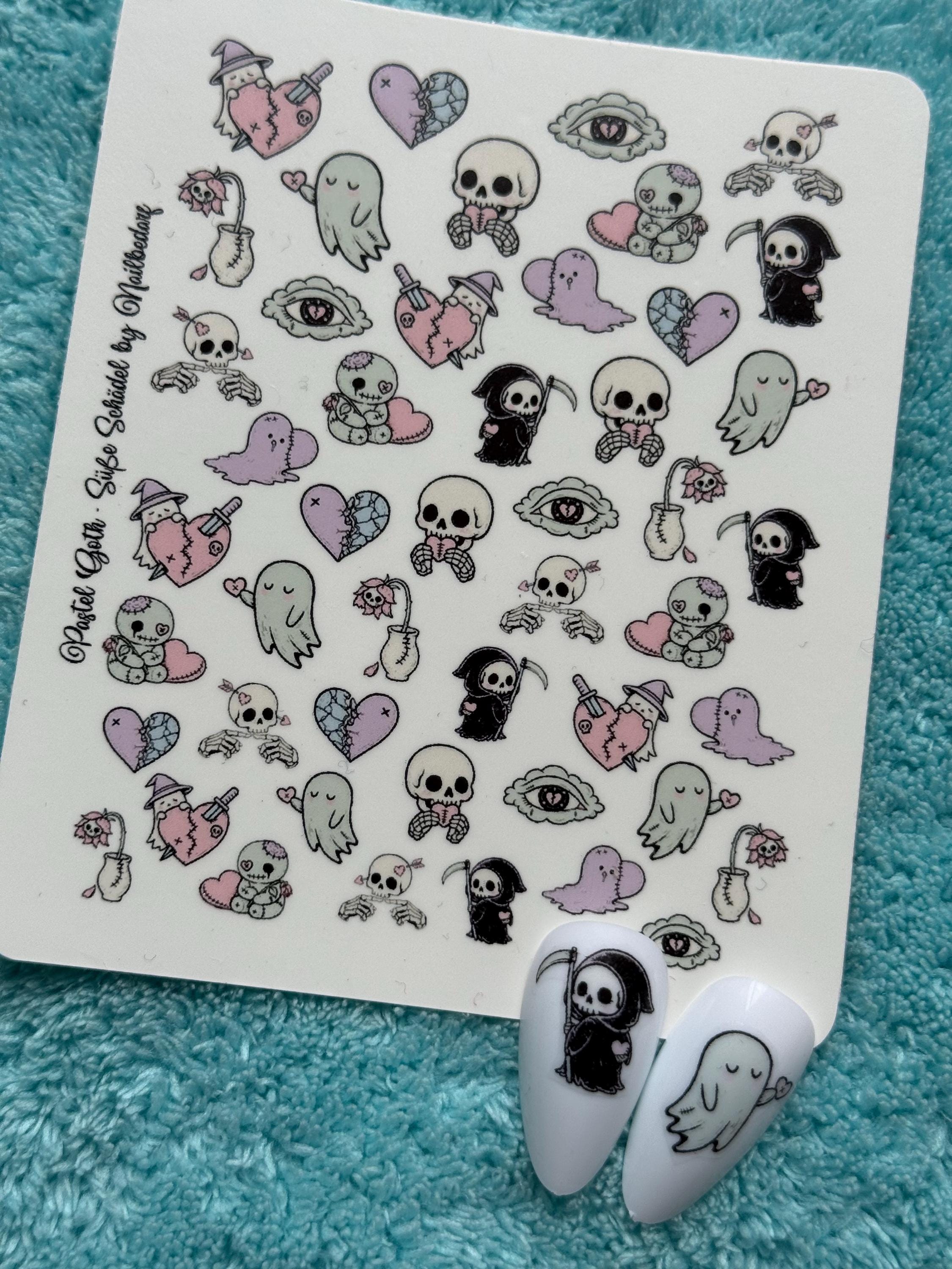 Gothic Love Nail Art Water Slide Stickers for Nails, Nail Stickers Ghosts and Hearts, Cute Skulls