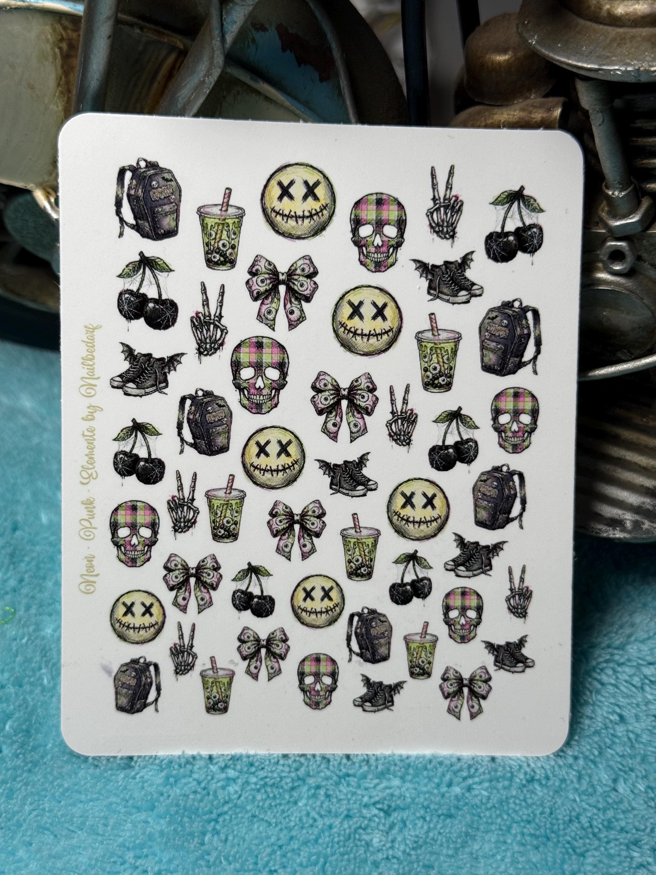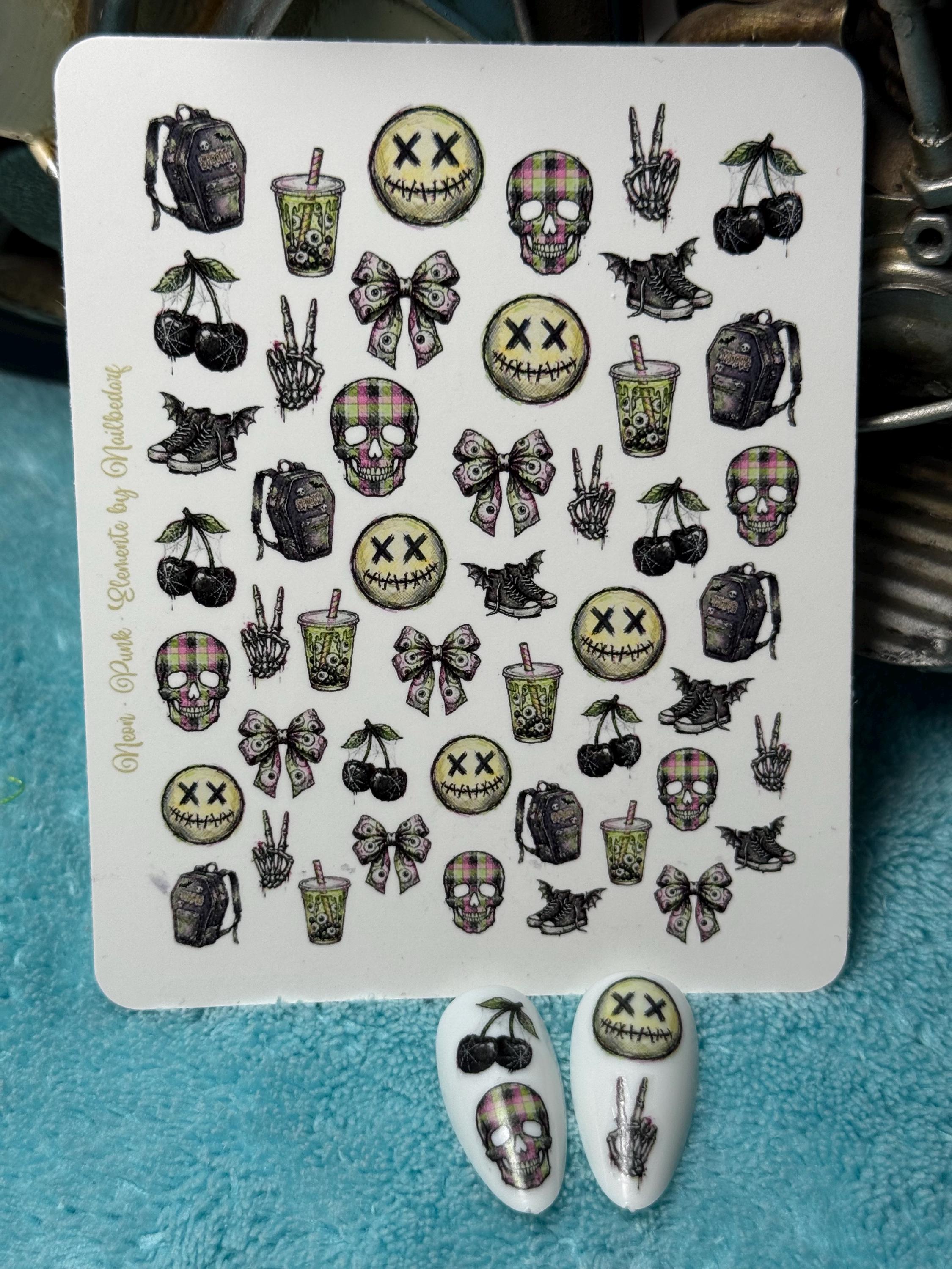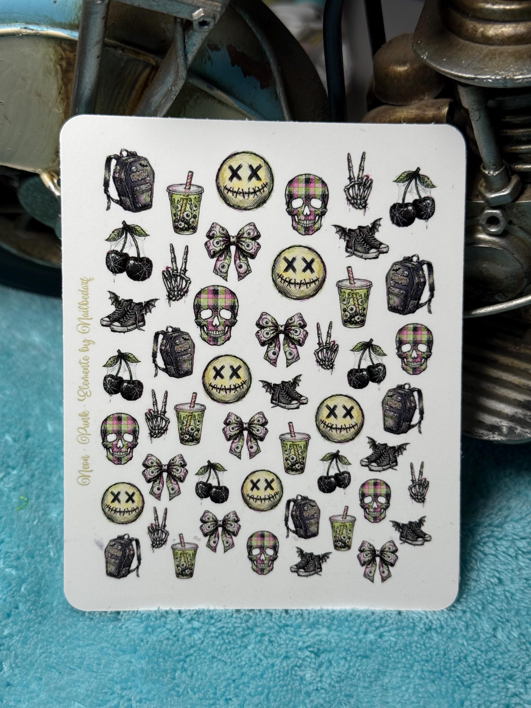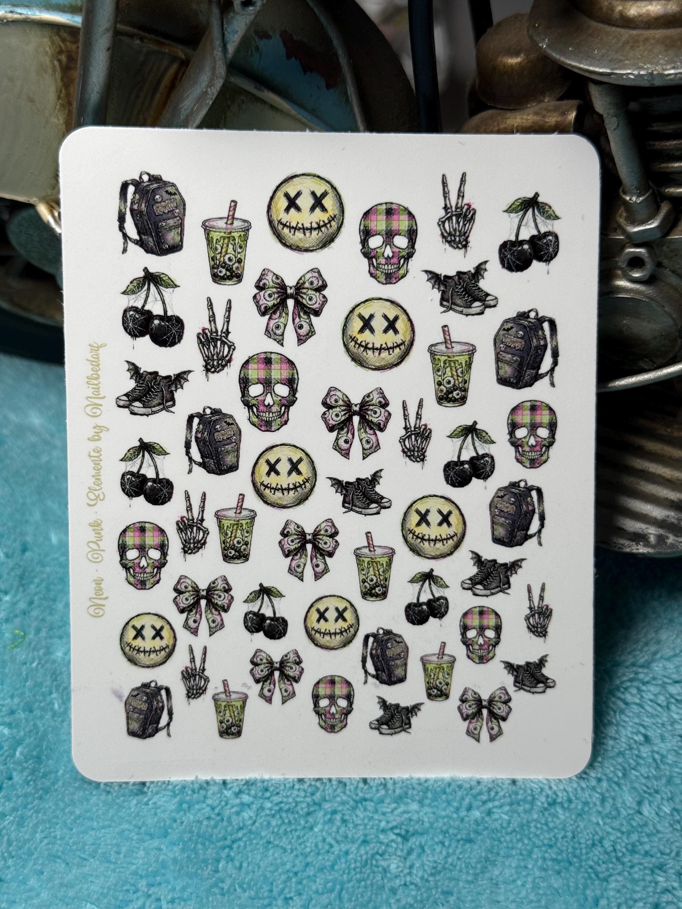Elements, EMO nail art waterslide stickers for nails, punk skull nail stickers