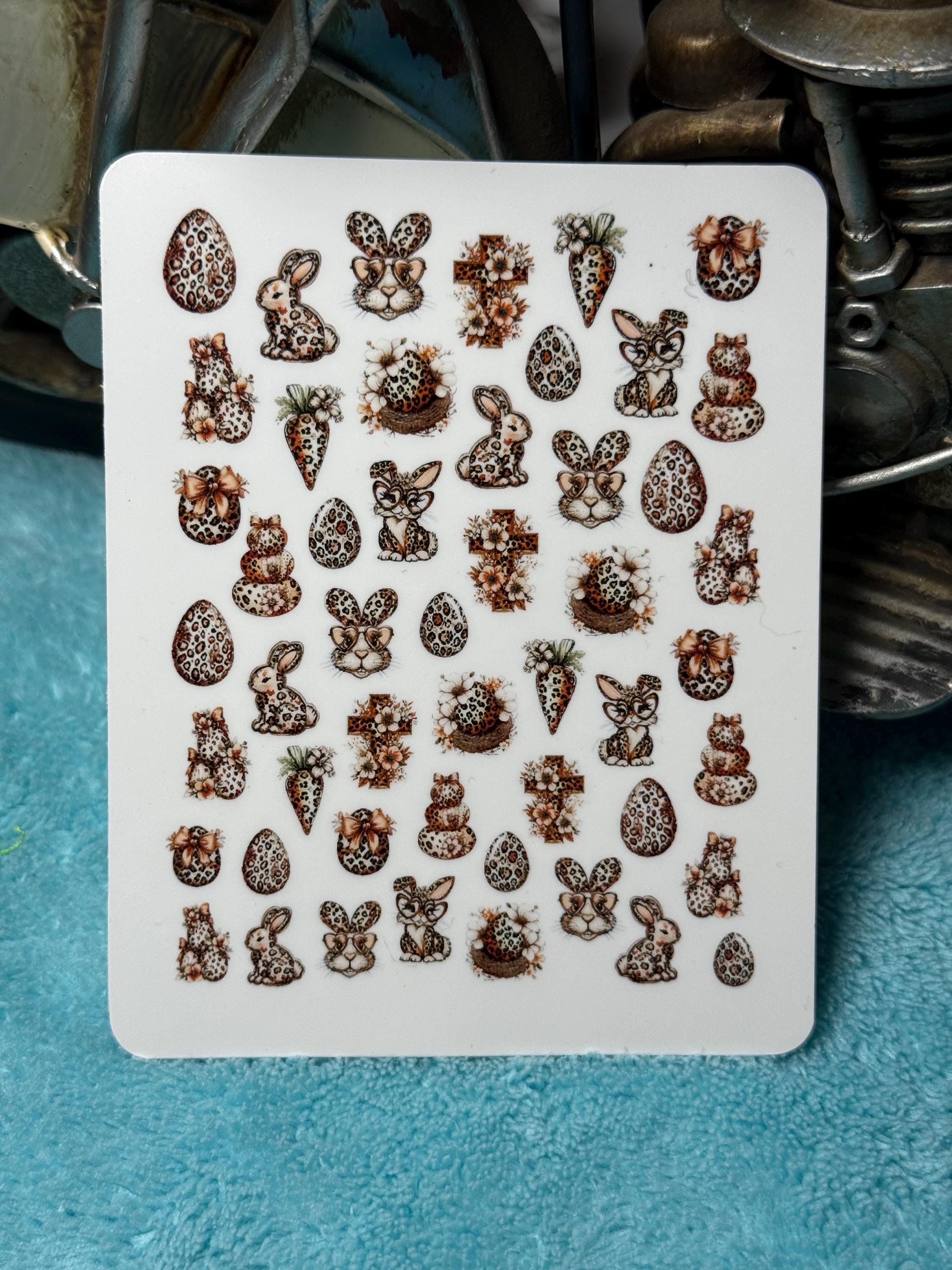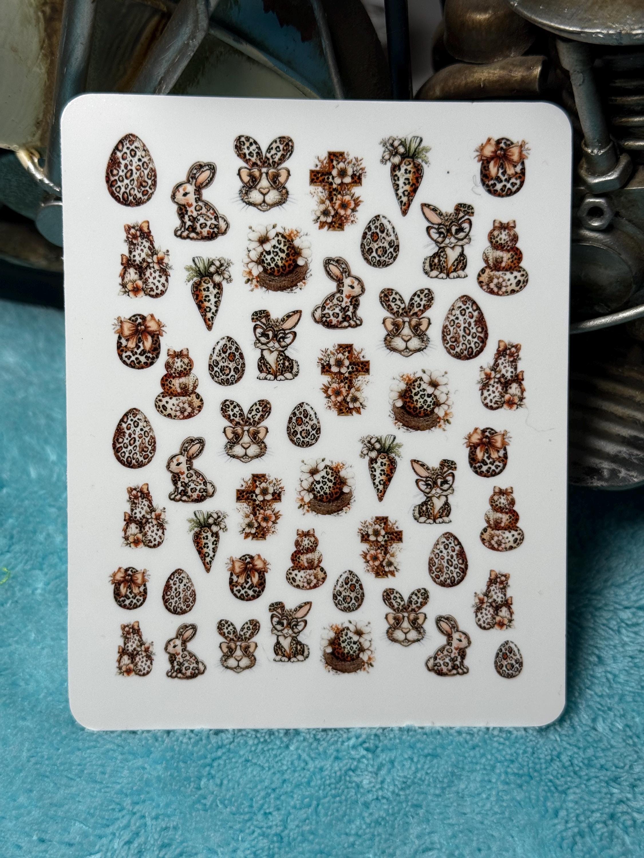 Leopard Easter nail art waterslide stickers for nails, Boho spring nail stickers, Easter cross, Easter basket, Easter bunny