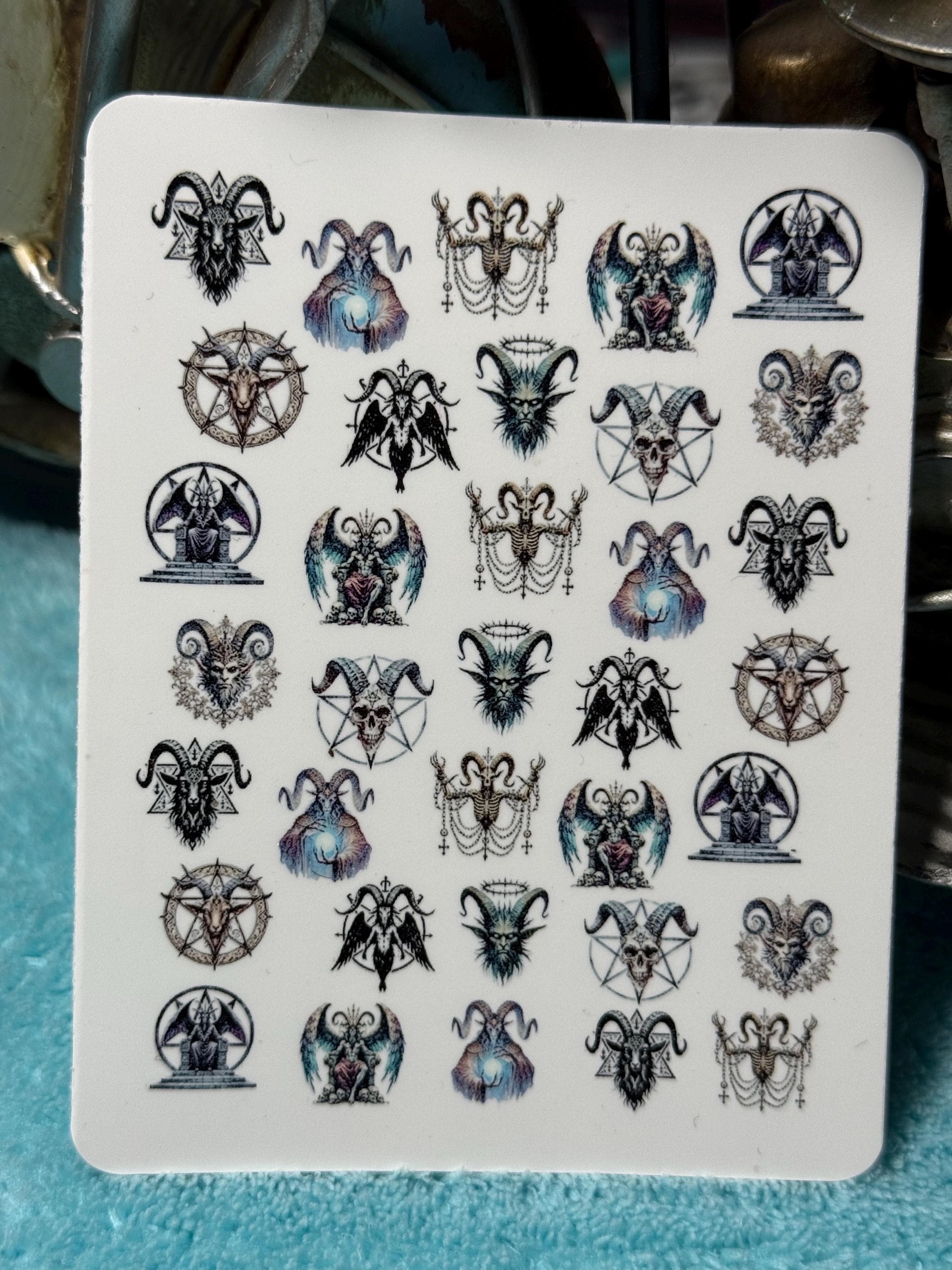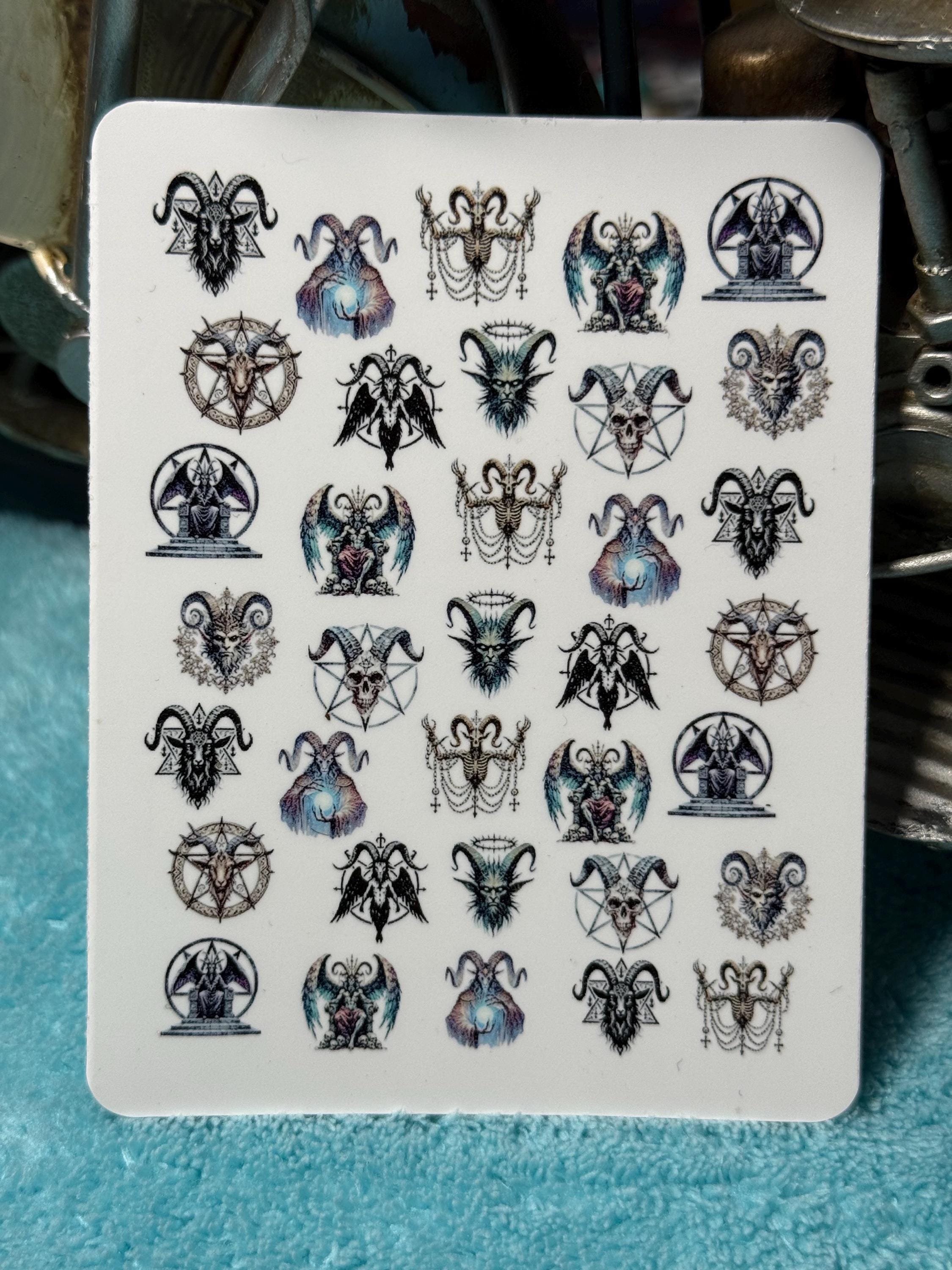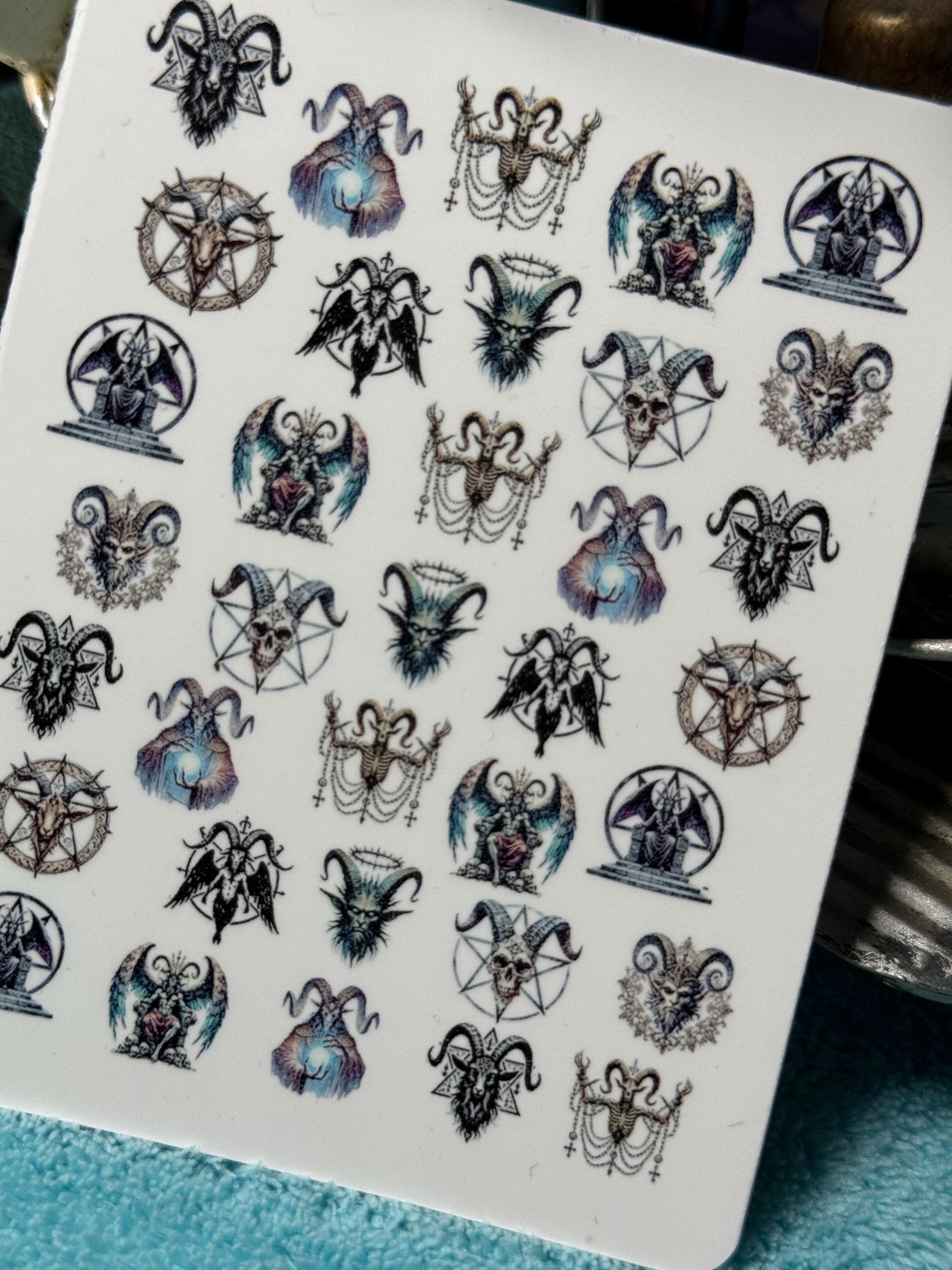 Demon Nail Art Water Slide Stickers for Nails, Nail Stickers, Occult Lucifer, Pentagram
