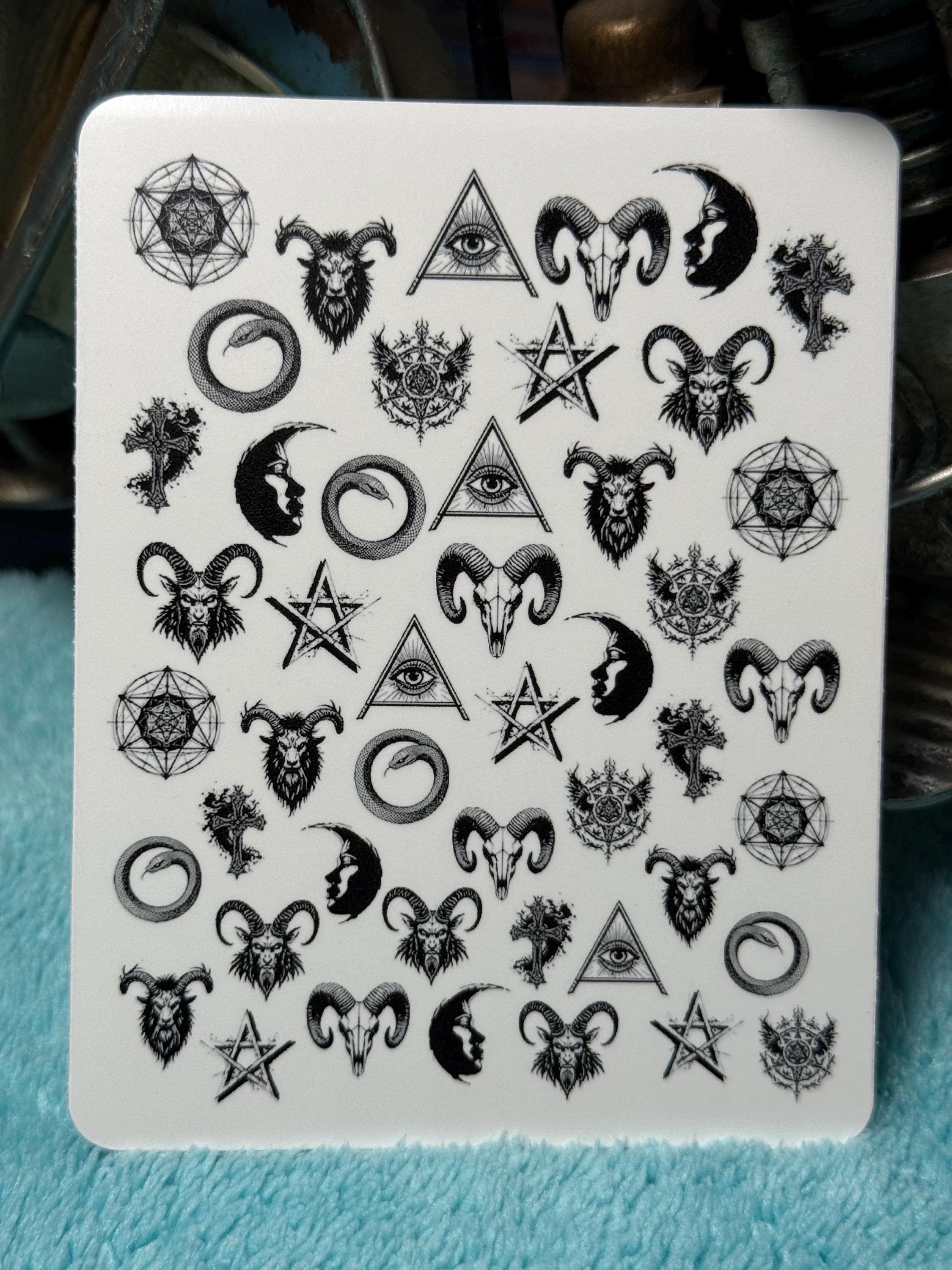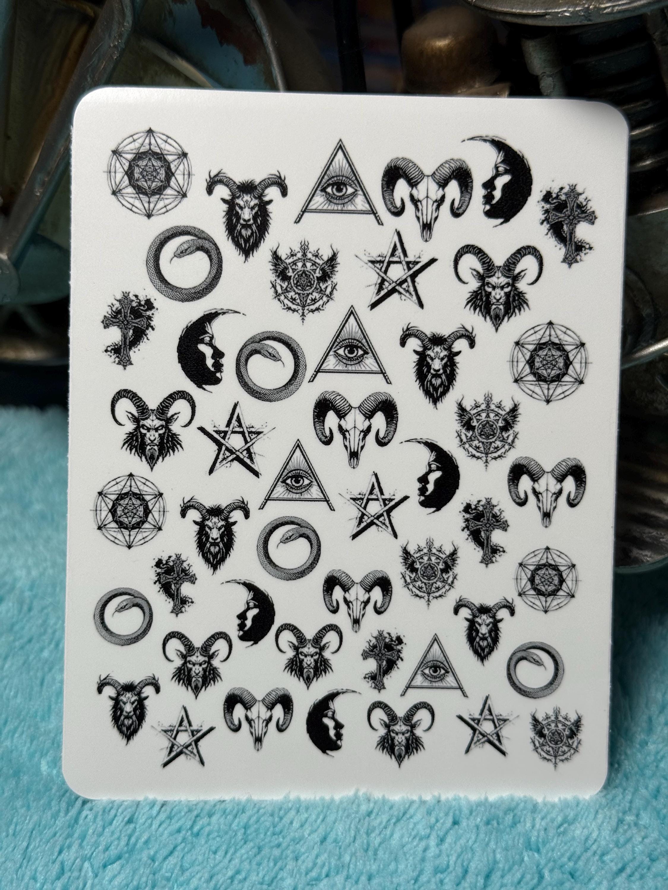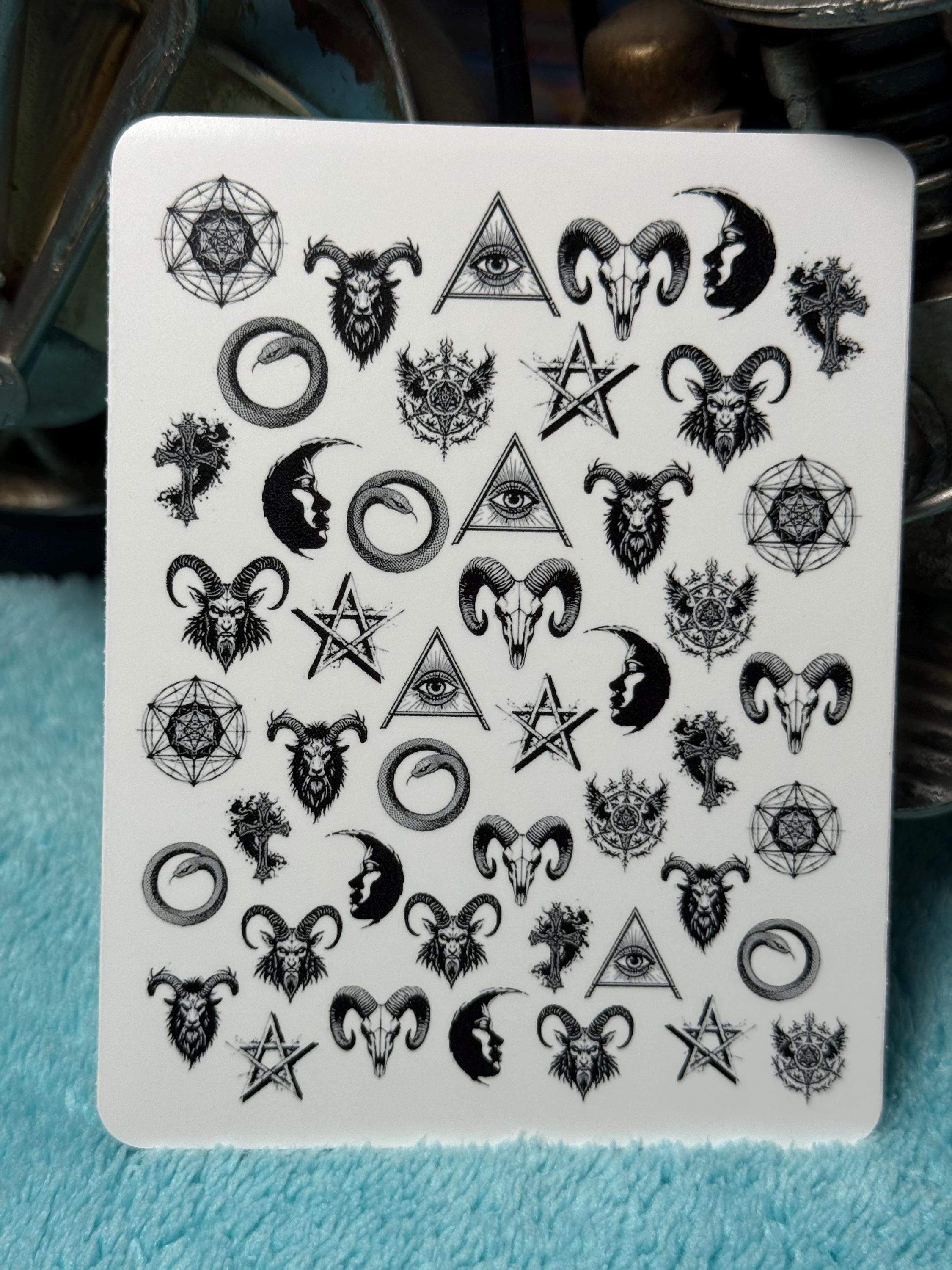 Occult Gothic nail art waterslide stickers for nails, nail stickers with Gothic elements and symbols