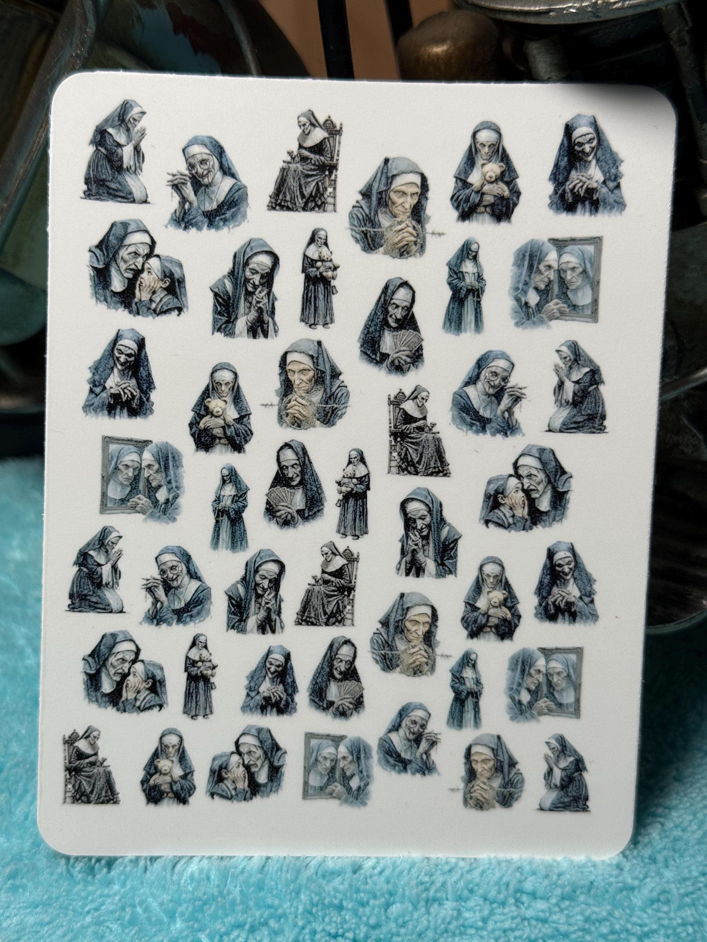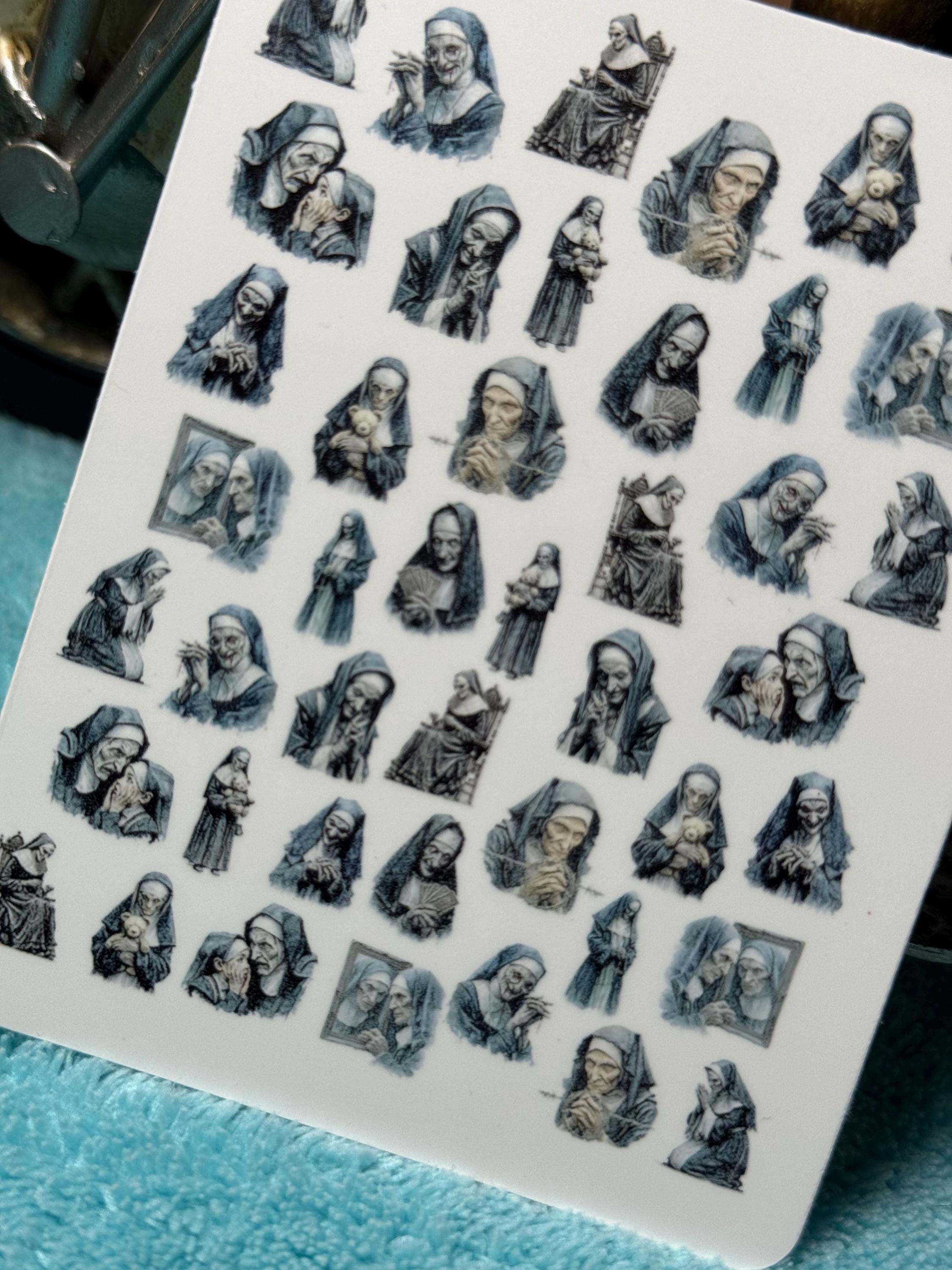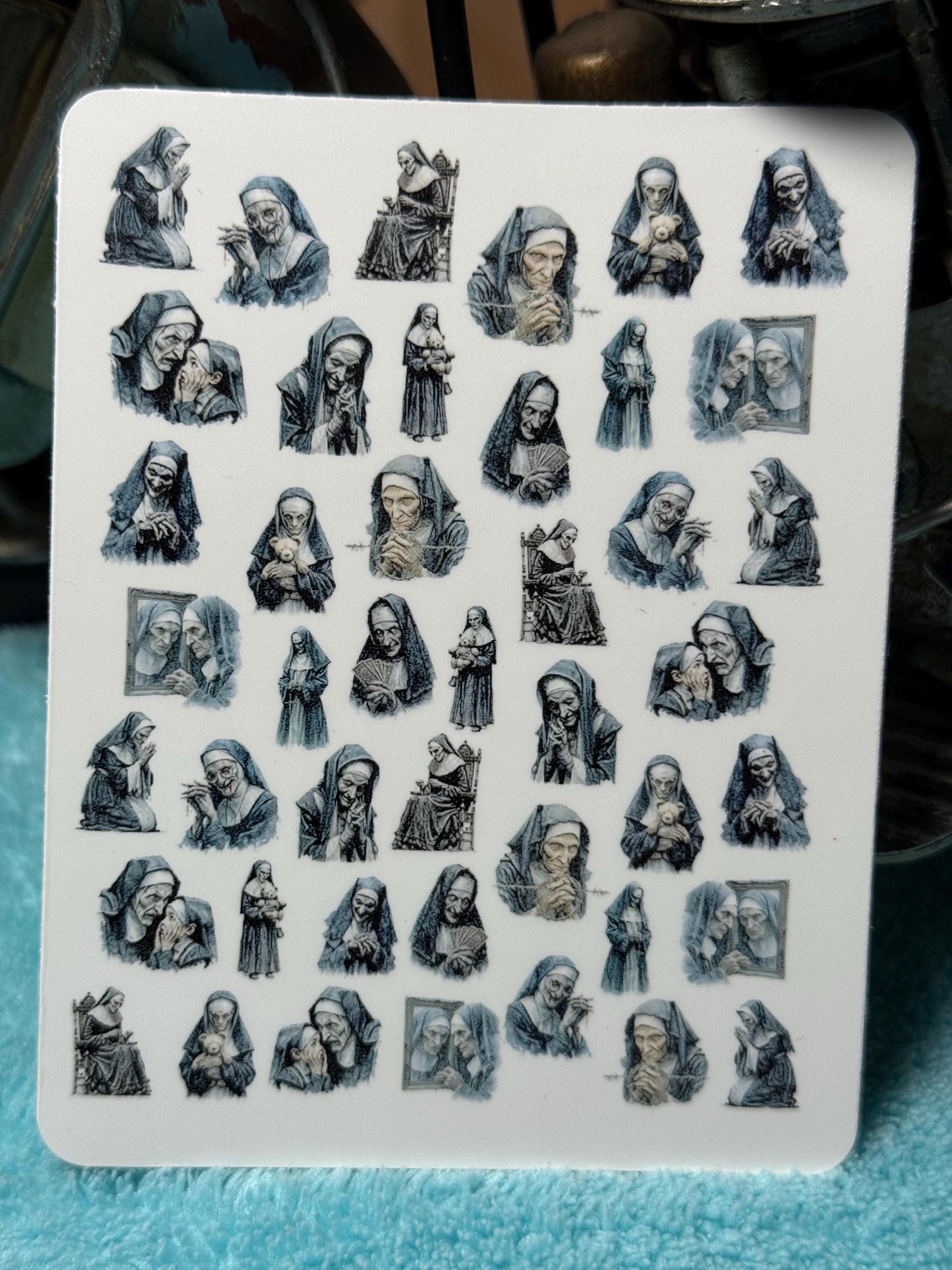 Sinister Nun Nail Art Water Slide Stickers for Nails, Horror Nun Nail Stickers, Gothic Halloween