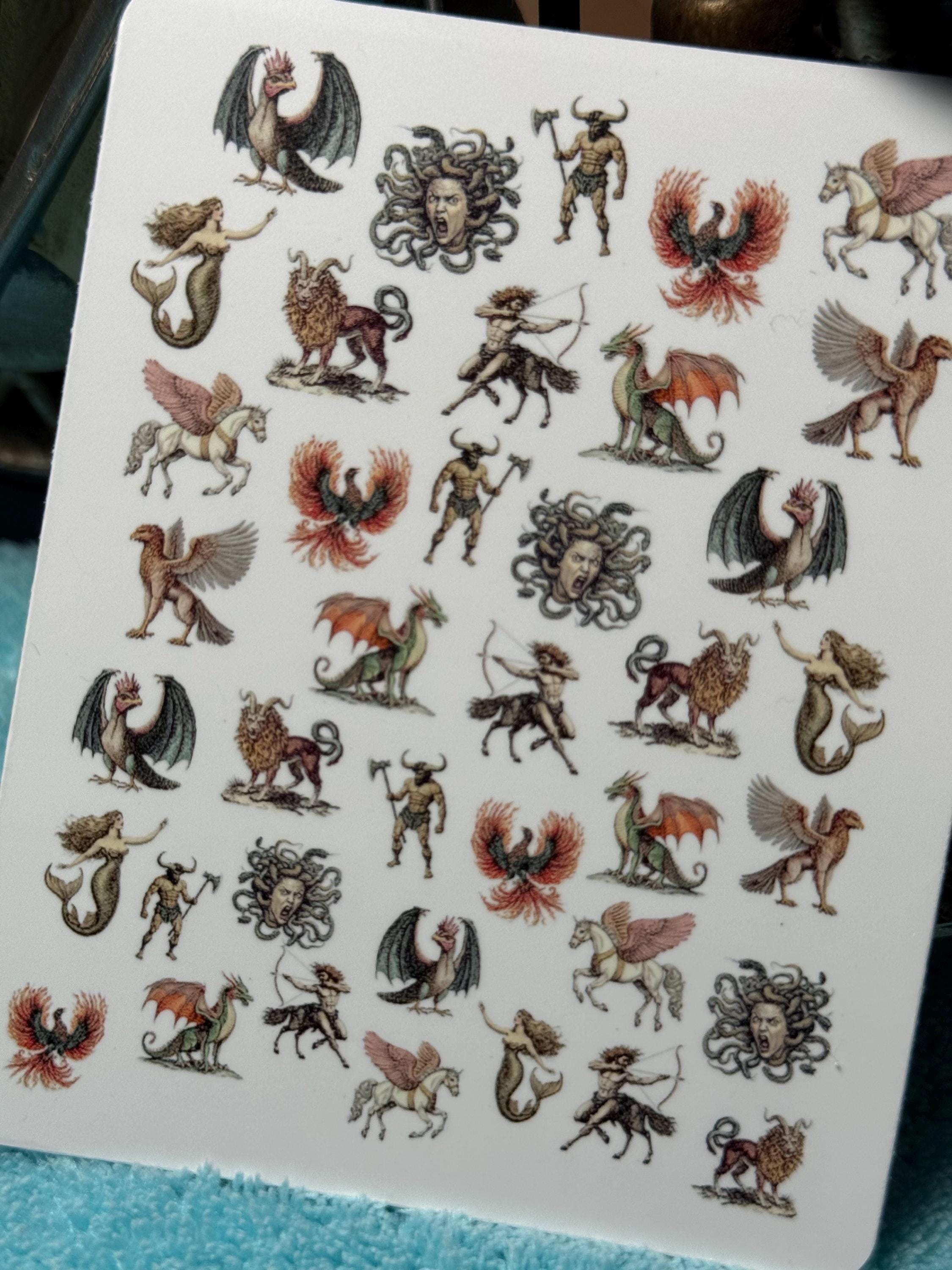 Fantasy creature nail art waterslide stickers for nails, nail stickers Medusa, Pegasus