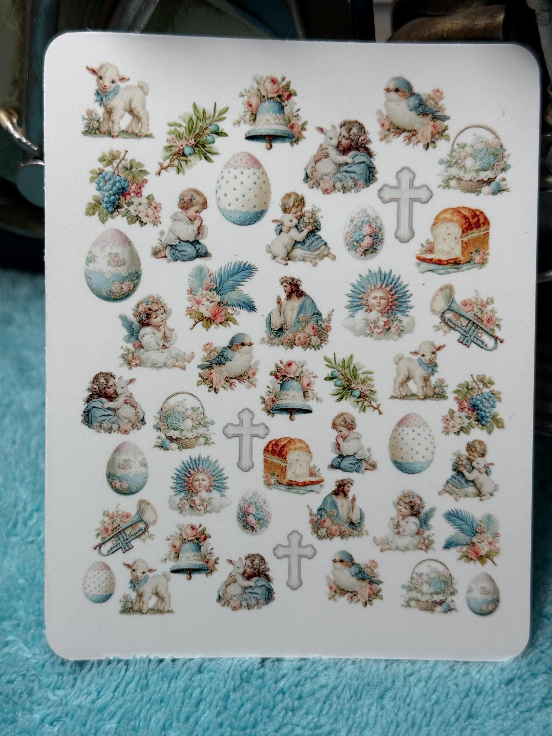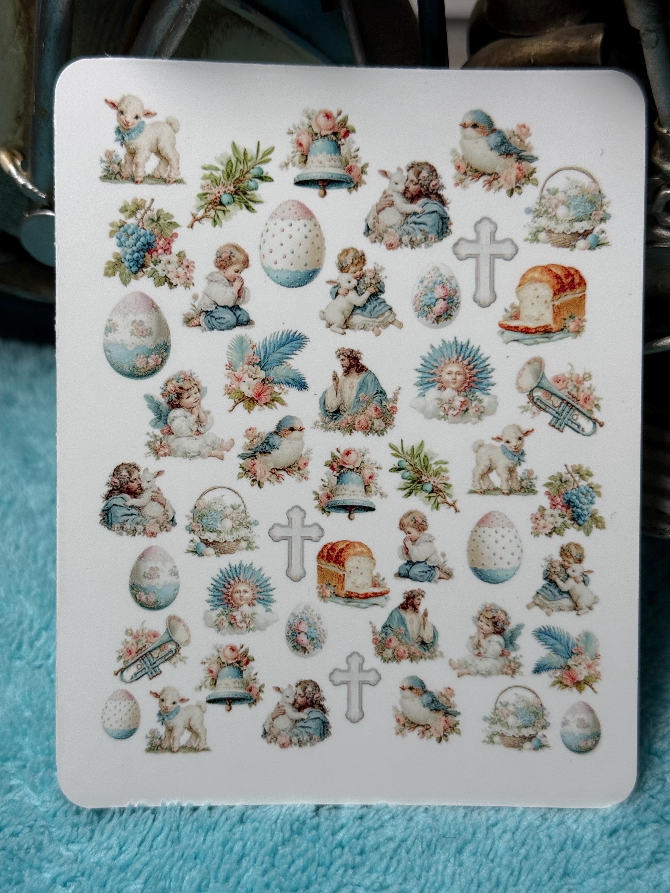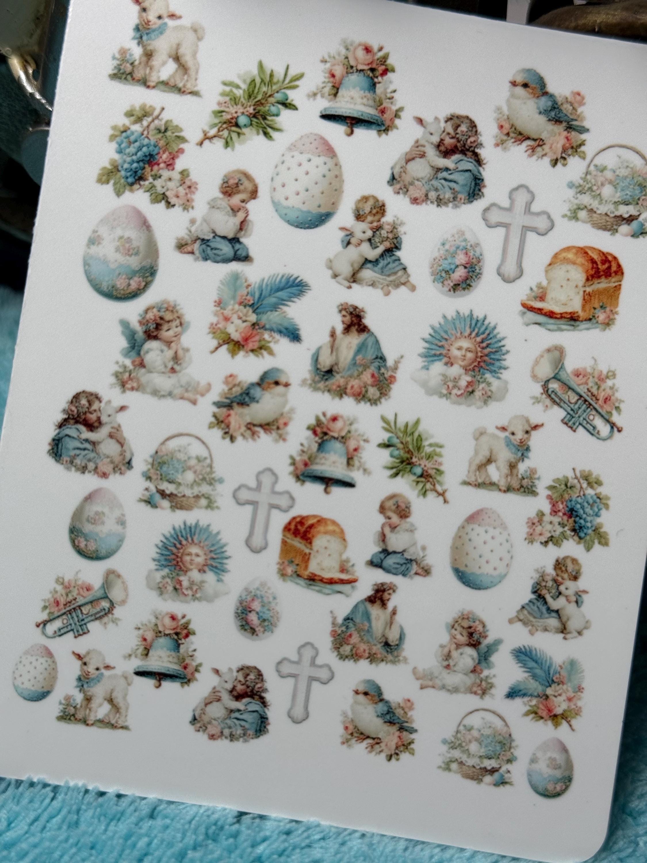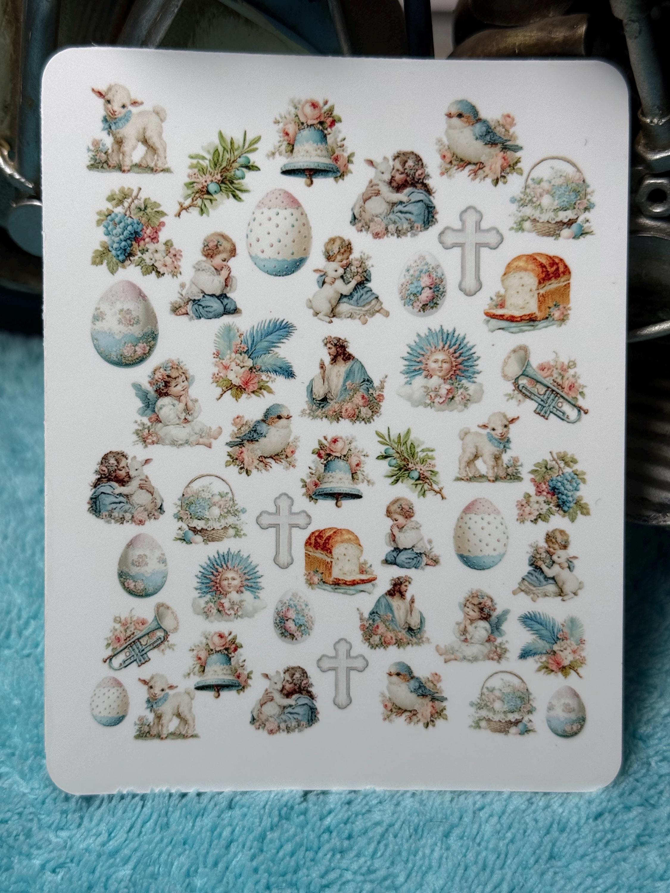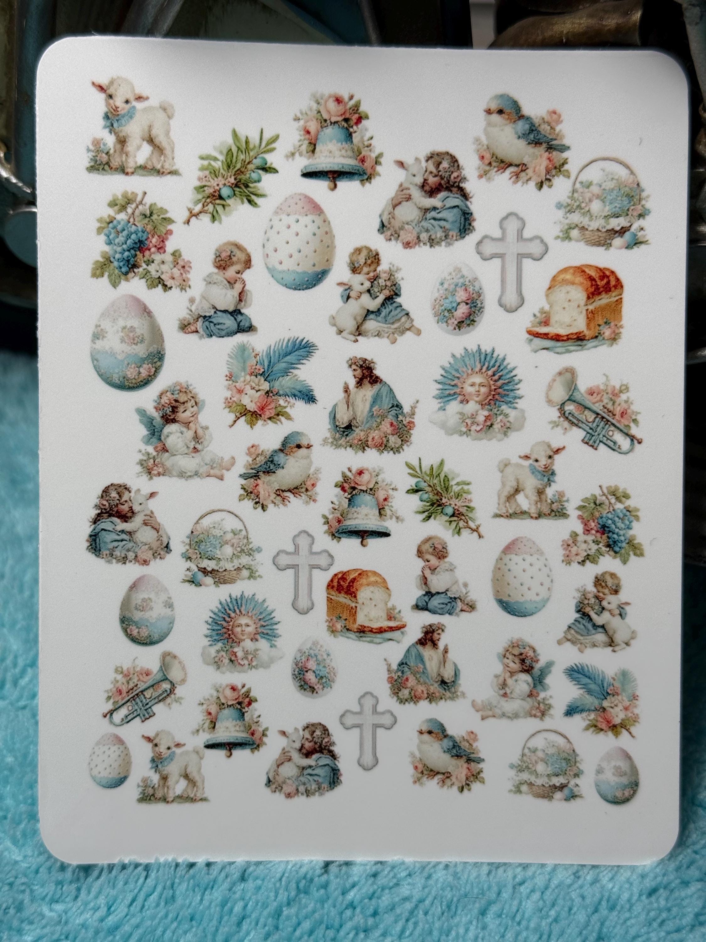 Religious Easter nail art waterslide stickers for nails, antique Easter nail stickers, Easter bunny, Easter lamb
