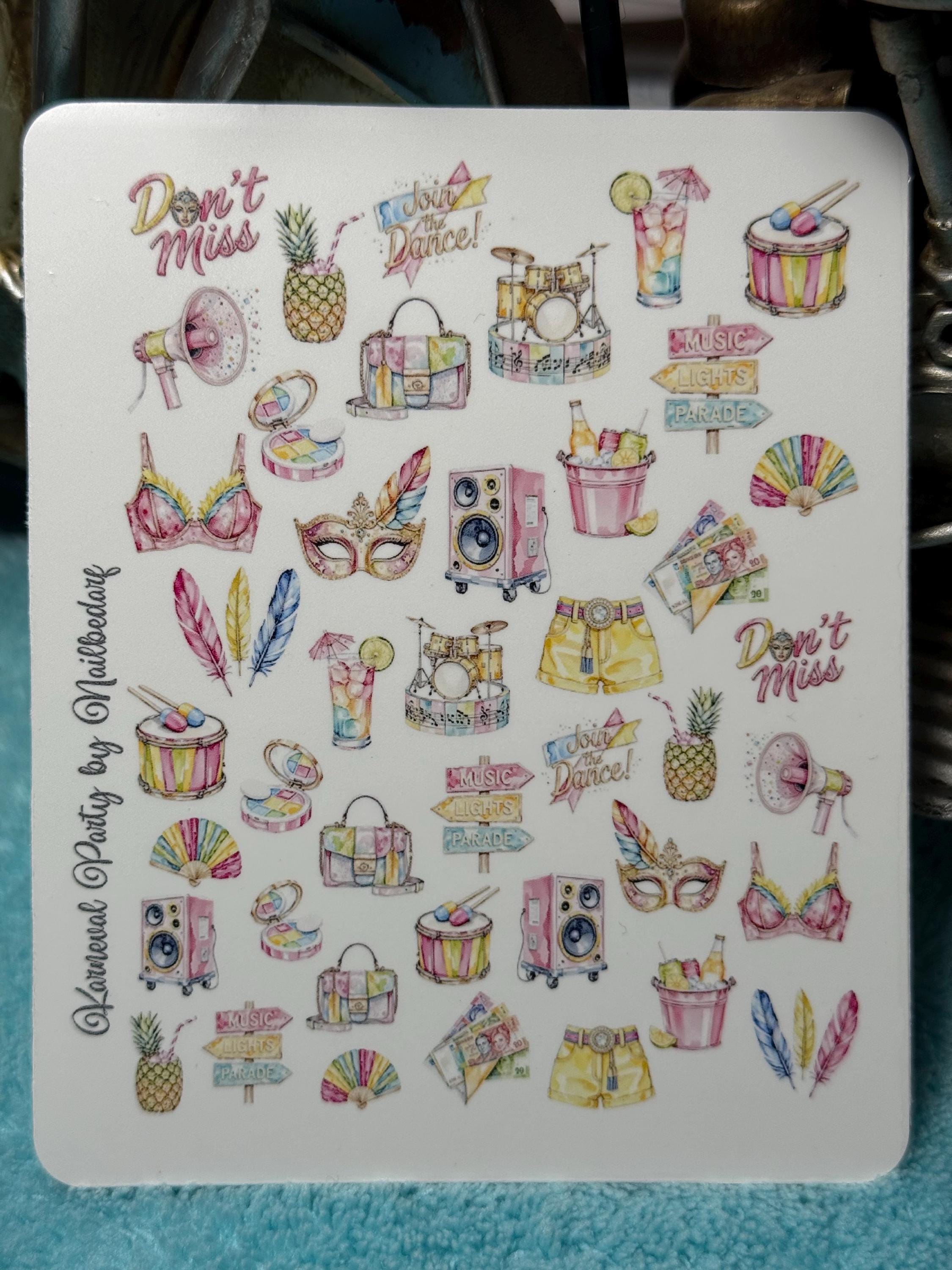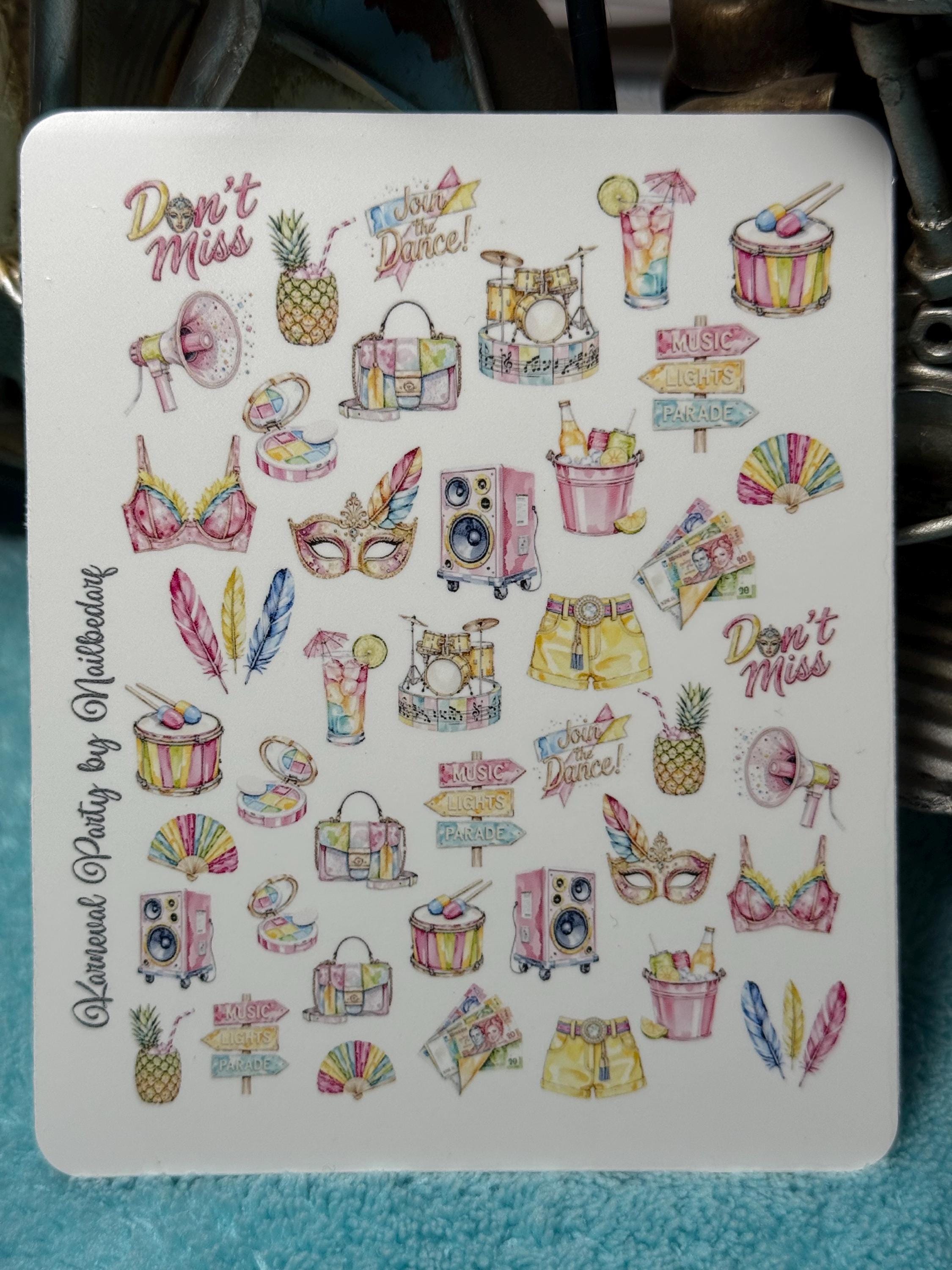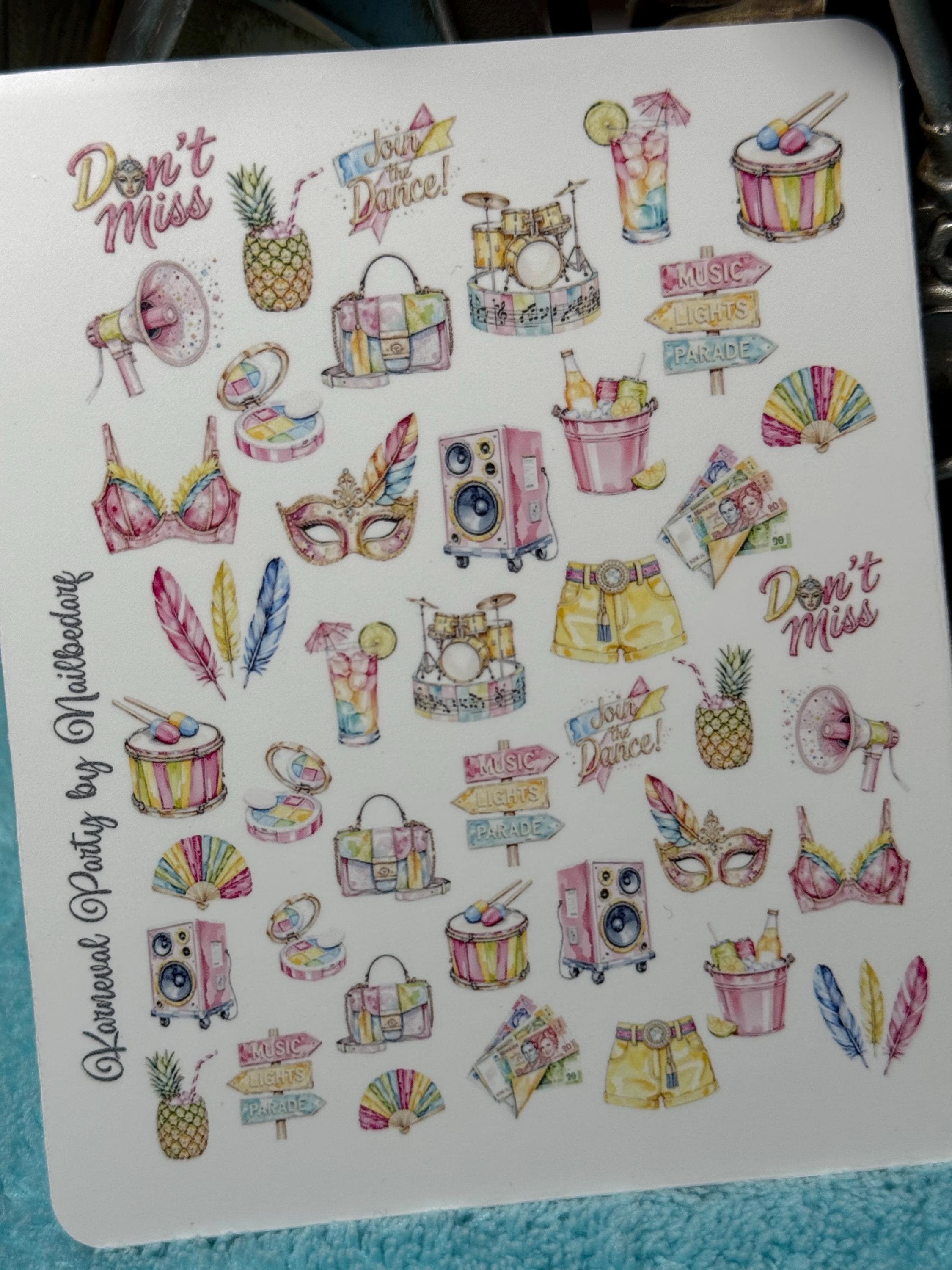 Carnival Party Nail Art Water Slide Stickers for Nails, Nail Stickers Rio Festival, Samba