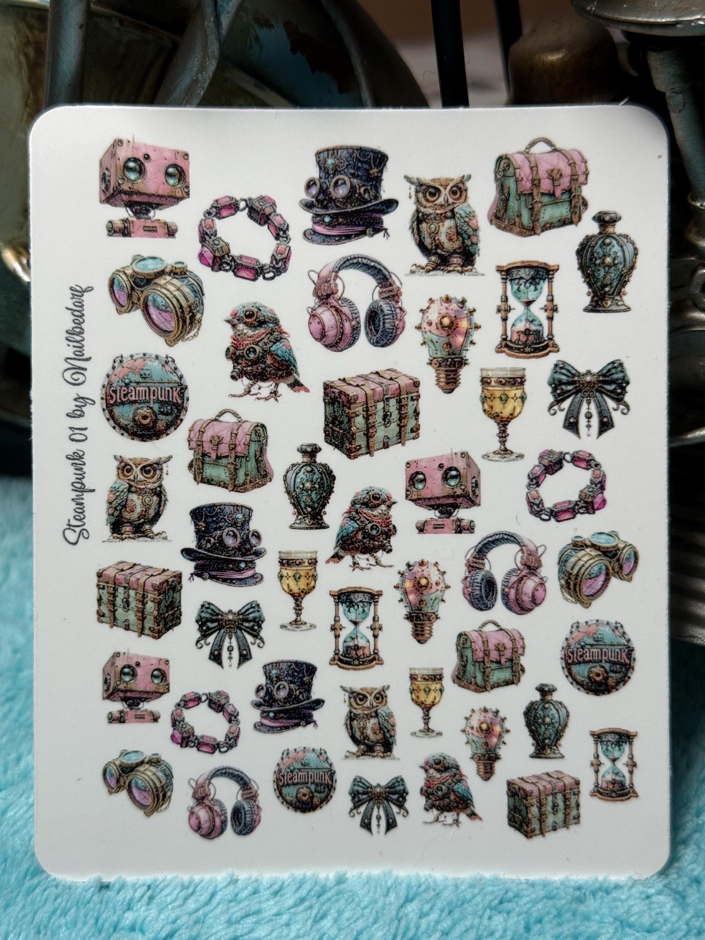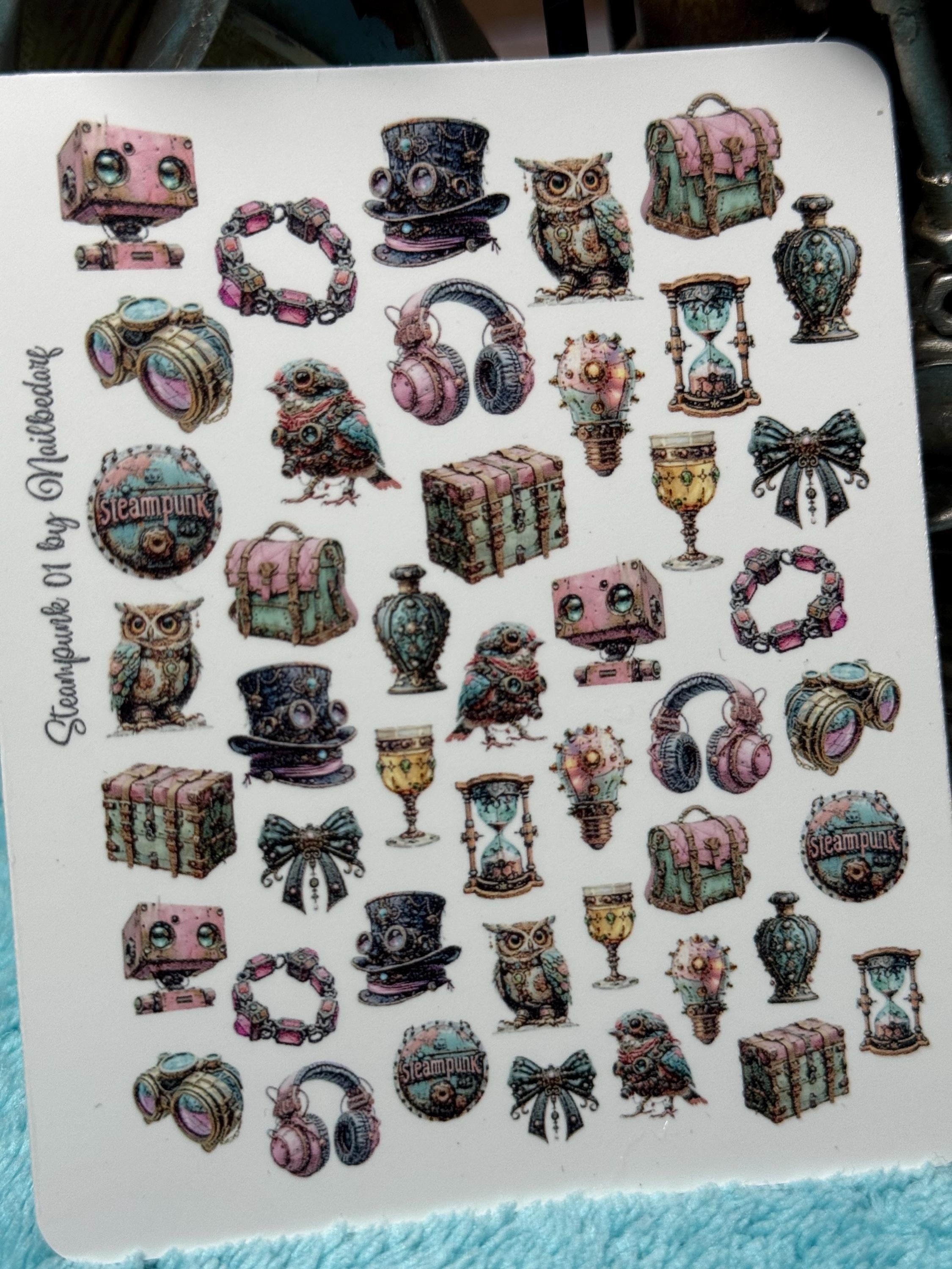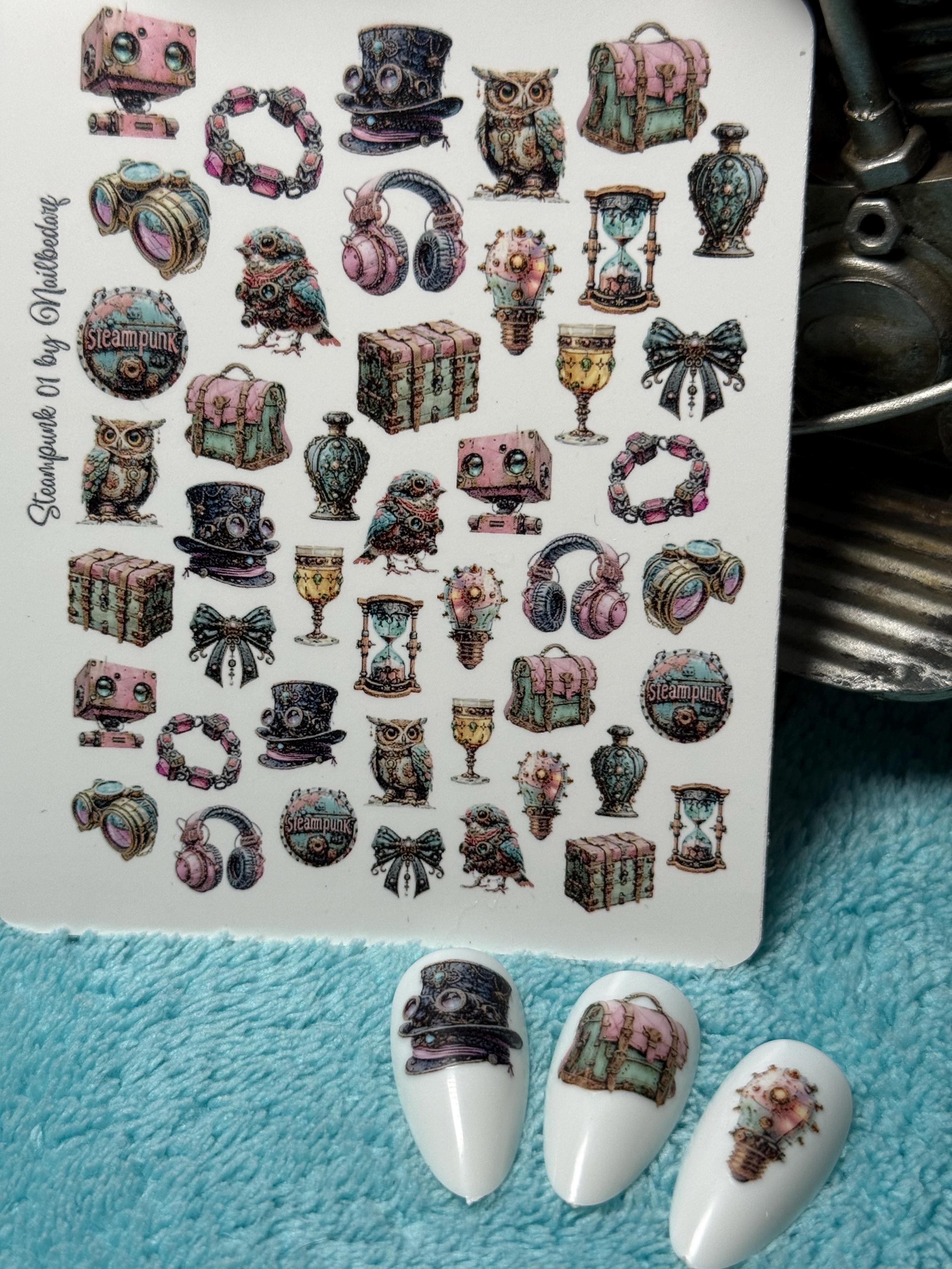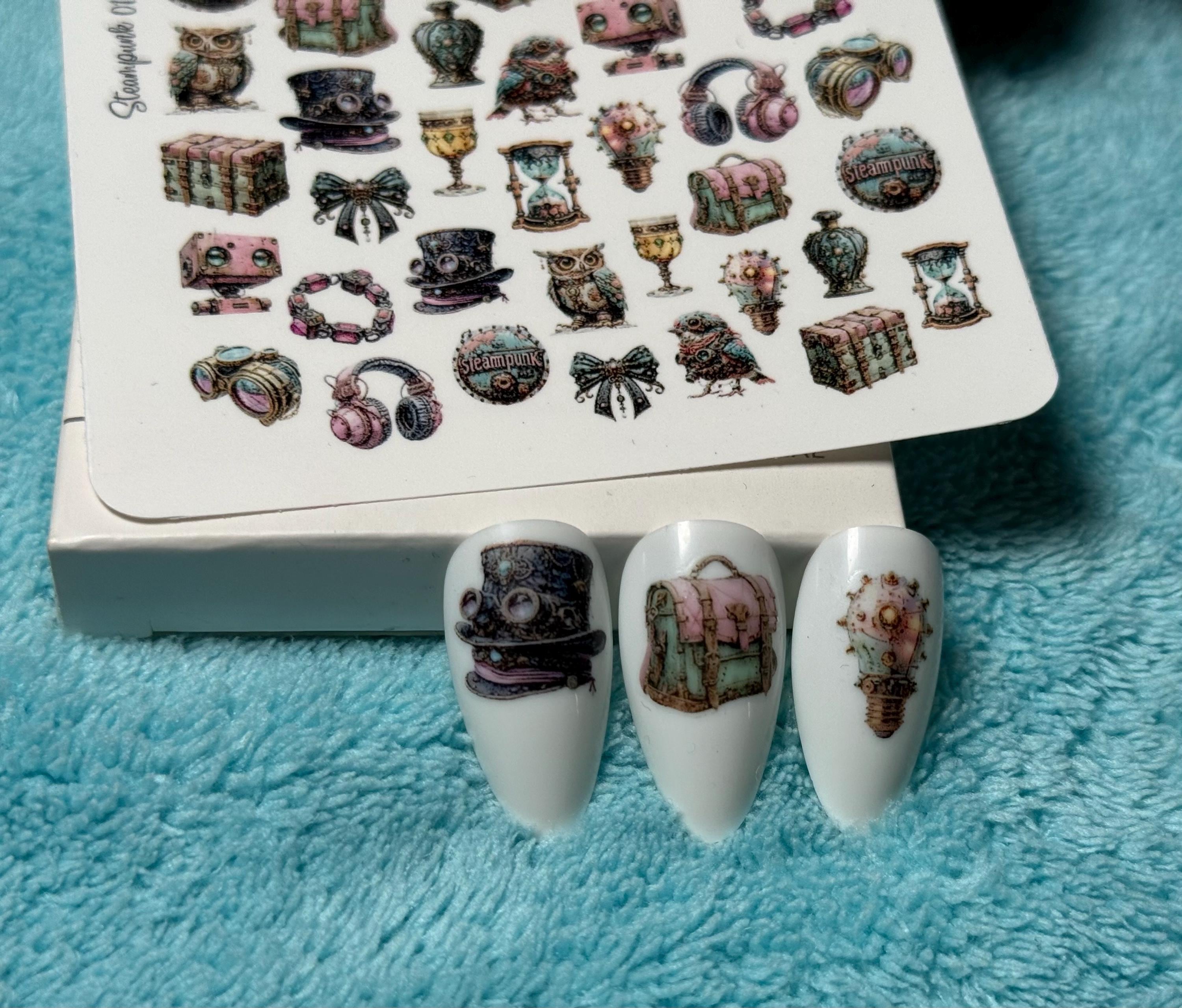 Steampunk nail art waterslide stickers for nails, Victorian nail stickers, fantasy
