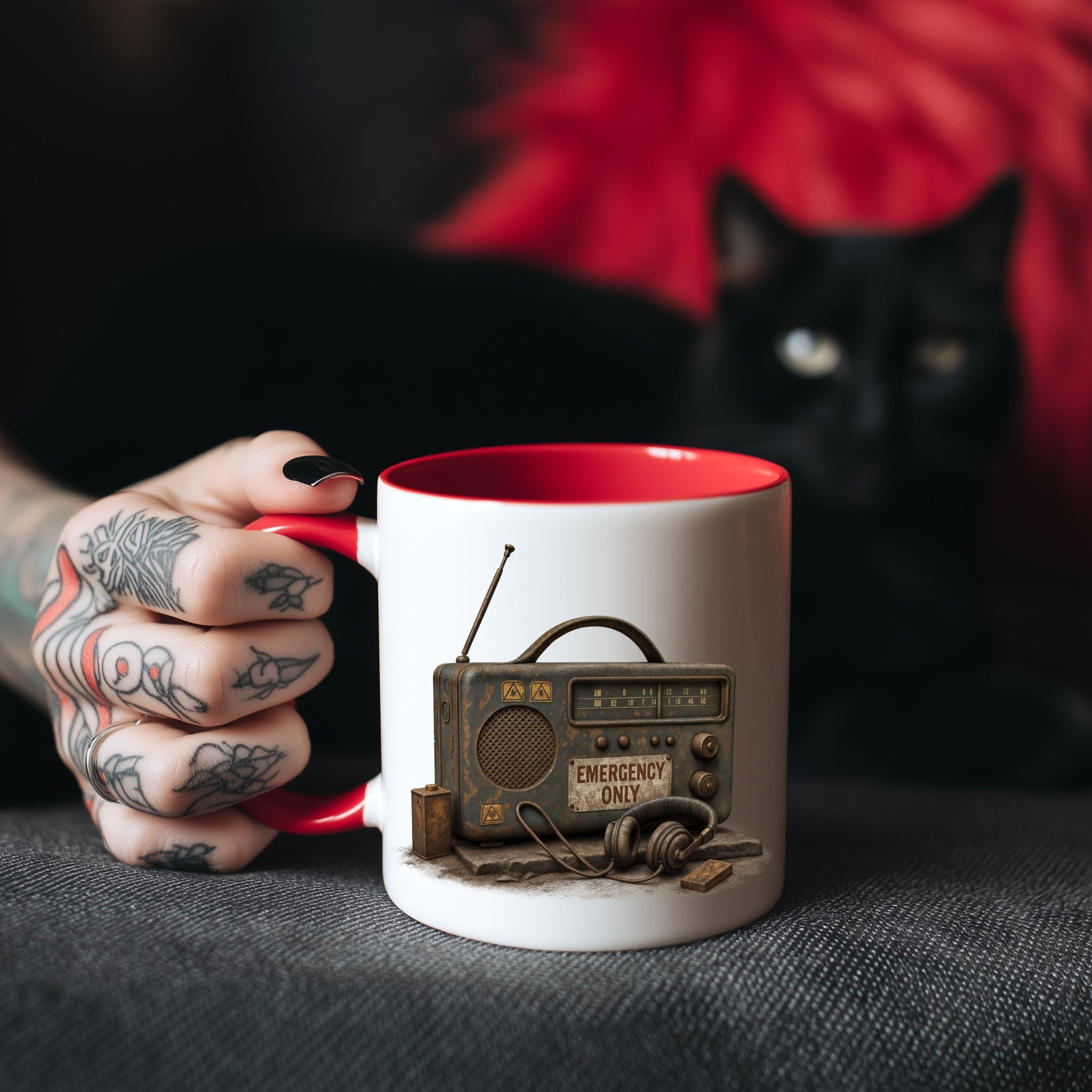 Simply cut out the desired design as closely as possible, briefly place it in water, and then carefully position or slide it onto the mug.