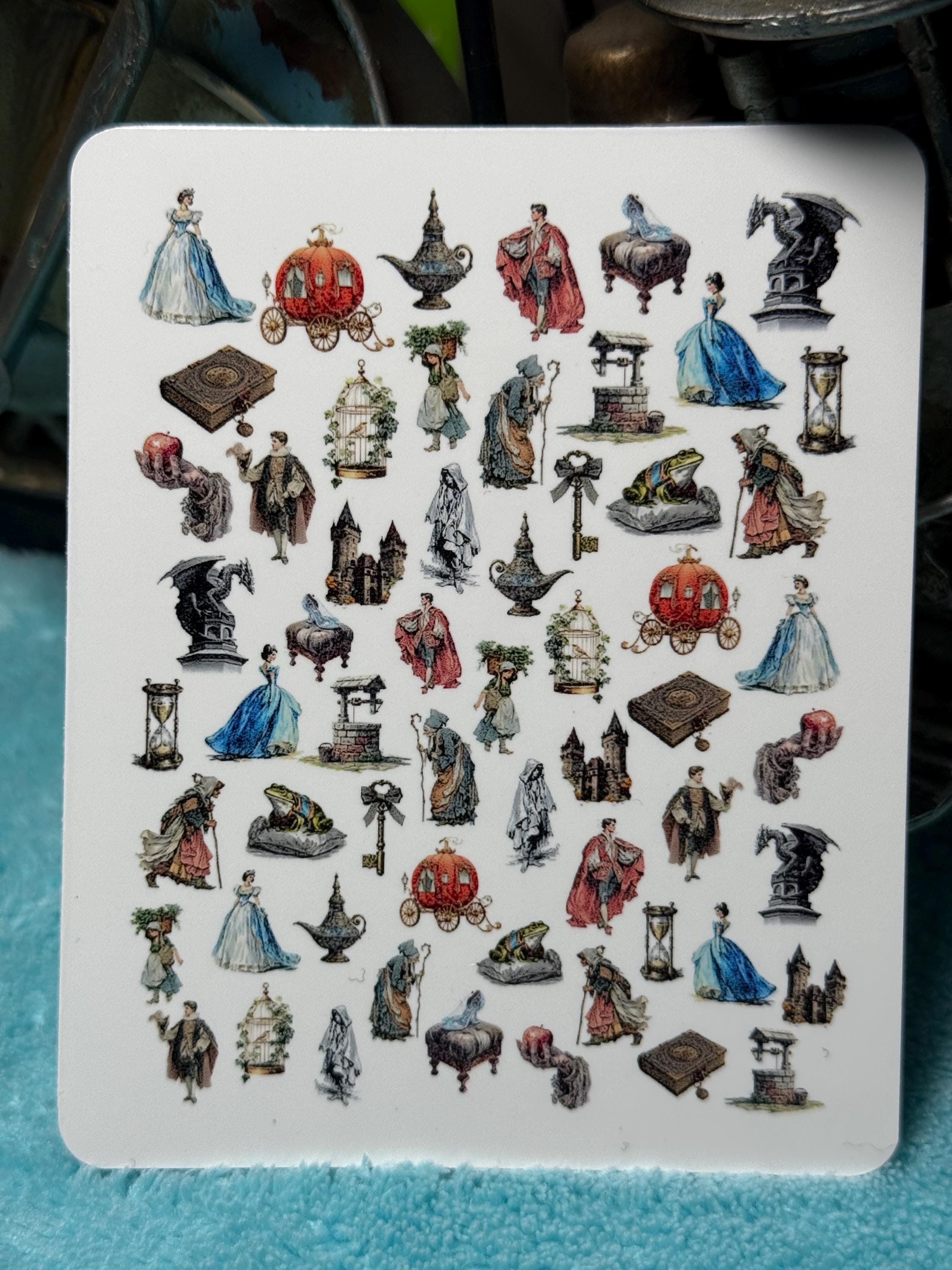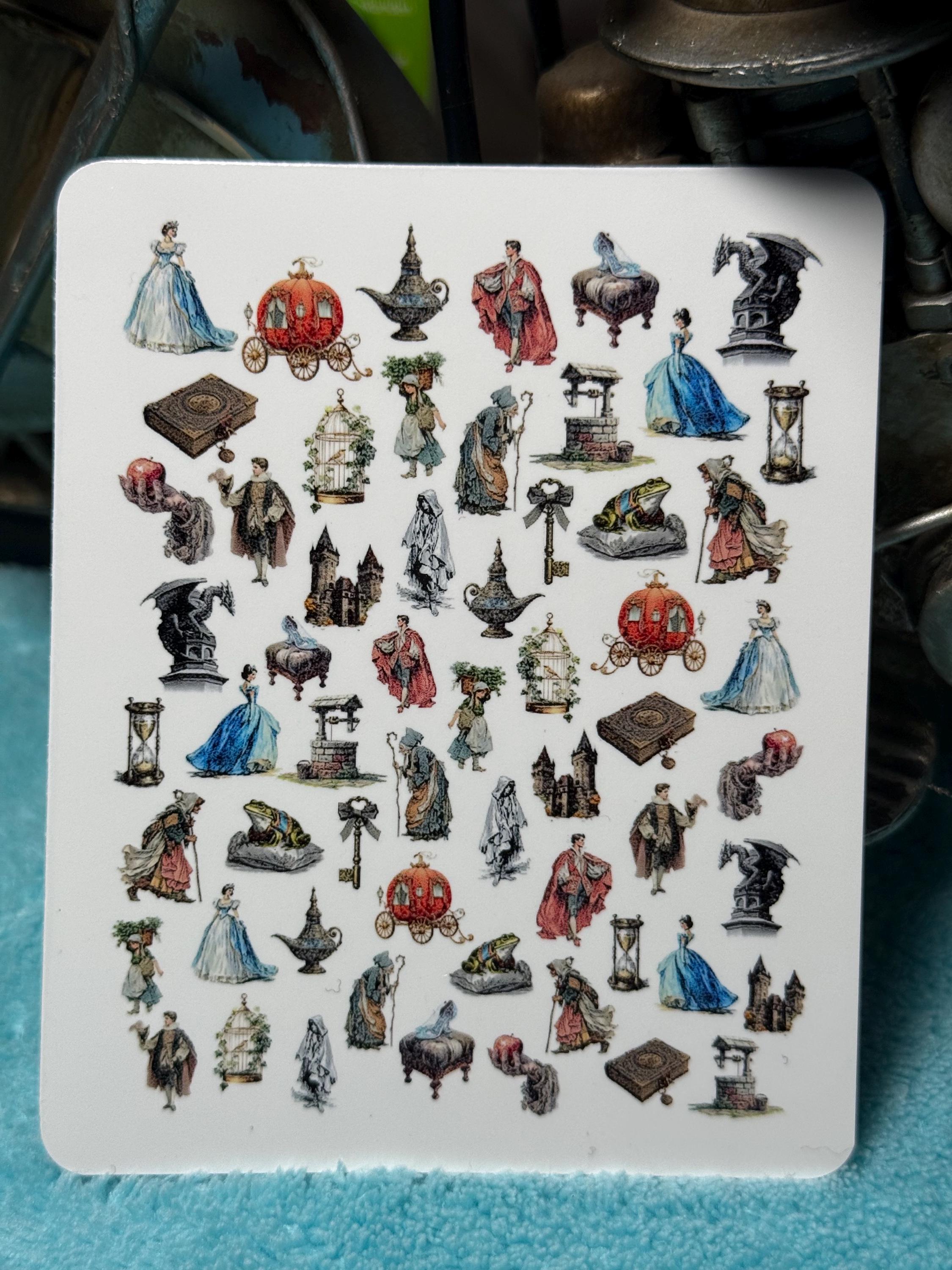 Vintage fairytale nail art waterslide stickers for nails, princess and prince nail stickers