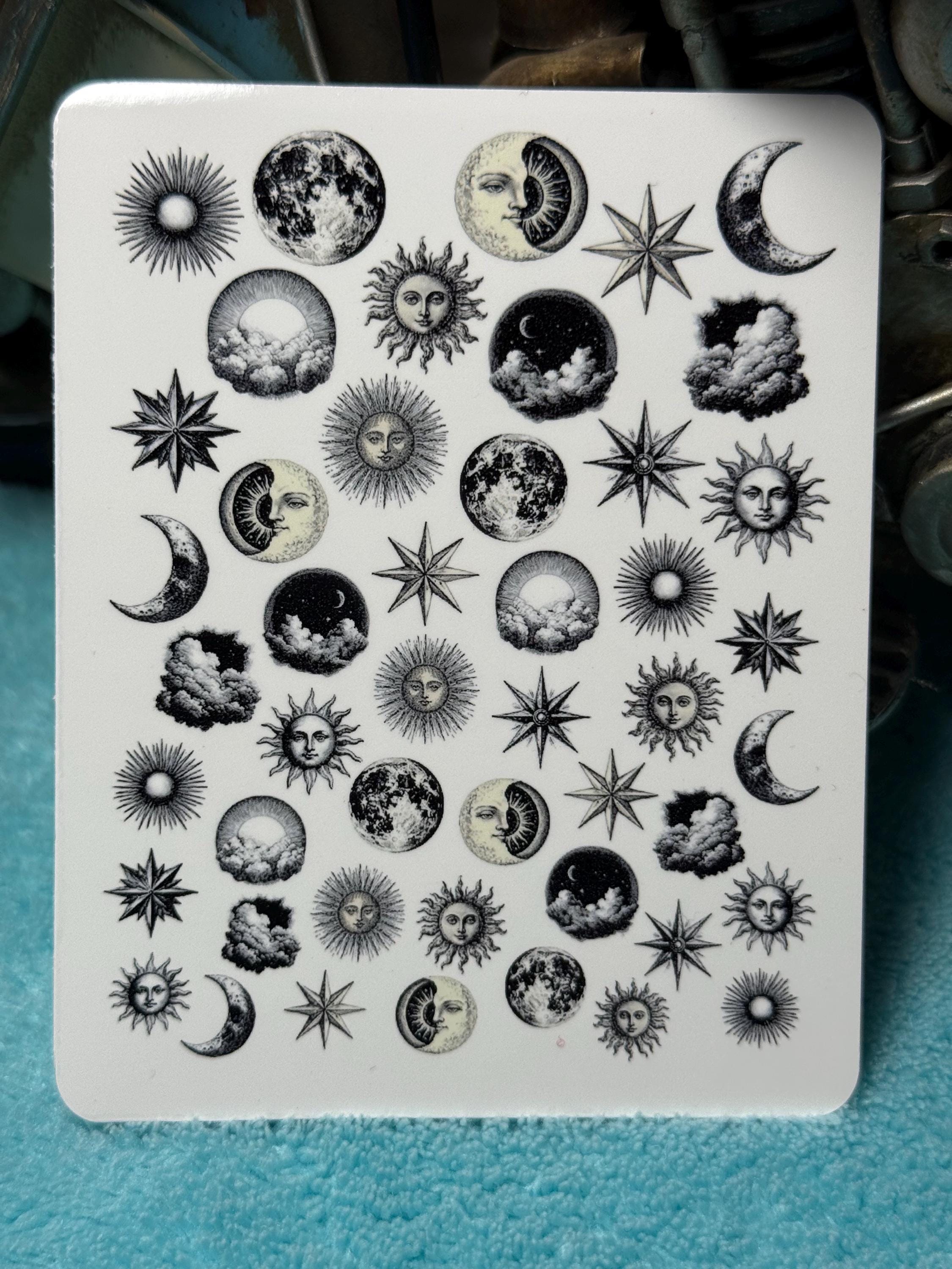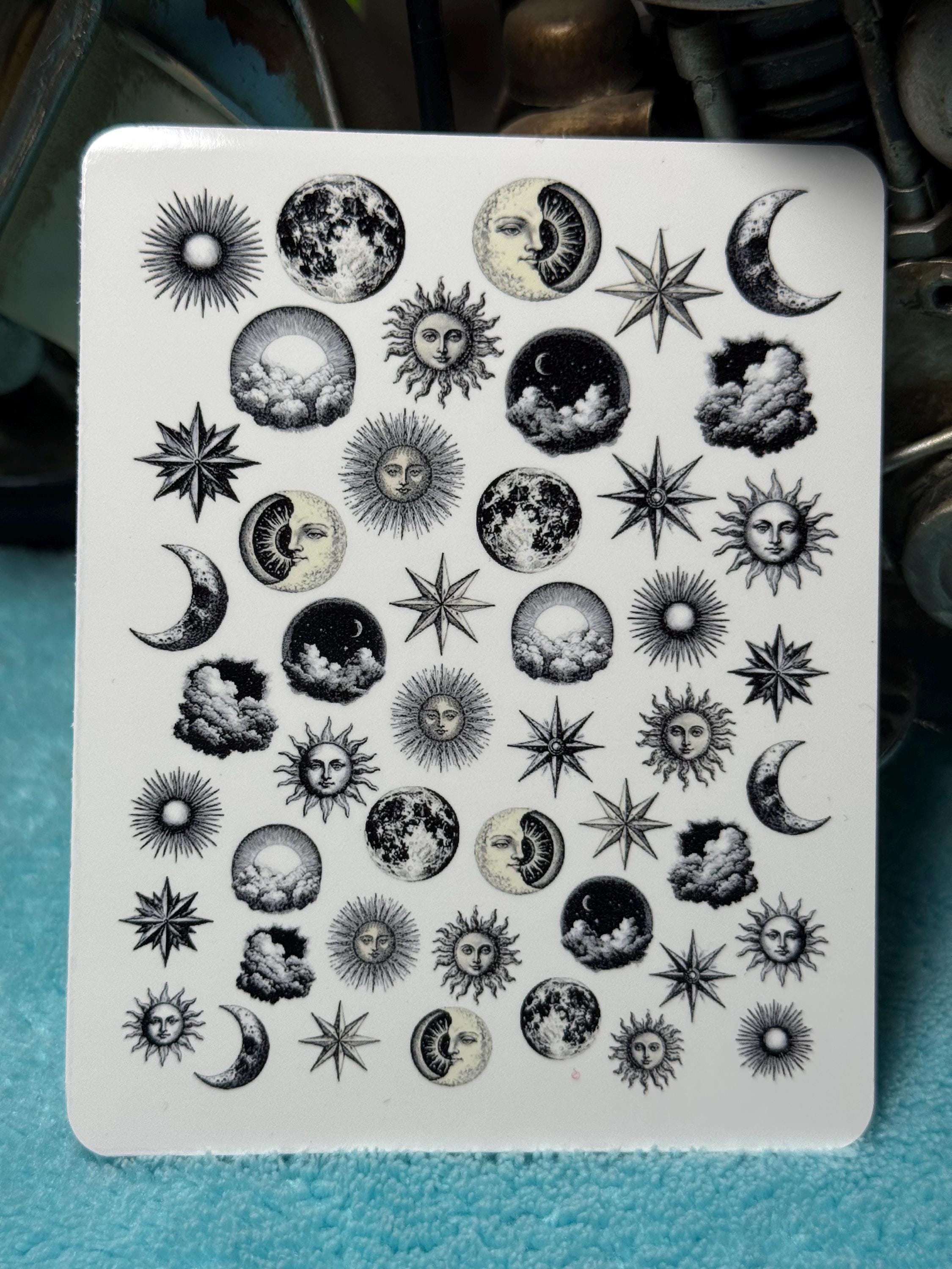 Vintage celestial body nail art waterslide stickers for nails, nail stickers sun, moon, stars