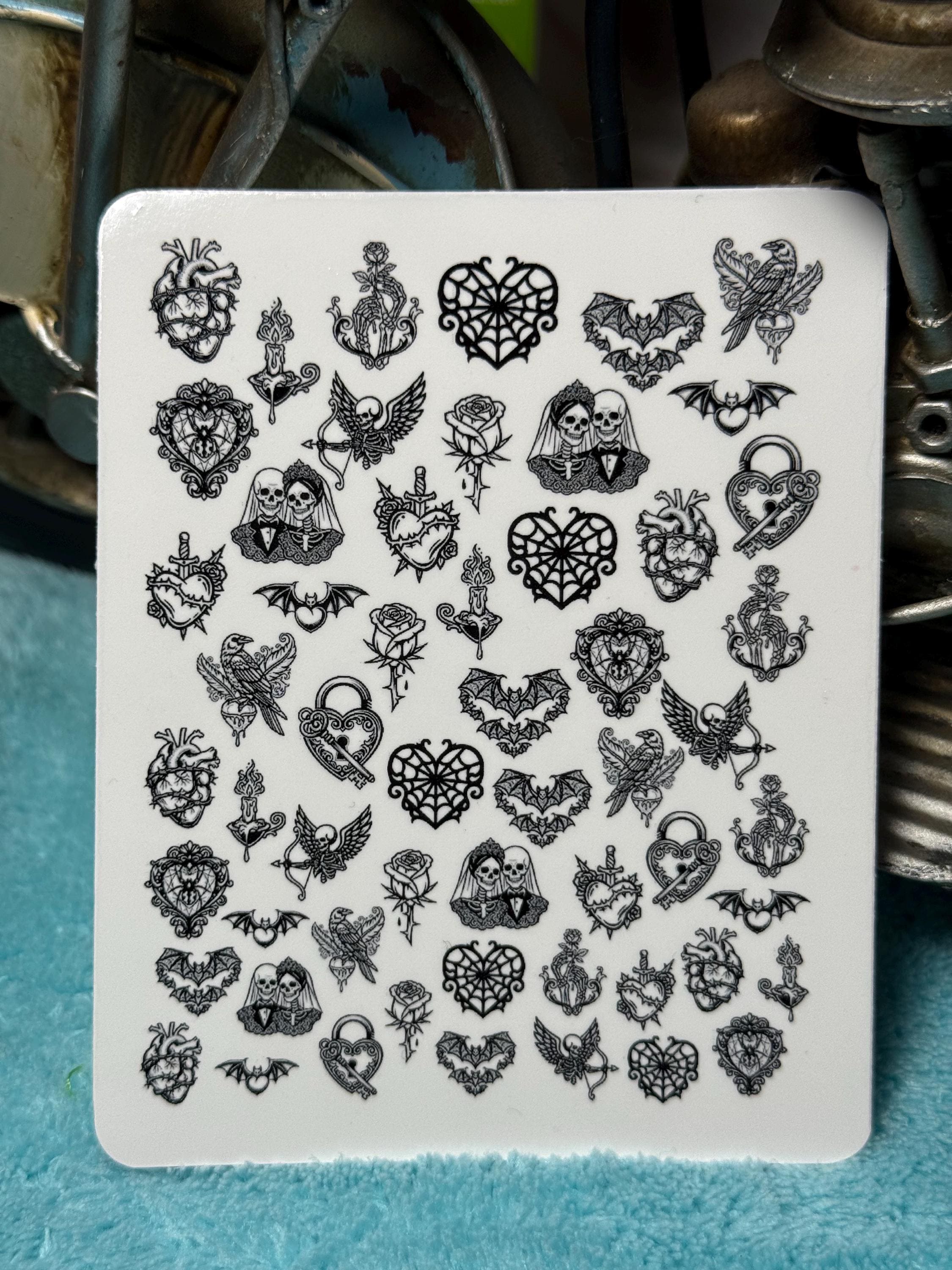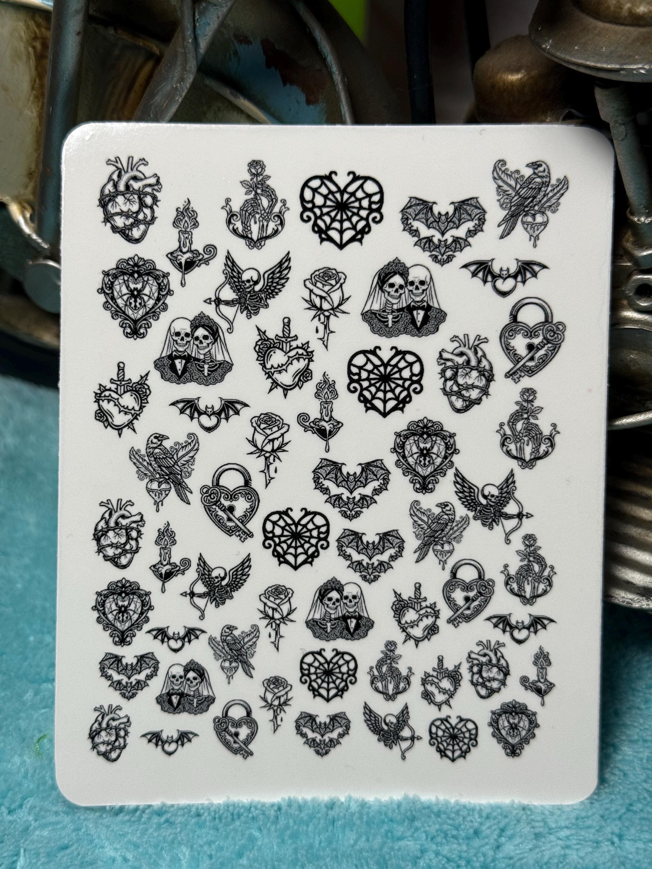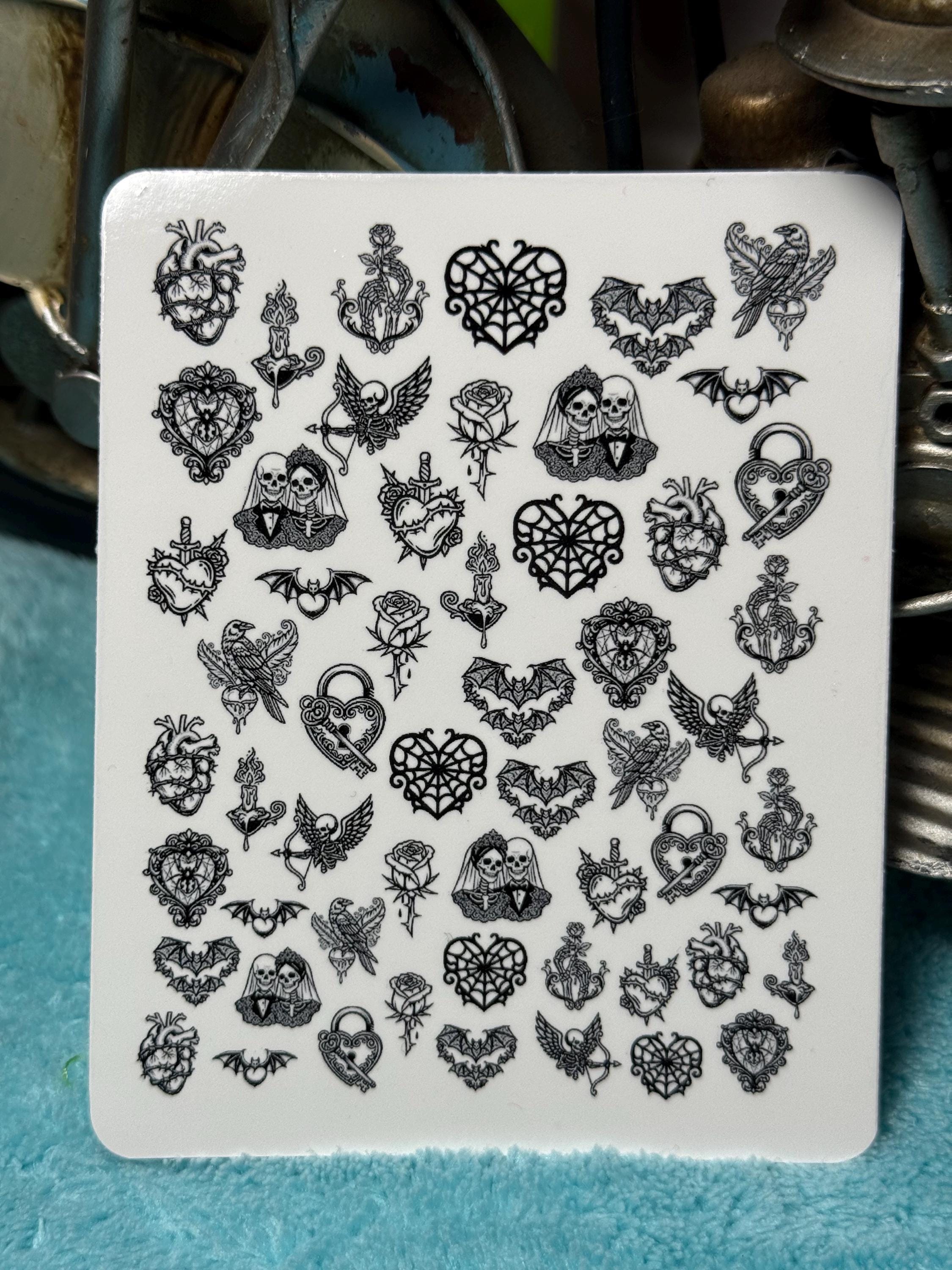 Gothic Valentine's Day nail art waterslide stickers for nails, dark romantic nail stickers, skeleton