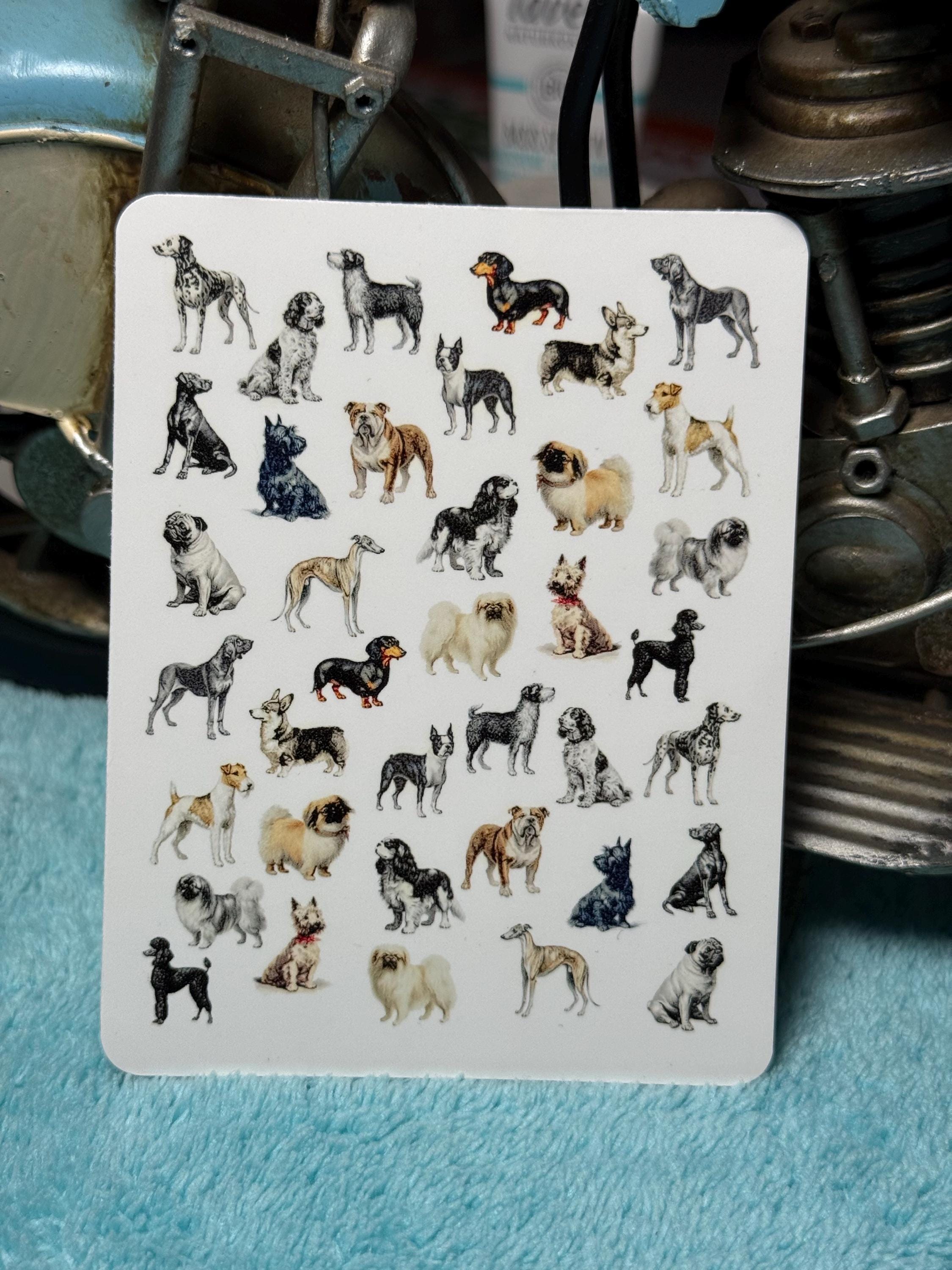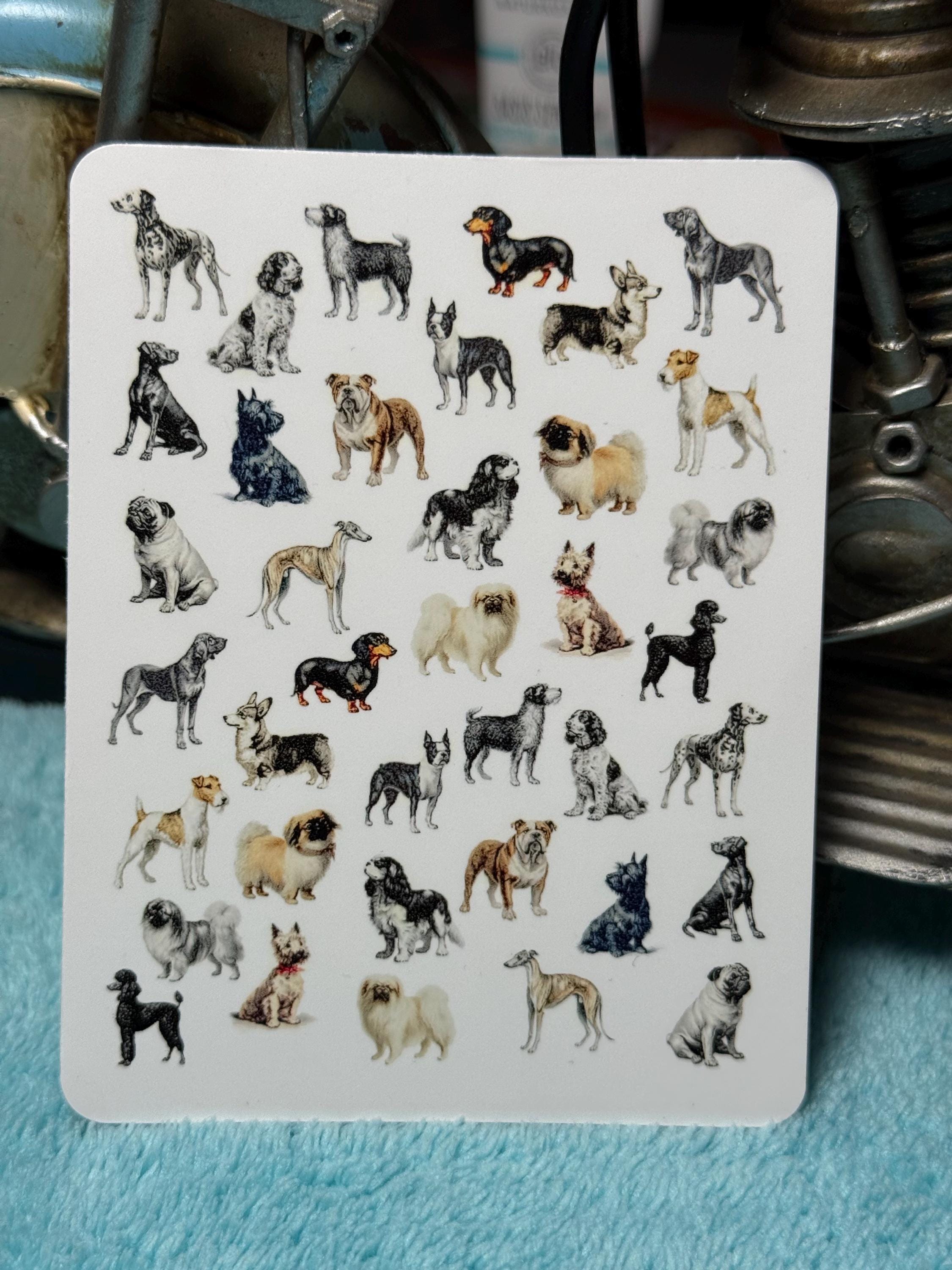 Vintage dog nail art waterslide stickers for nails, nail stickers poodle, dachshund, pug