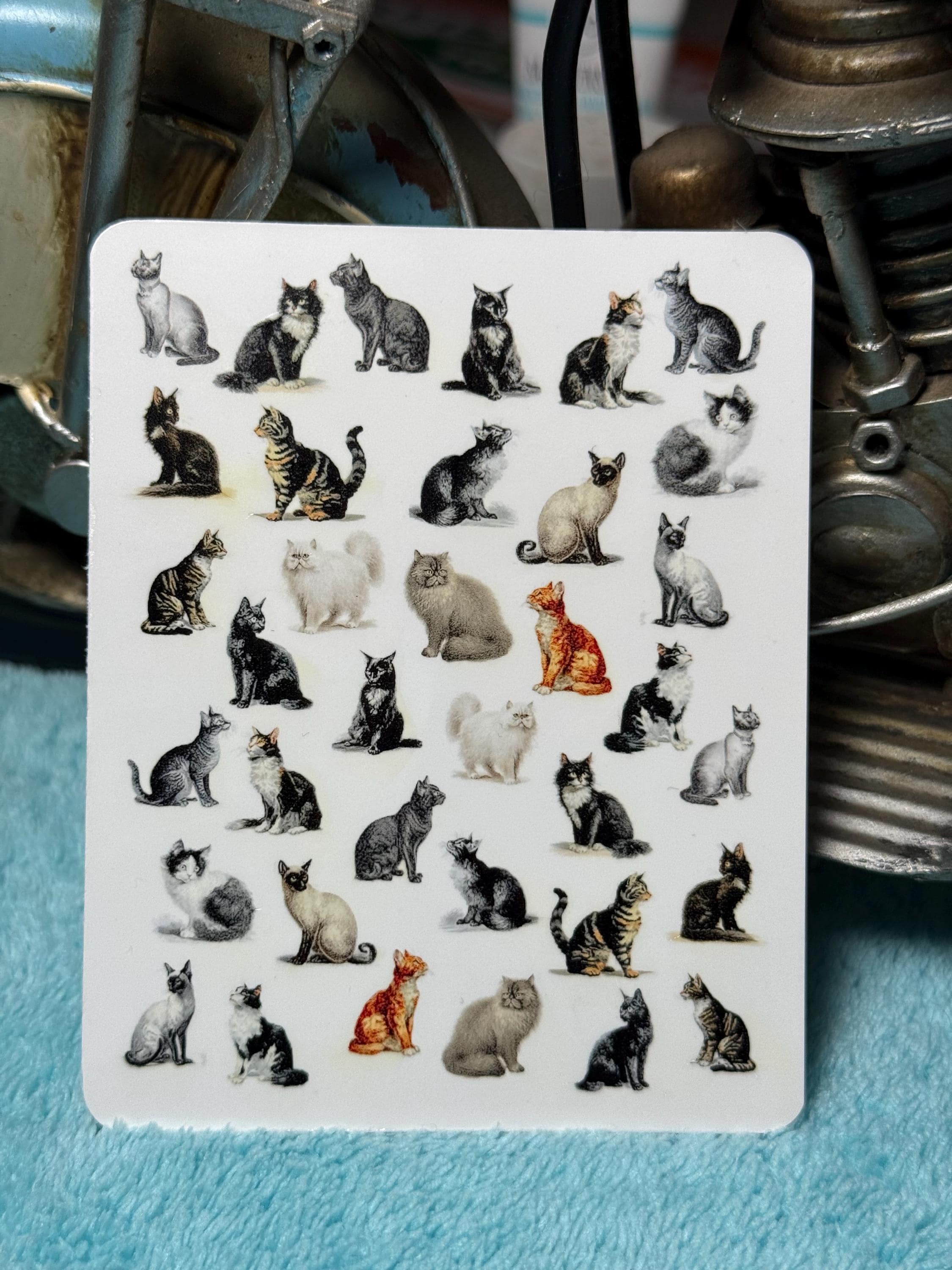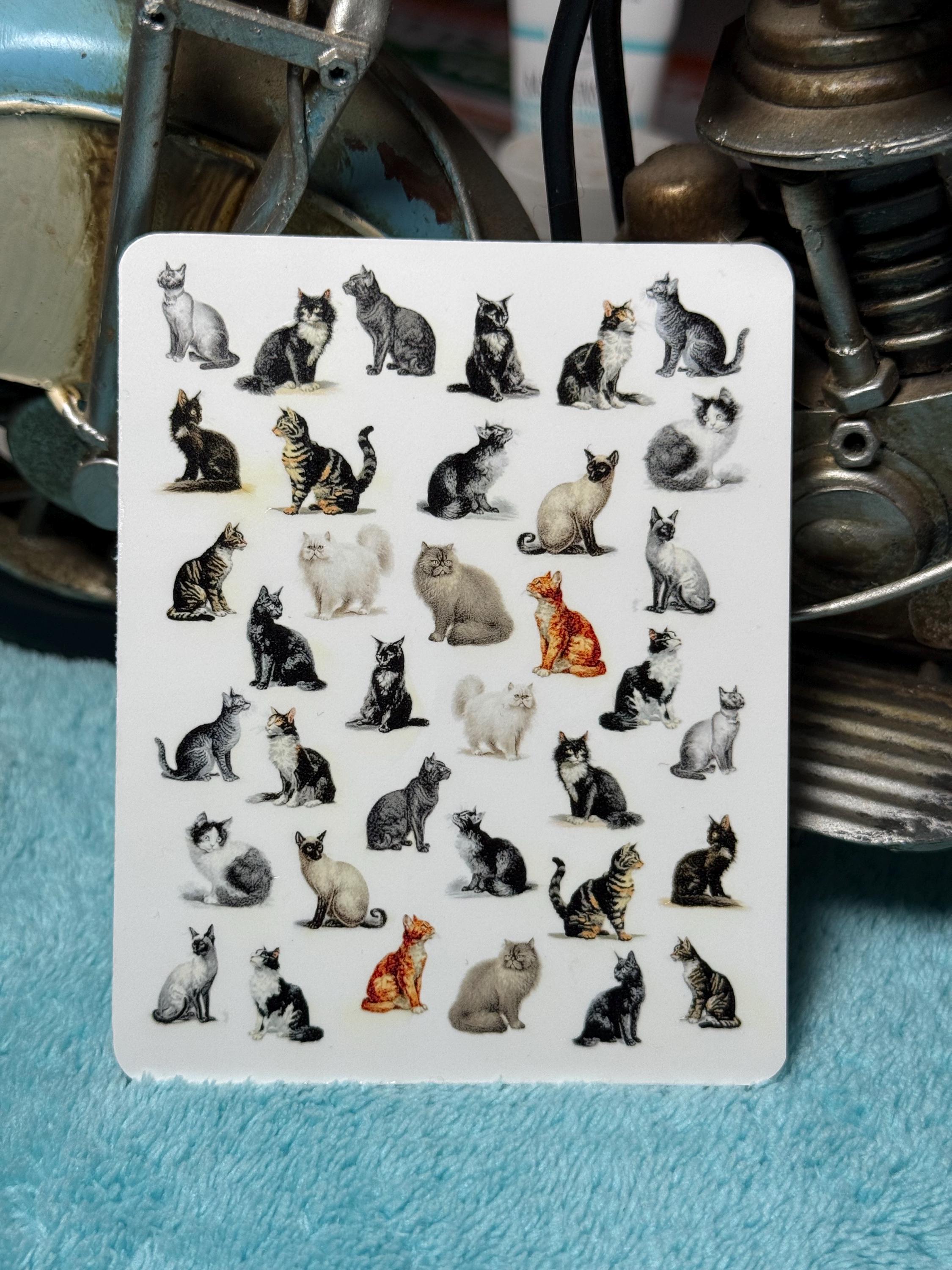Vintage cat nail art waterslide stickers for nails, nail stickers Siamese, Maine Coon