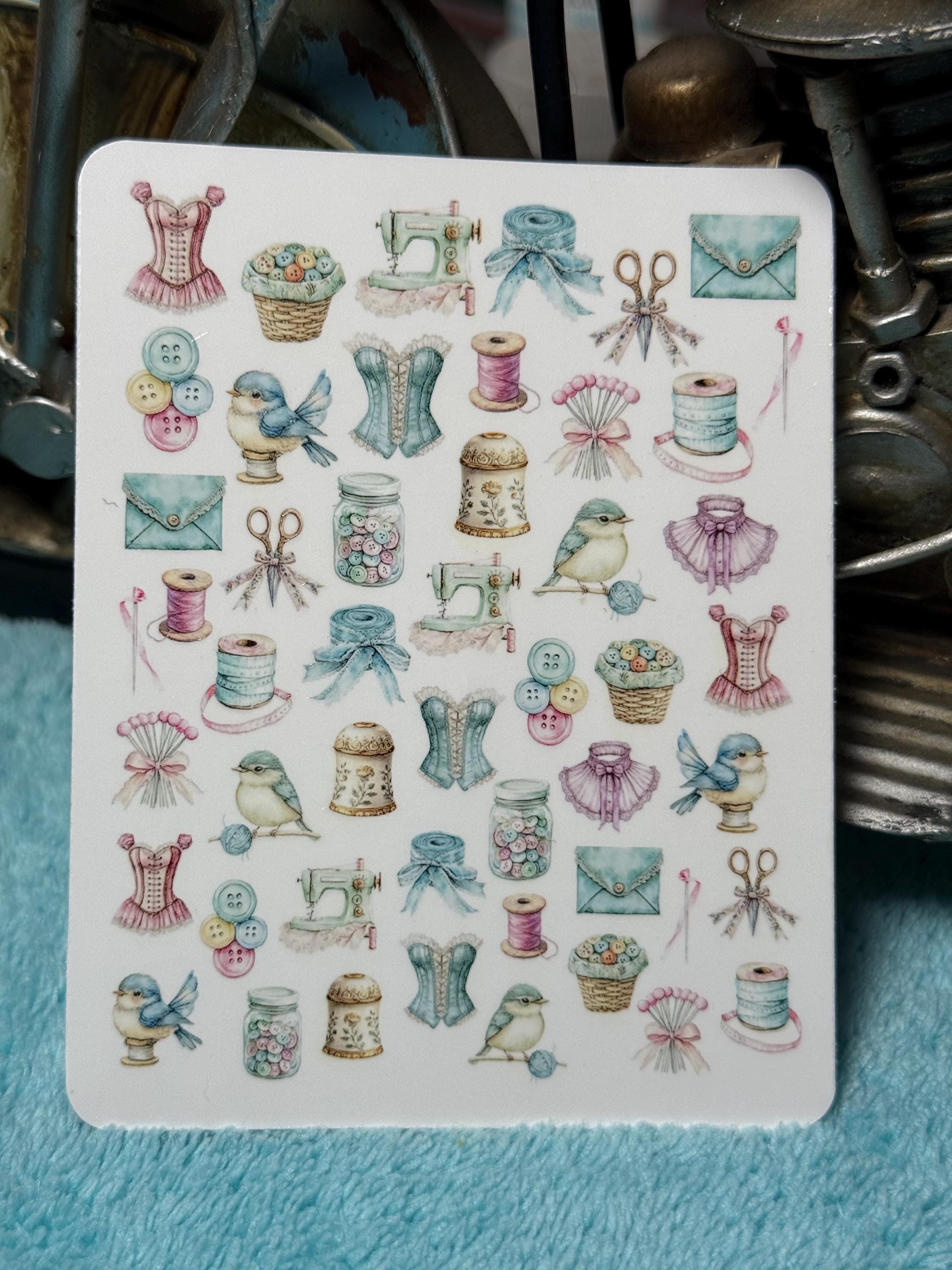 Shabby Chic Sewing Nail Art Water Slide Stickers for Nails, Vintage Sewing Nail Stickers, Victorian