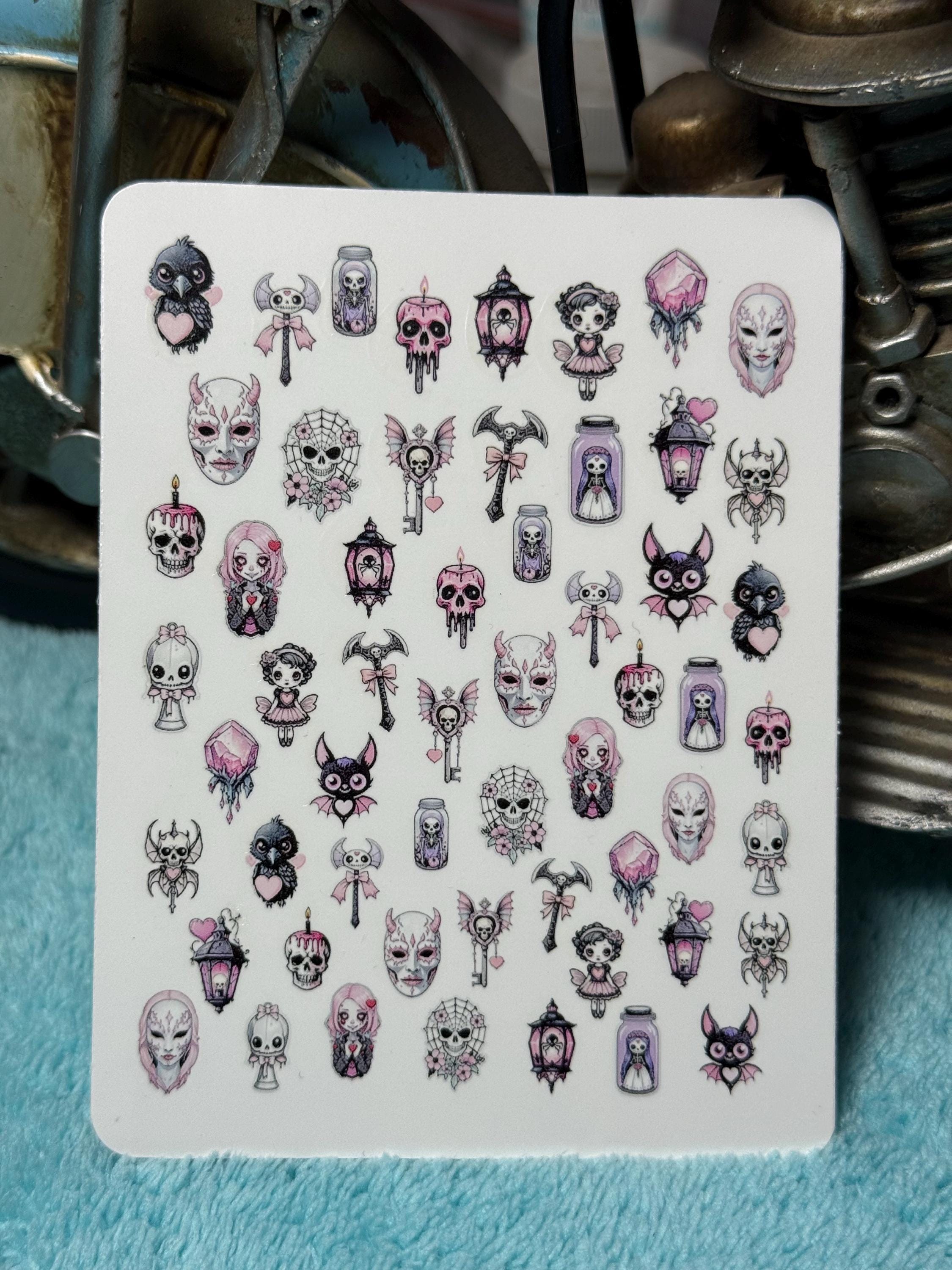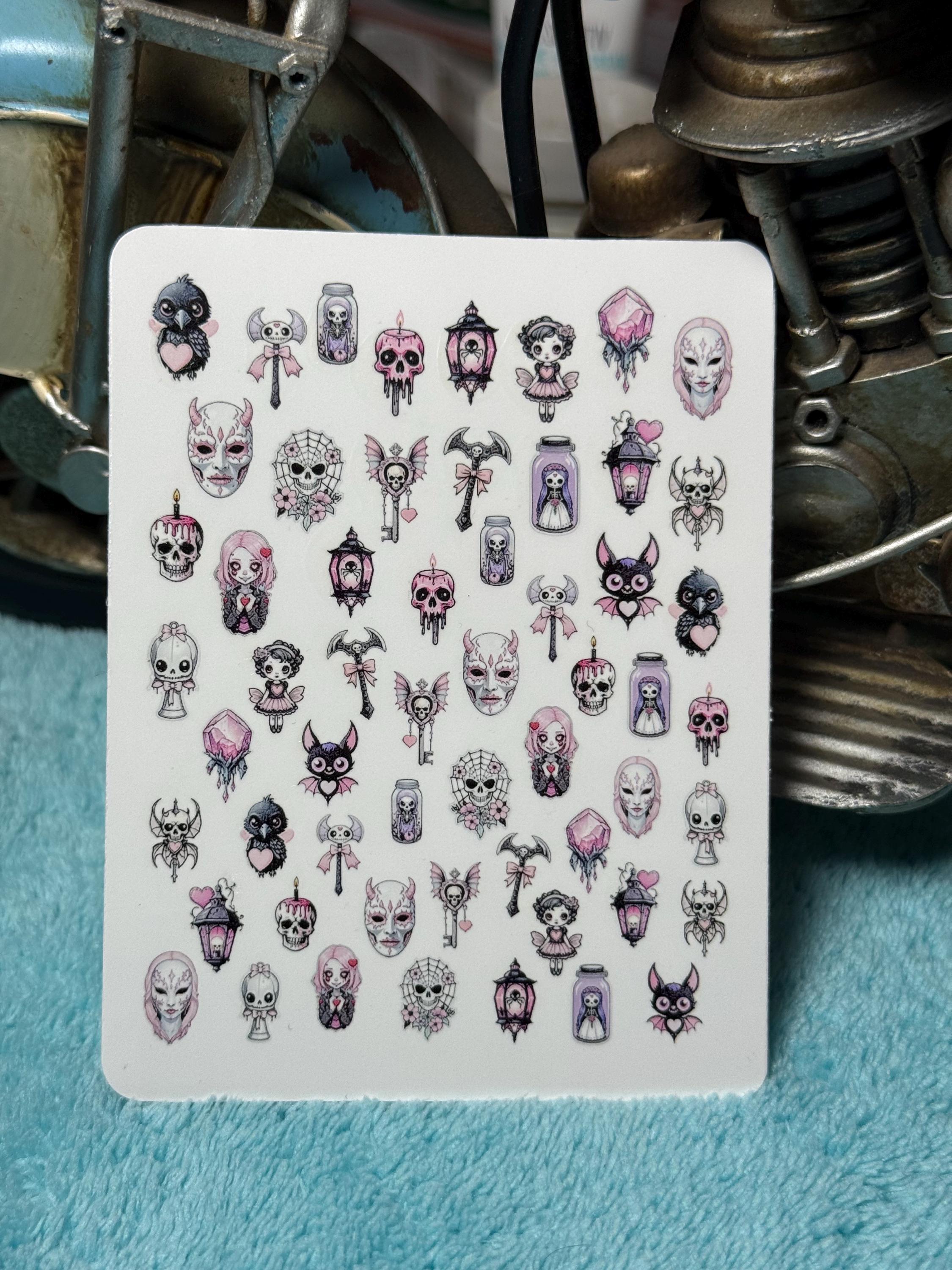 Gothic Valentine's Day nail art waterslide stickers for nails, creepily cute nail stickers, pastel gothic pink