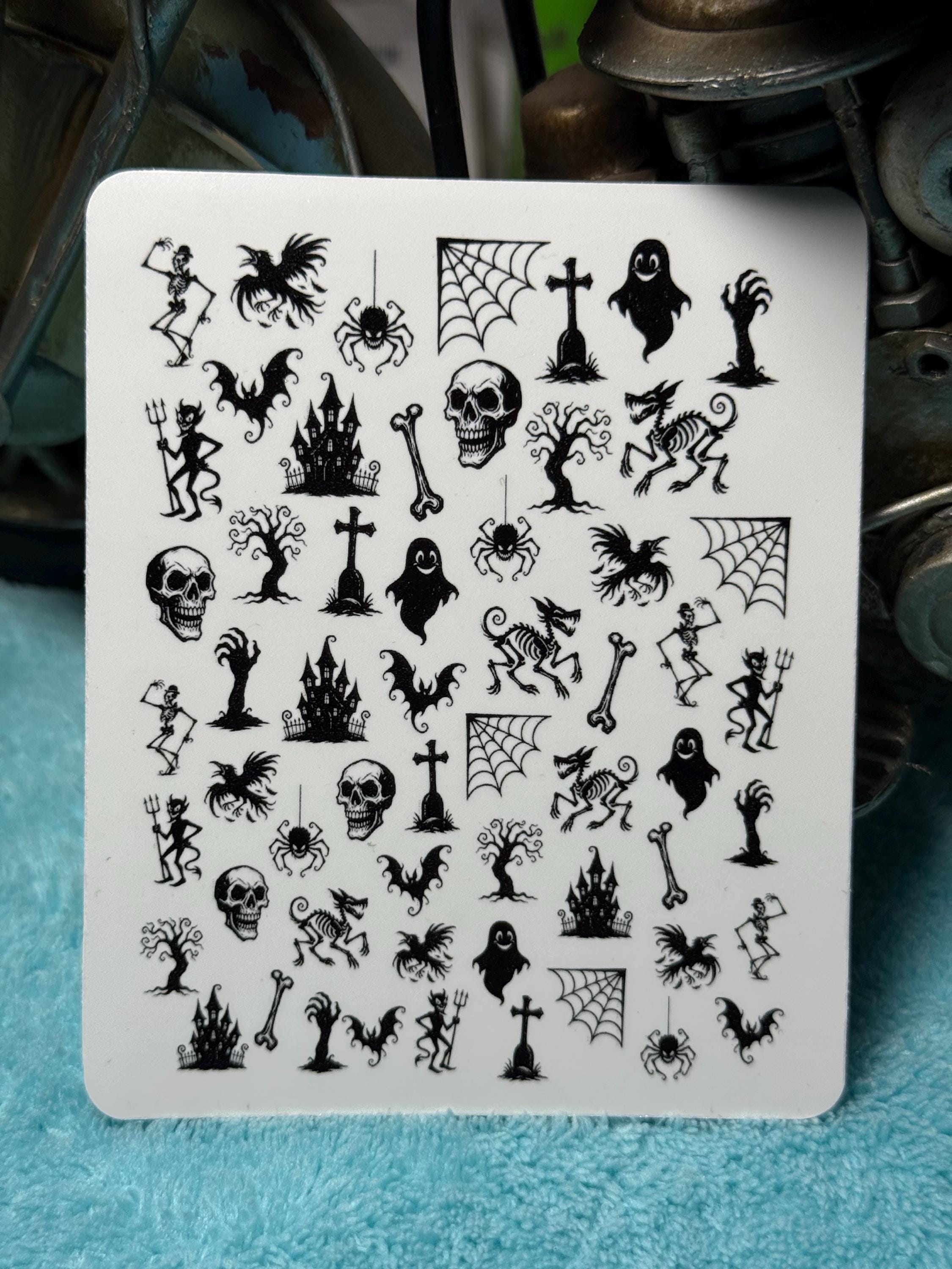 Halloween Horror Water Nail Stickers, Water Slide Stickers for Nails, Nail Art Stickers Skeleton, Bat, Skull