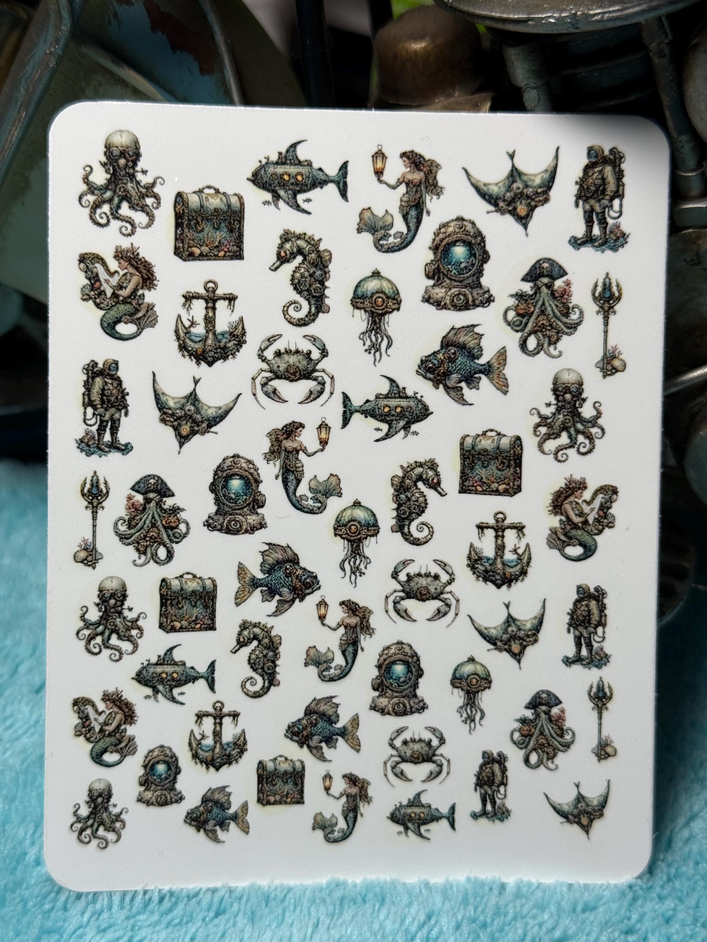 Under the Sea Nail Art Water Slide Stickers for Nails, Victorian, Steampunk, Mermaid Nail Stickers