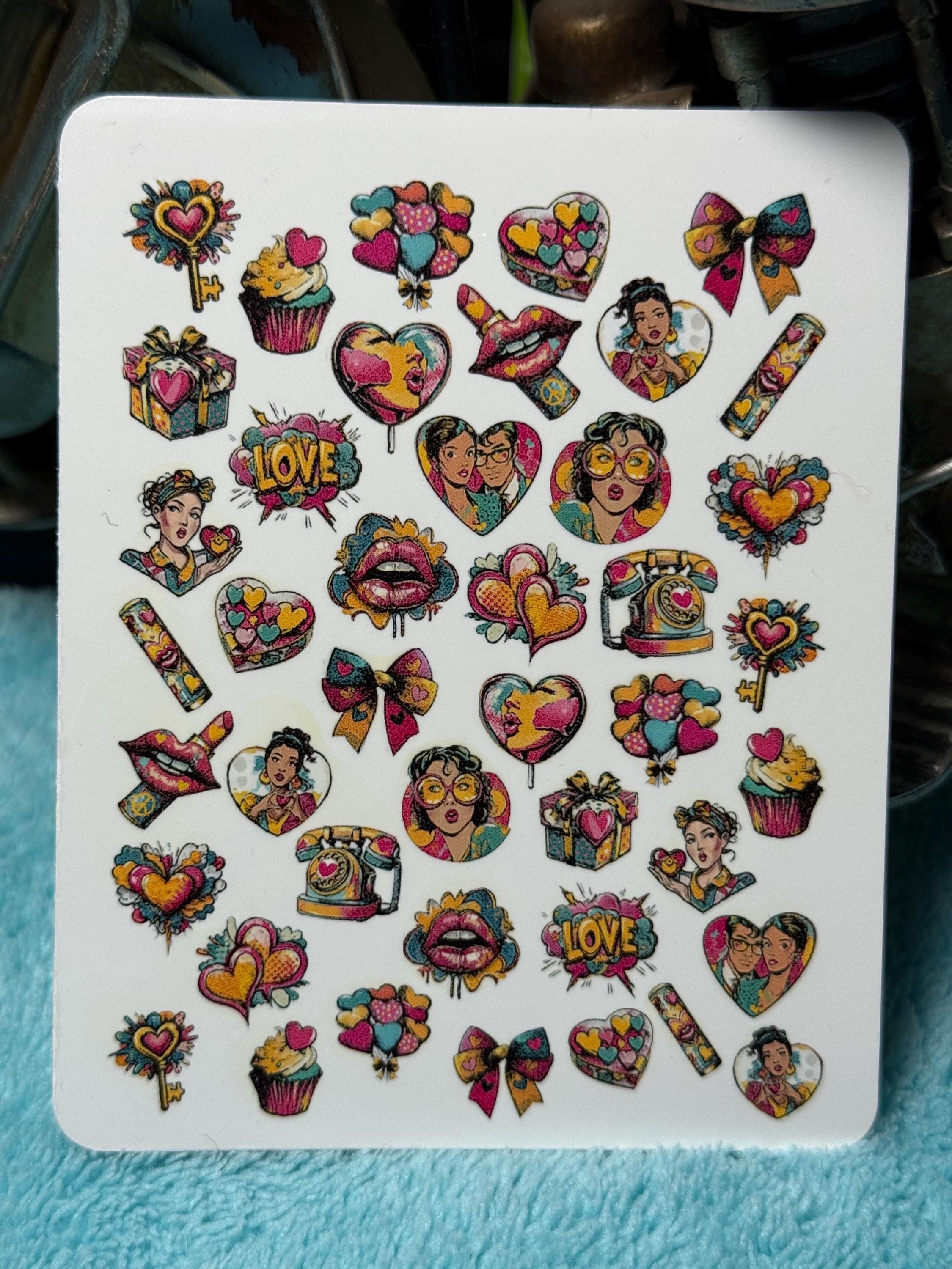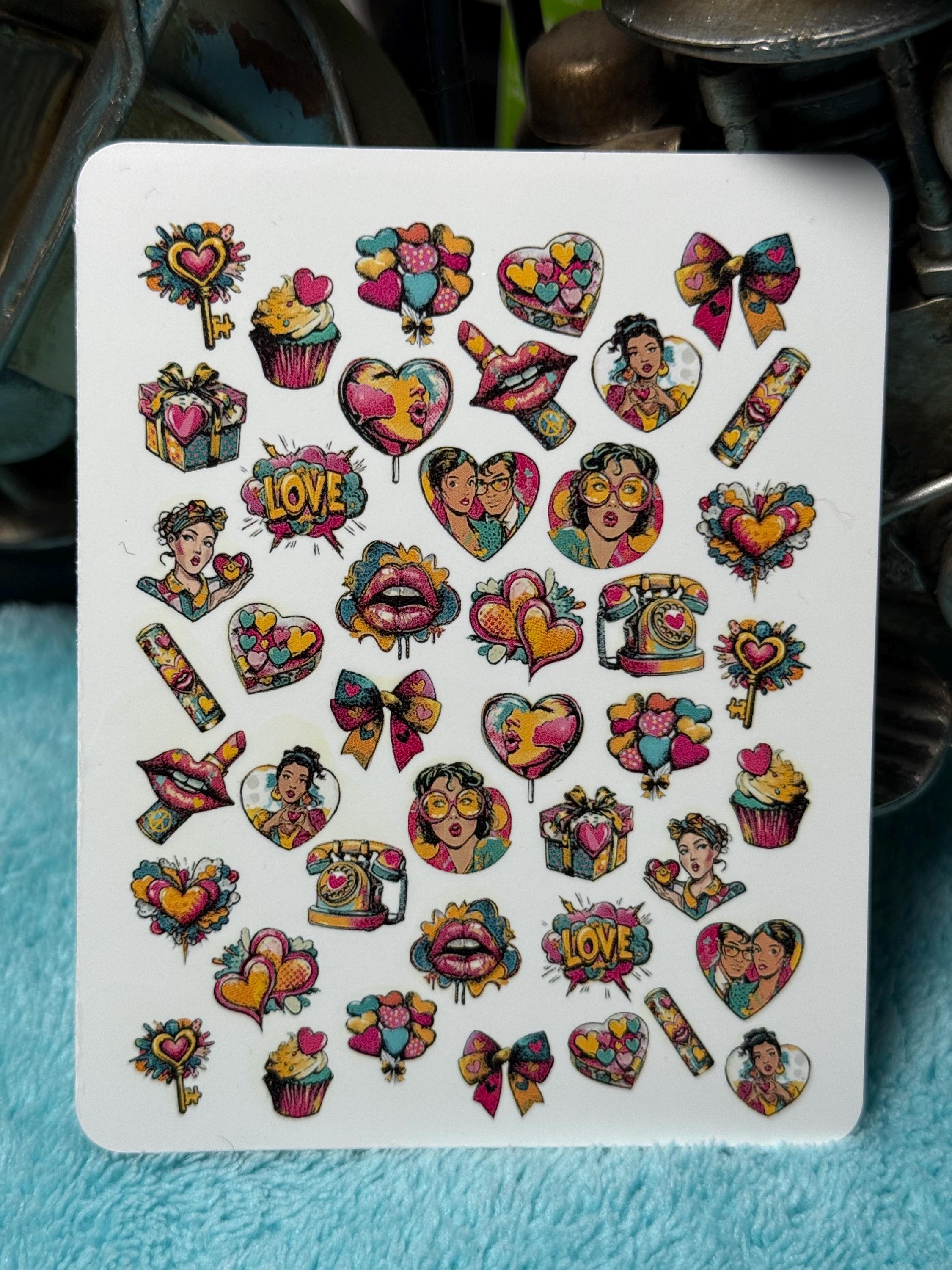Pop Art Valentine's Day Nail Art Water Slide Stickers for Nails, Retro Pop Art Nail Stickers