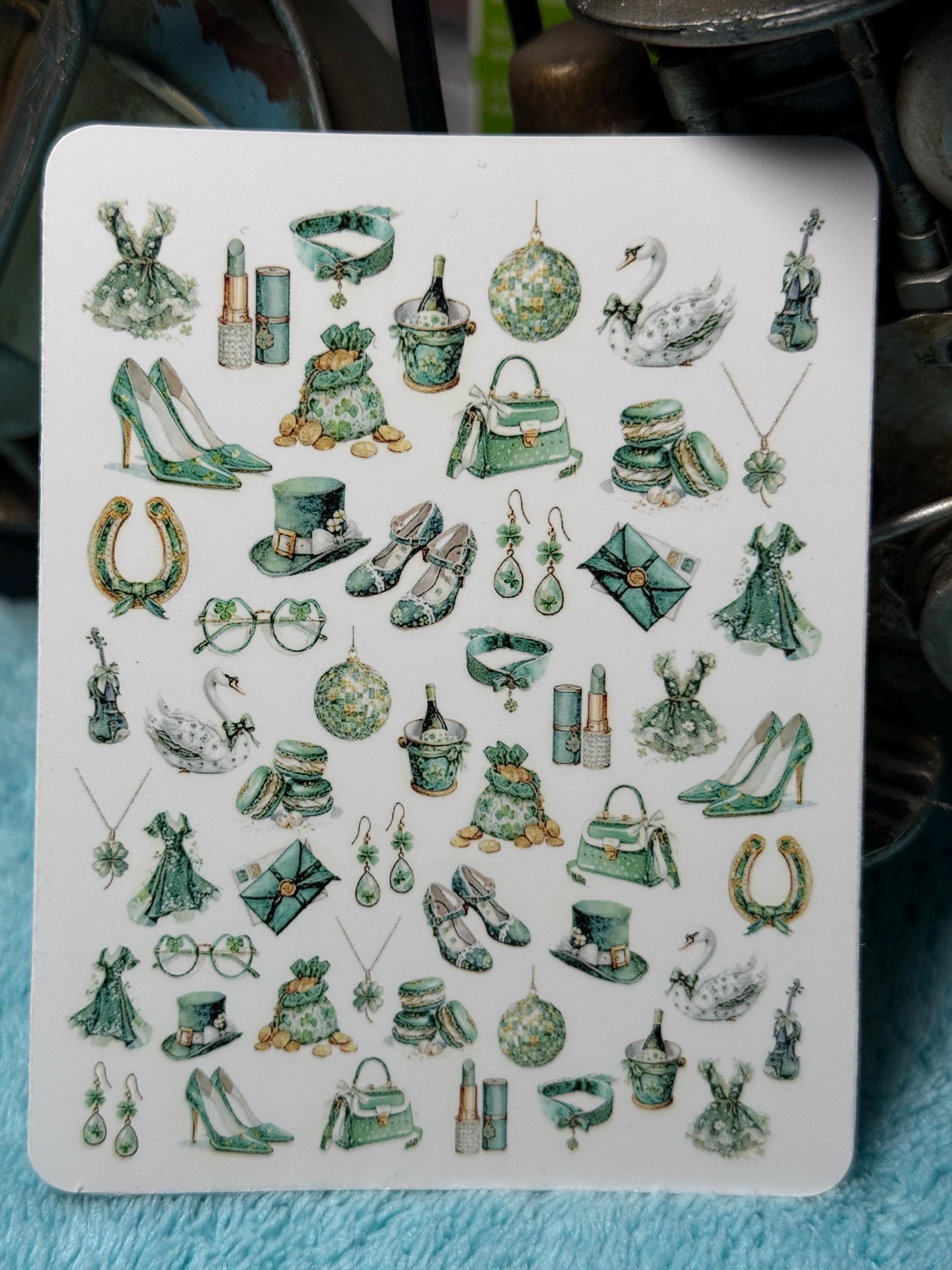 Charming St. Patrick's Day waterslide nail art stickers, Irish rainbow shamrock nail stickers