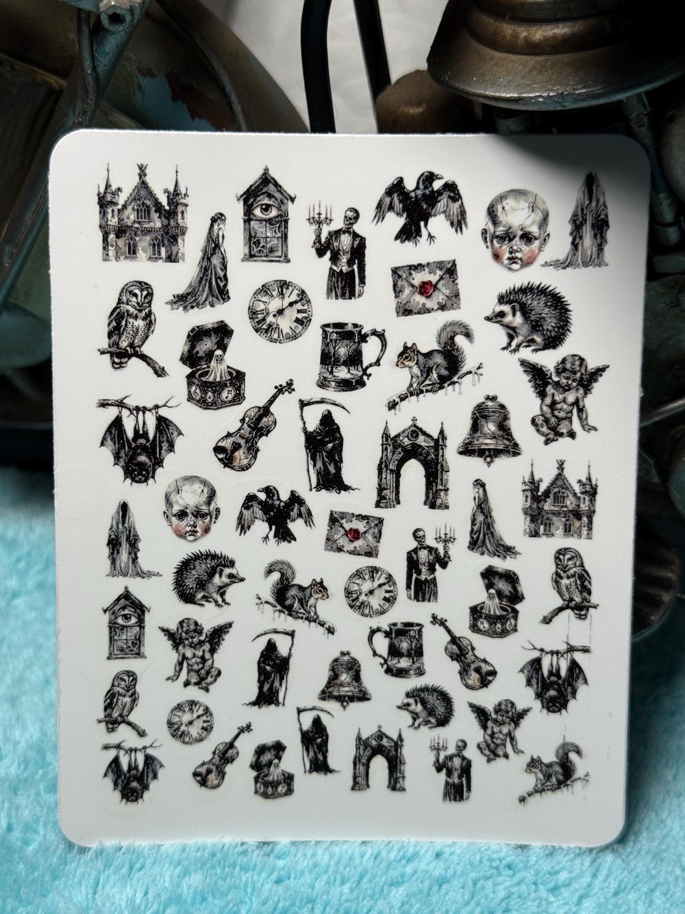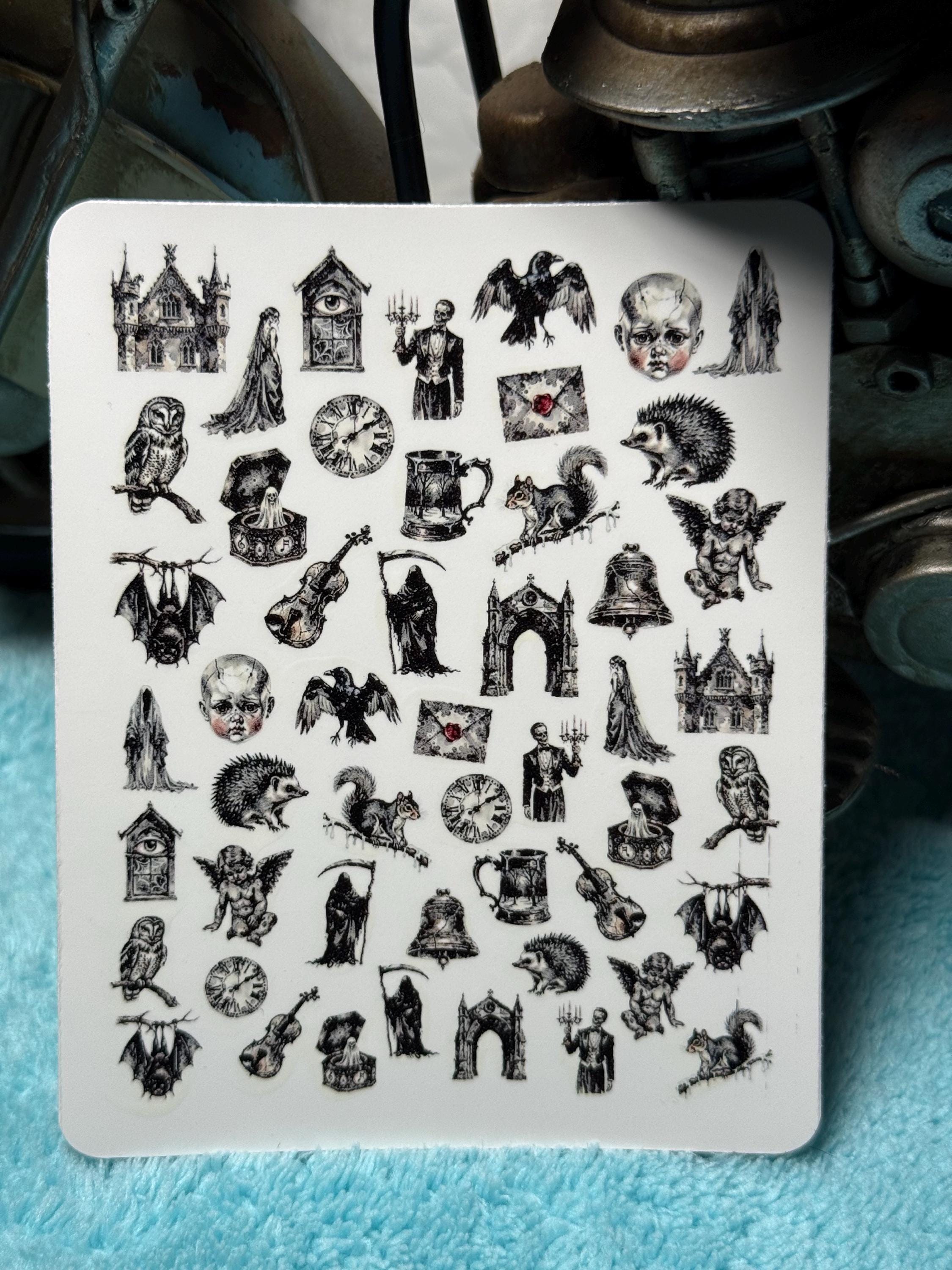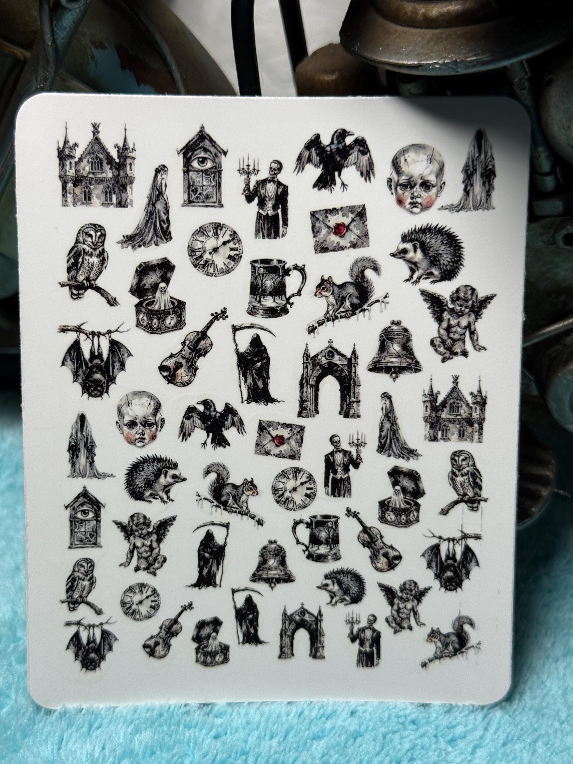 Dark Gothic nail art waterslide stickers for nails, skull nail stickers, occult, Victorian