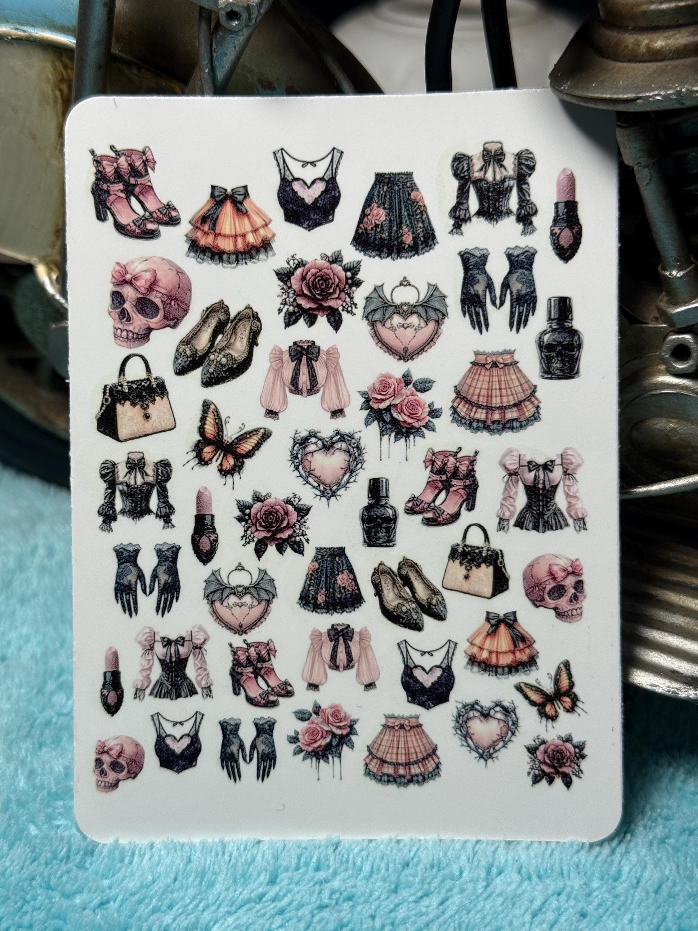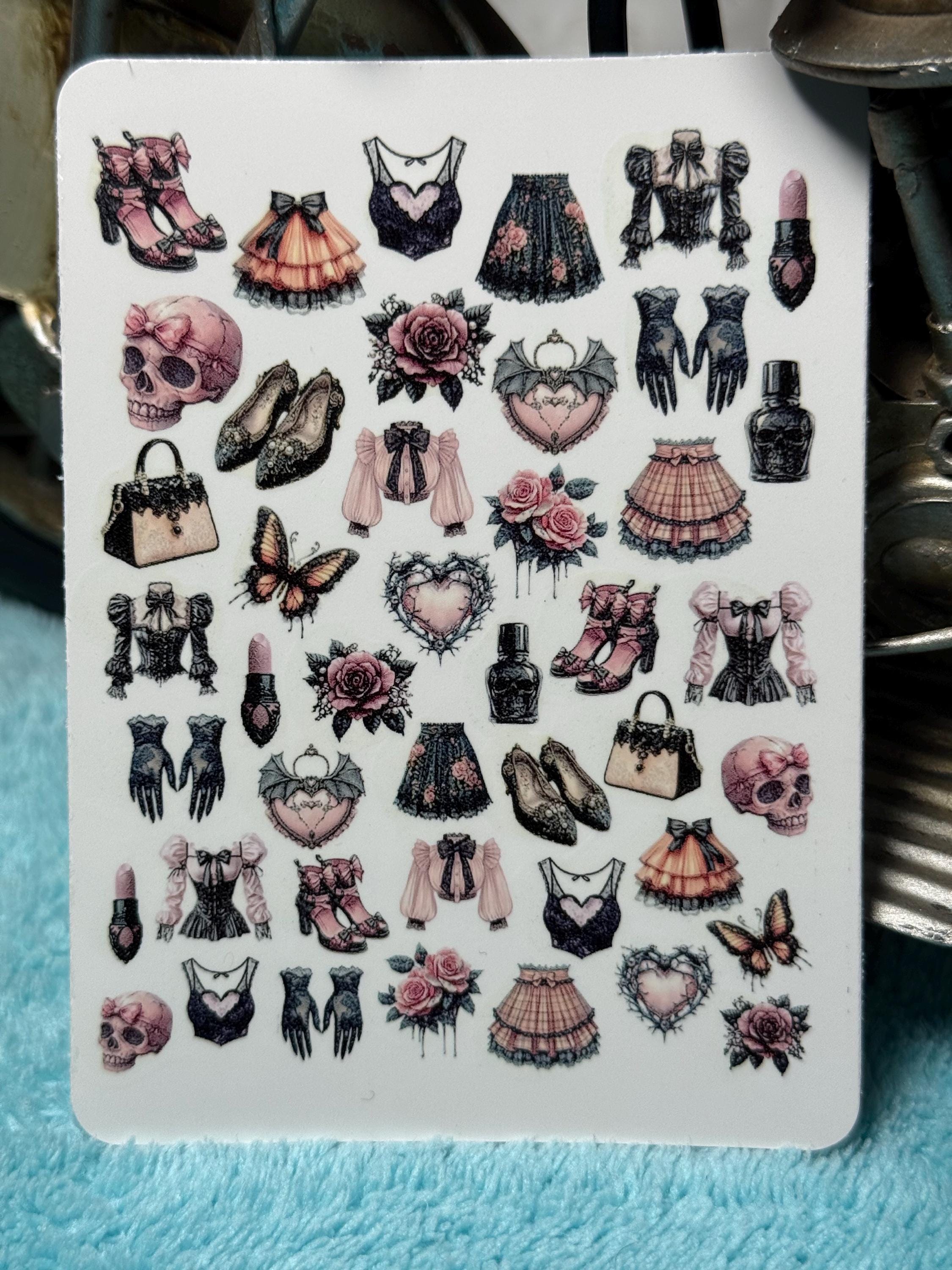 Gothic coquettish nail art waterslide stickers for nails, nail stickers with a creepy cute aesthetic, occult