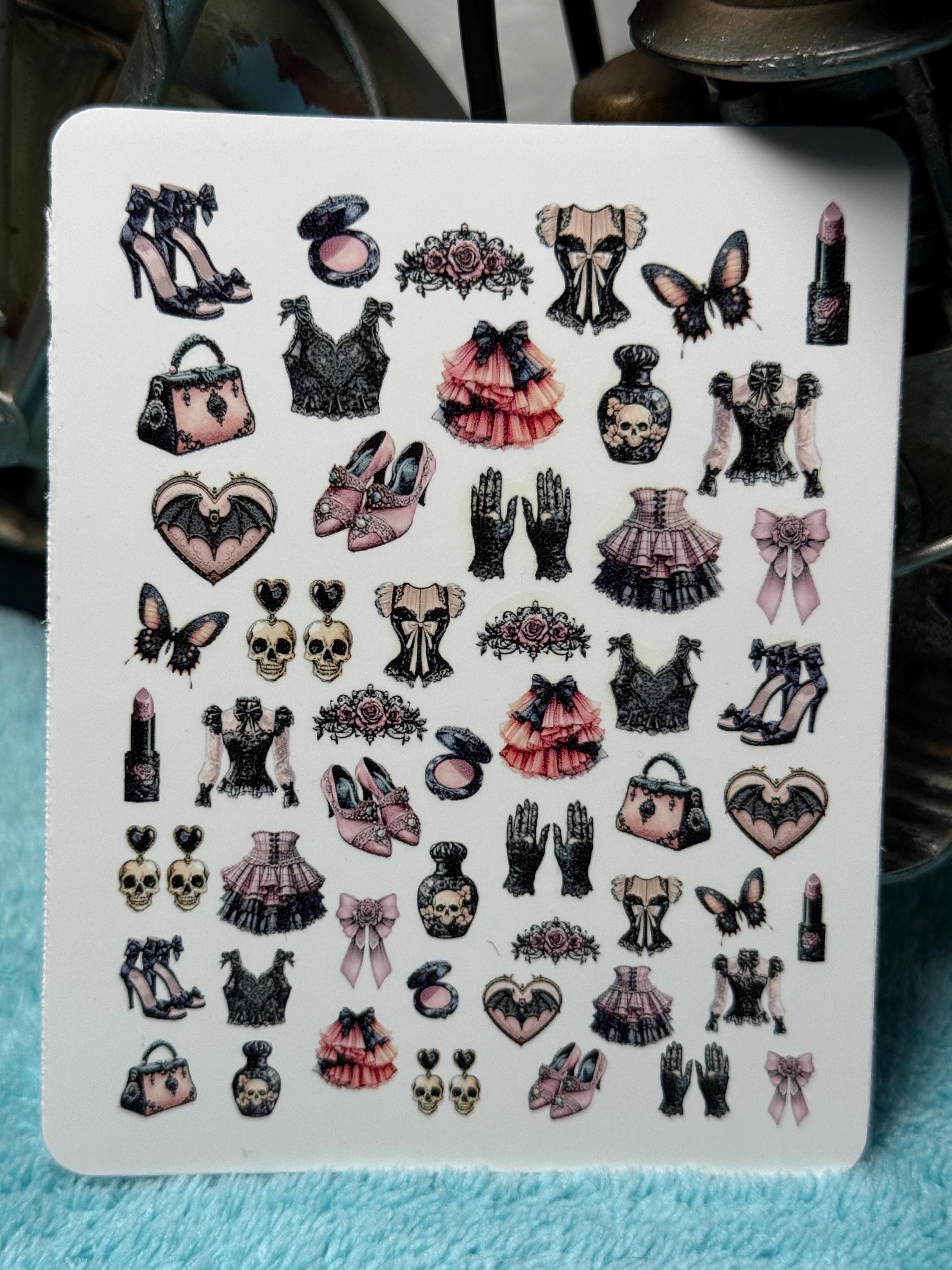 Gothic Kokett nail art waterslide stickers for nails, nail stickers, creepy dark romantic, aesthetic Halloween