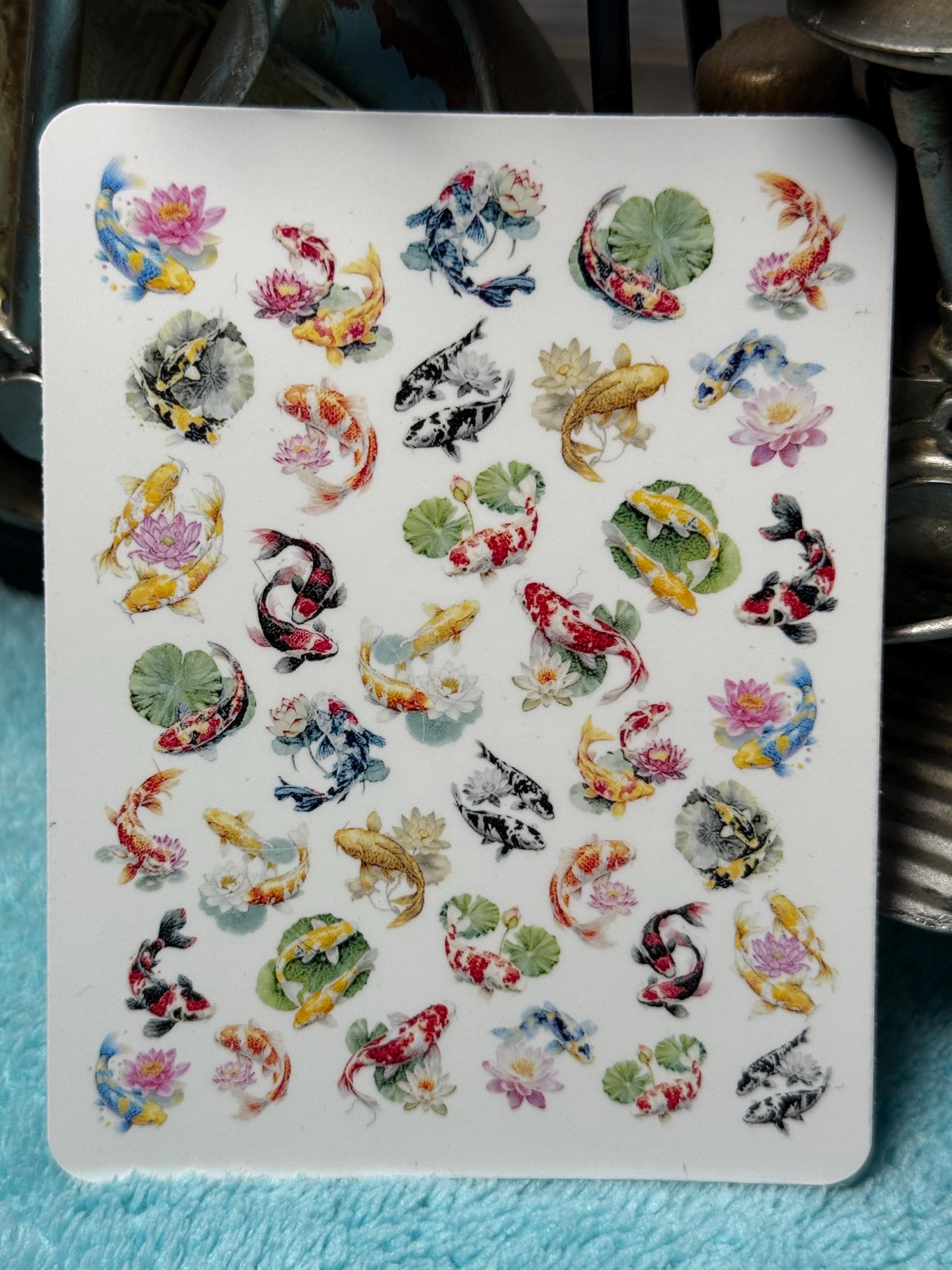 Koi Fish Nail Stickers - Lotus - Japanese Nail Stickers - Koi - Waterslide Stickers - Nail Art - Water Slide Nail Stickers