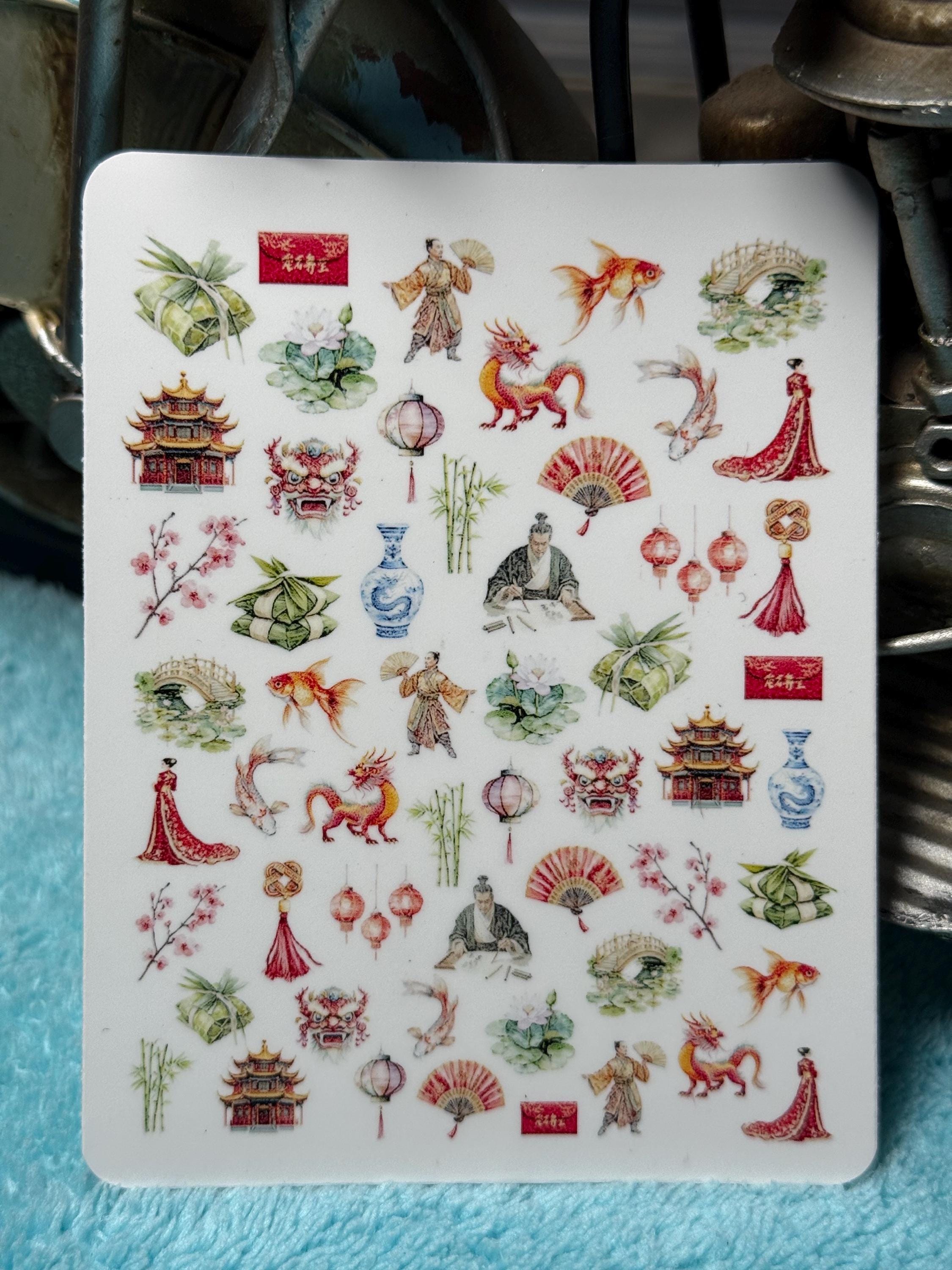 Nail Stickers - Chinese Nail Stickers - Koi - Water Slide Stickers - Nail Art - Water Nail Stickers - Koi Fish Bamboo Chinese