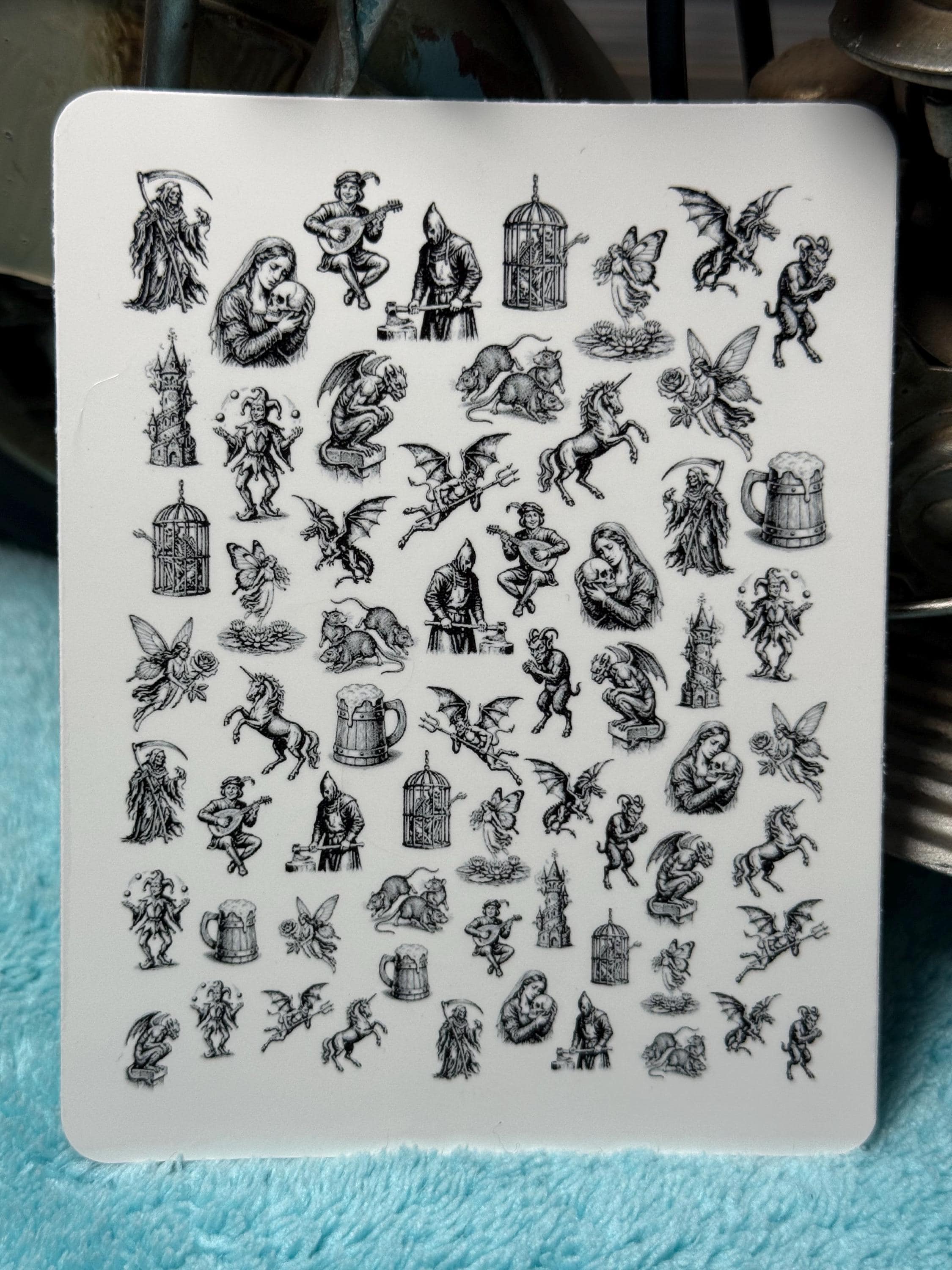 Medieval Europe Nail Stickers - Nail Stickers - Water Slide Stickers - Nail Art - Water Slide Nail Stickers - Vintage Europe - Antique