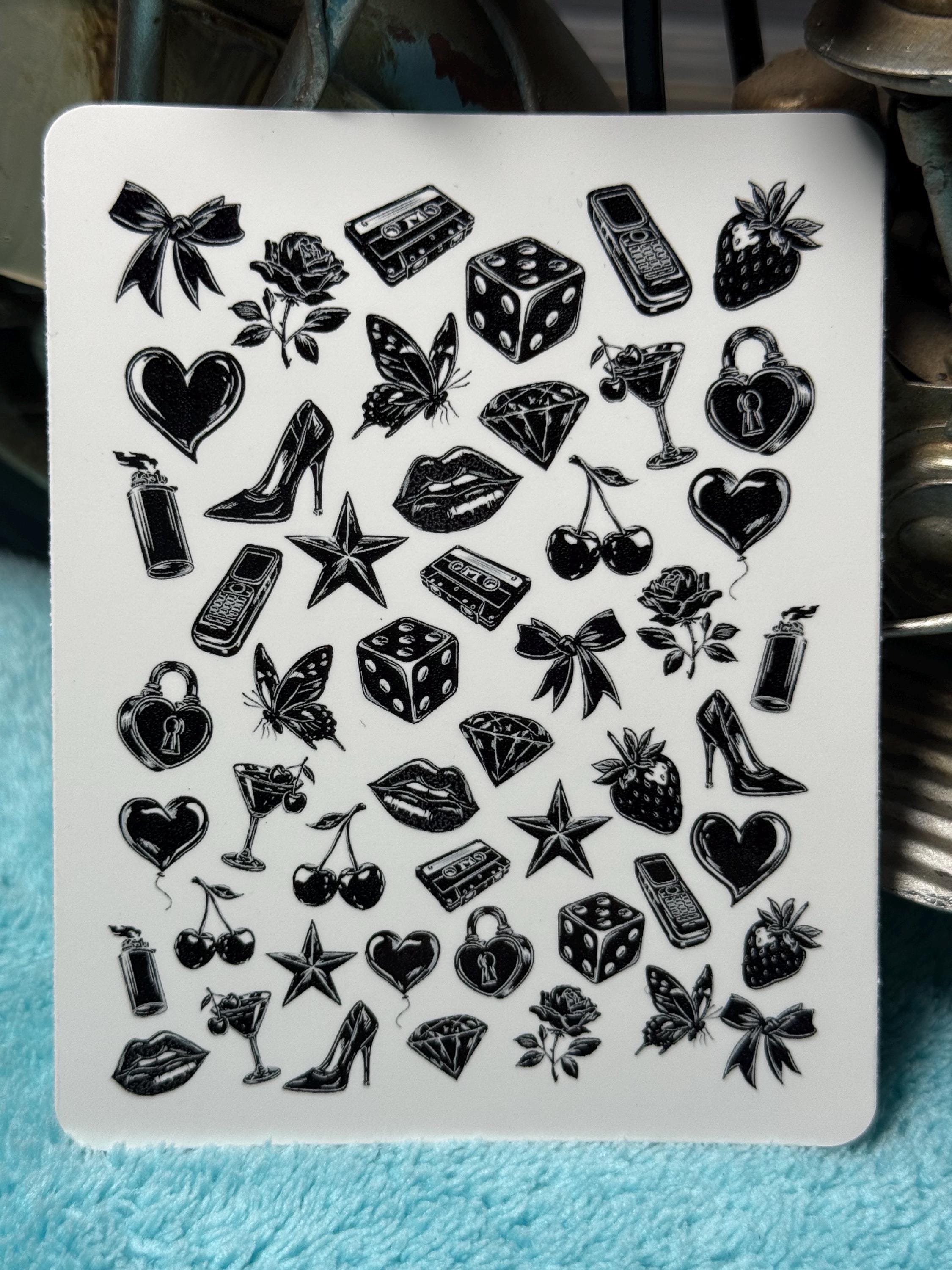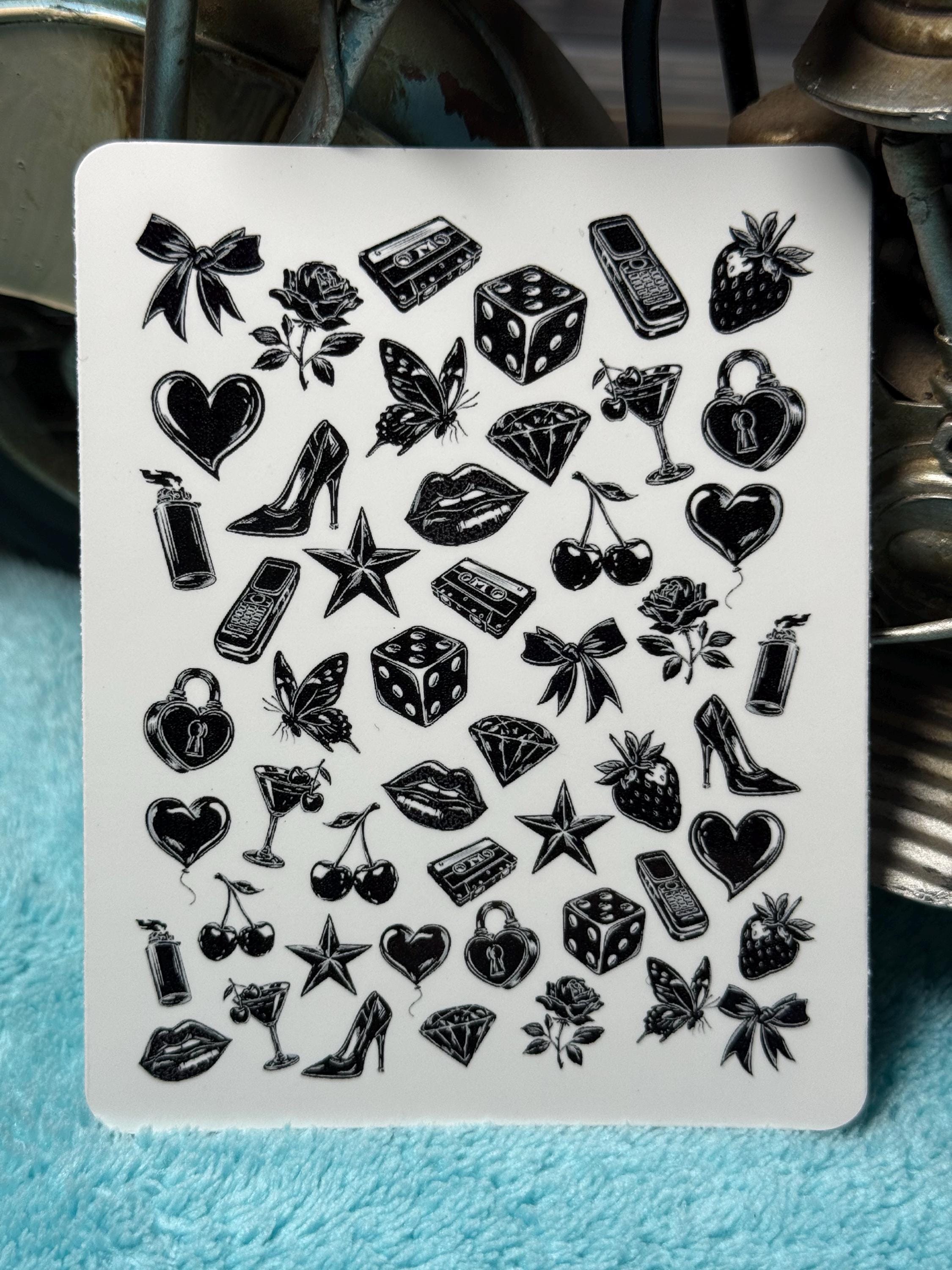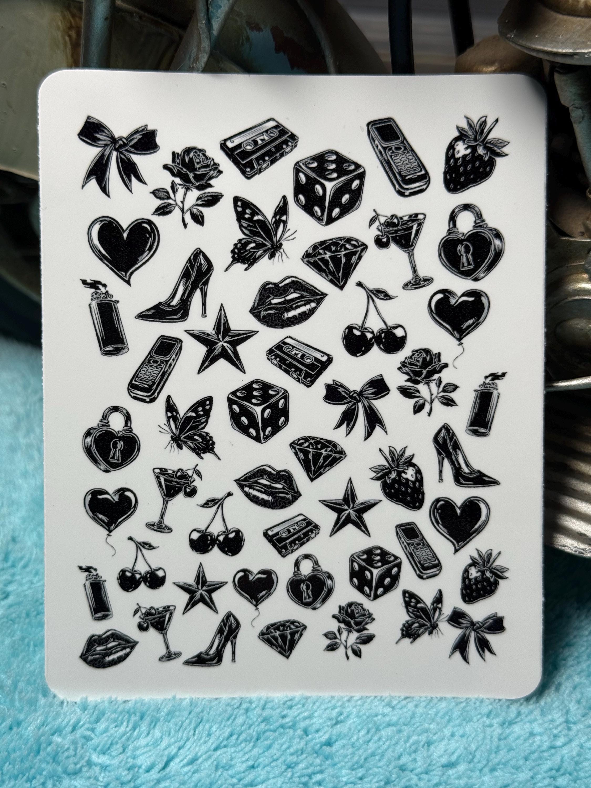 Dark Aesthetic Nail Stickers - Nail Stickers - Water Slide Stickers - Nail Art - Water Slide Nail Stickers - Black - Cube Strawberry