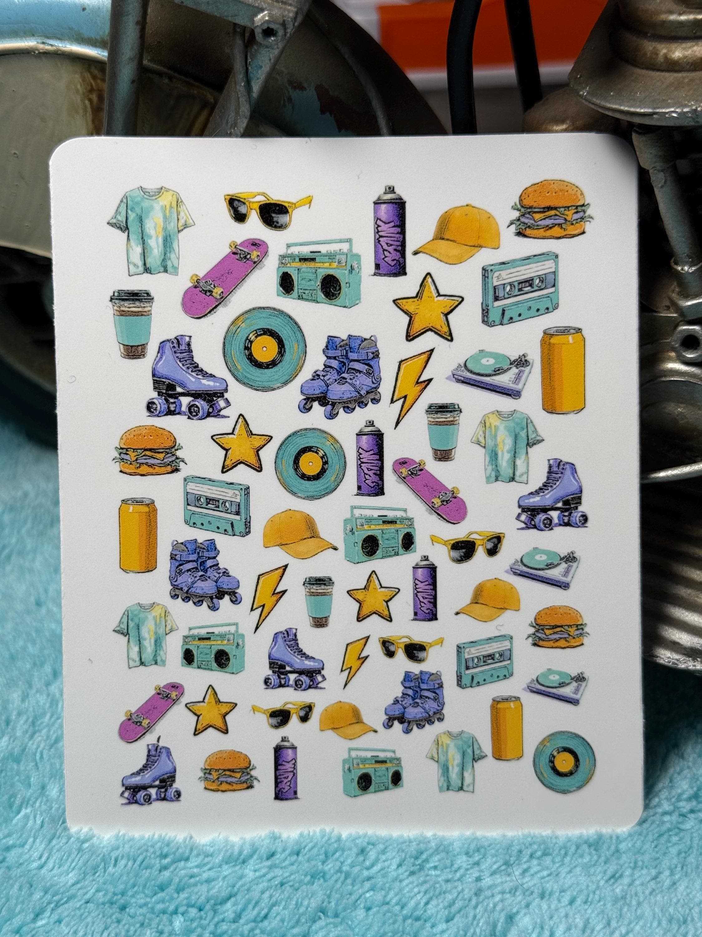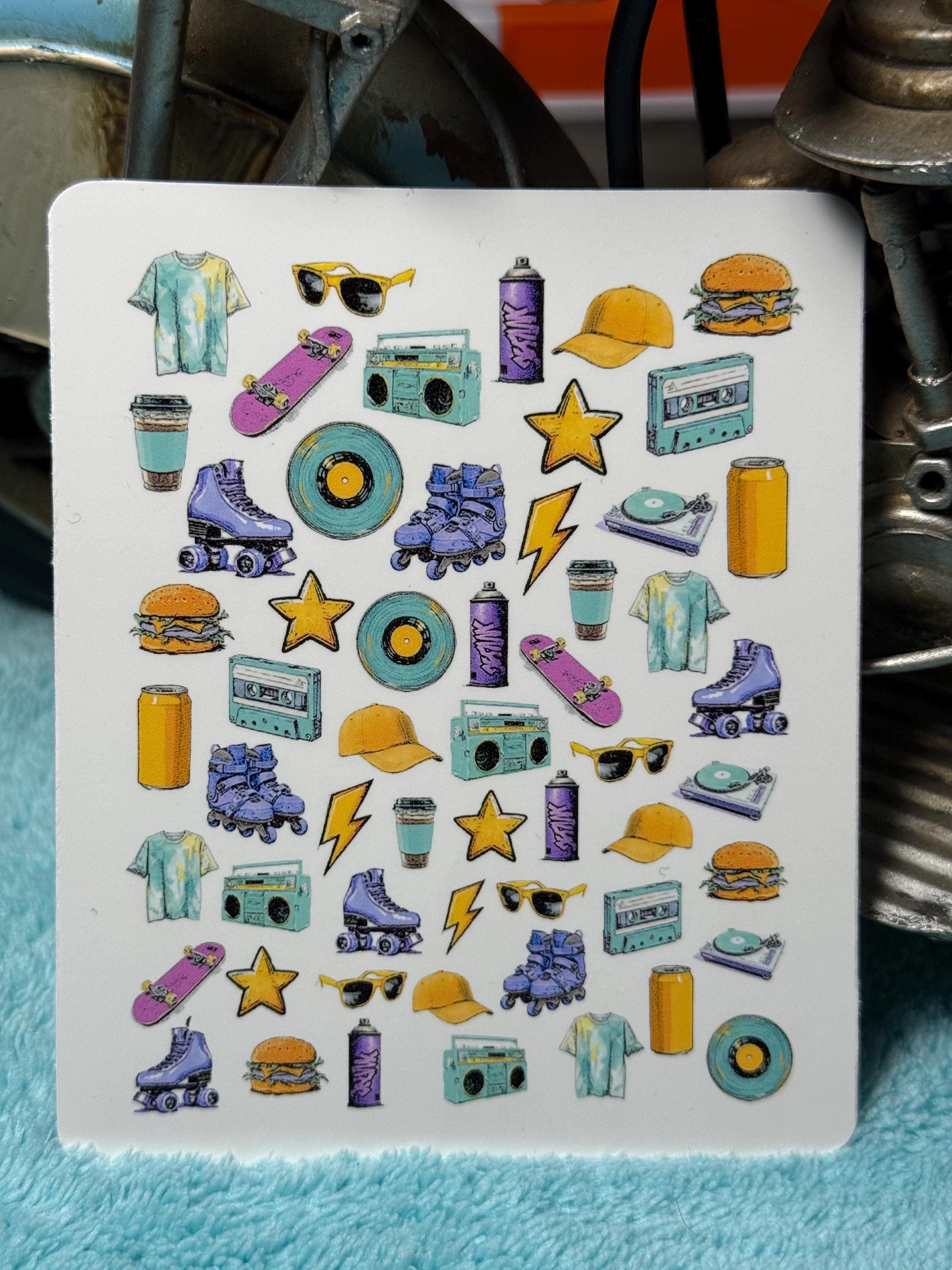 Street Style Water Slide Nail Stickers, Retro 80s Design Nail Art Stickers
