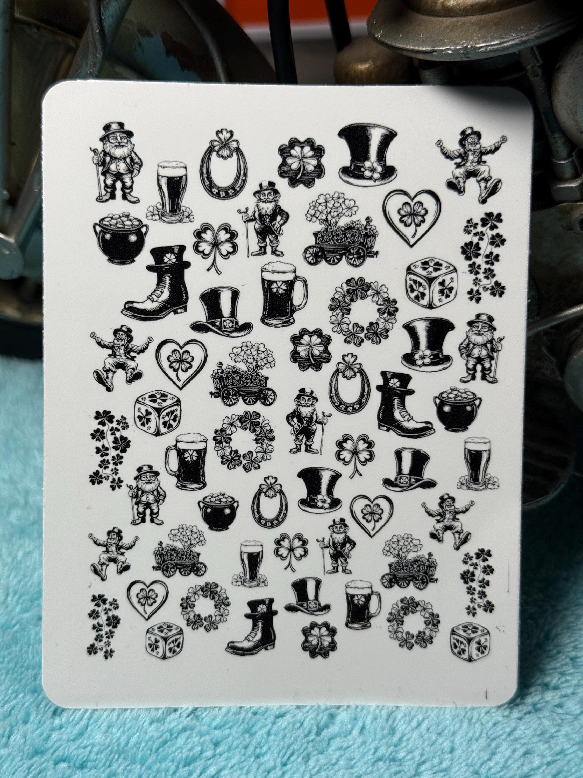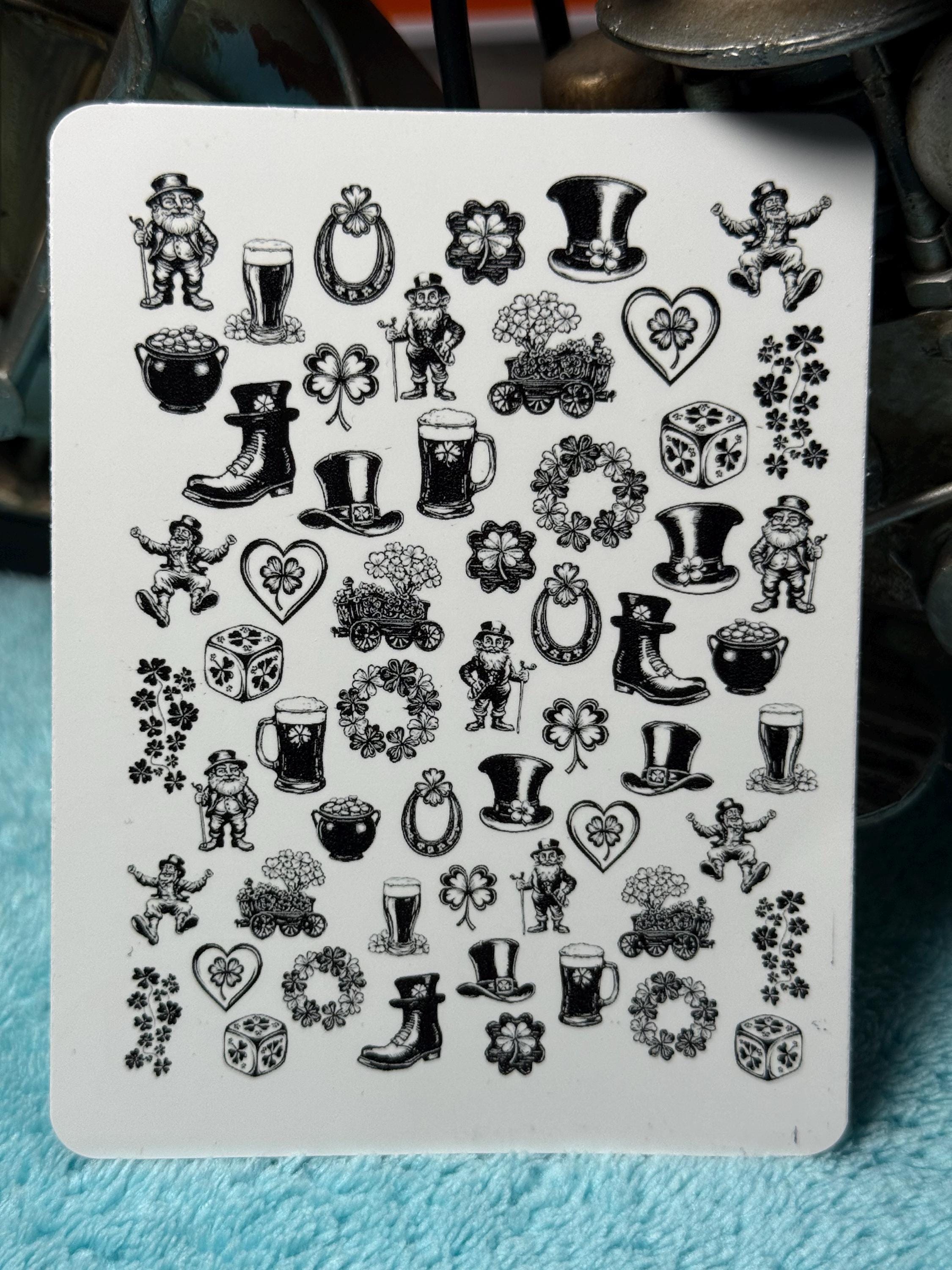 St. Patrick's Day Water Nail Stickers, Water Slide Stickers for Nails, Black Nail Art Stickers, Shamrock, Gnome