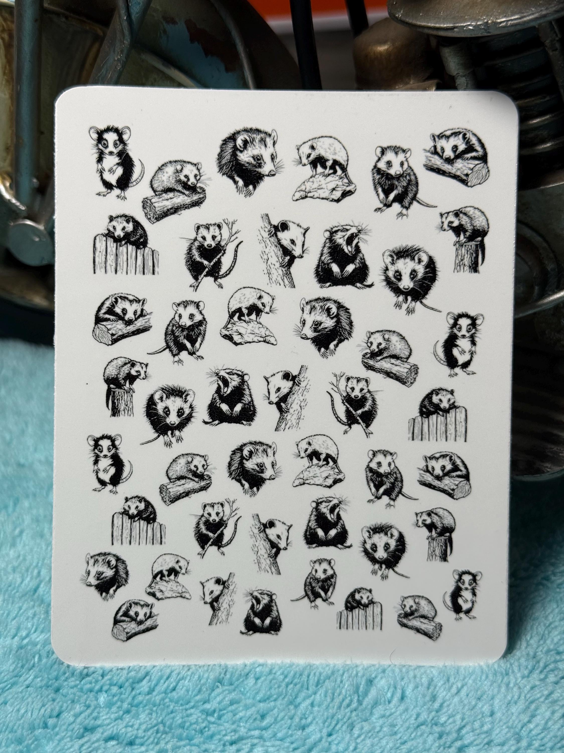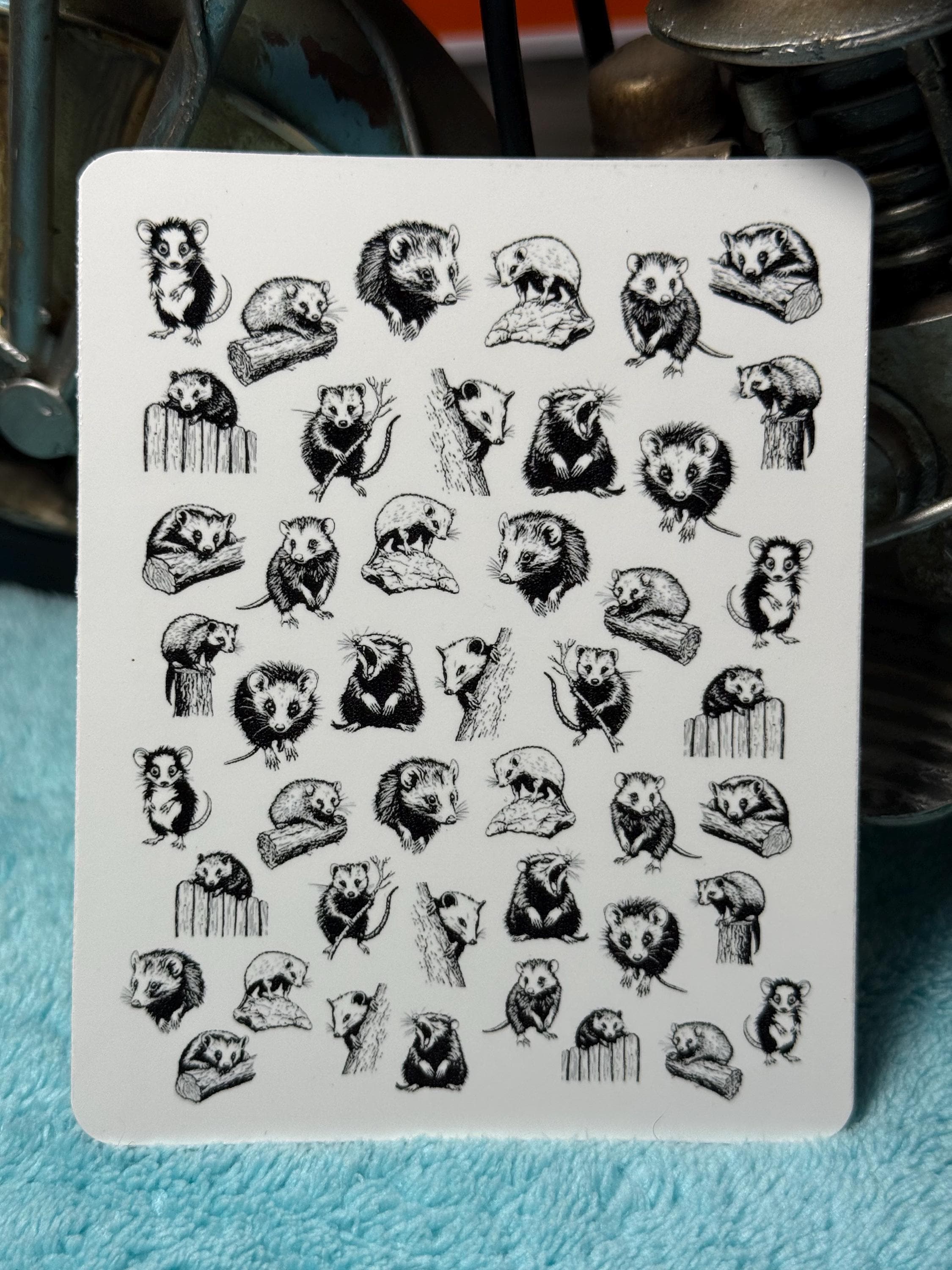 Opossum Water Nail Stickers, Water Slide Stickers for Nails, Black Nail Art Stickers