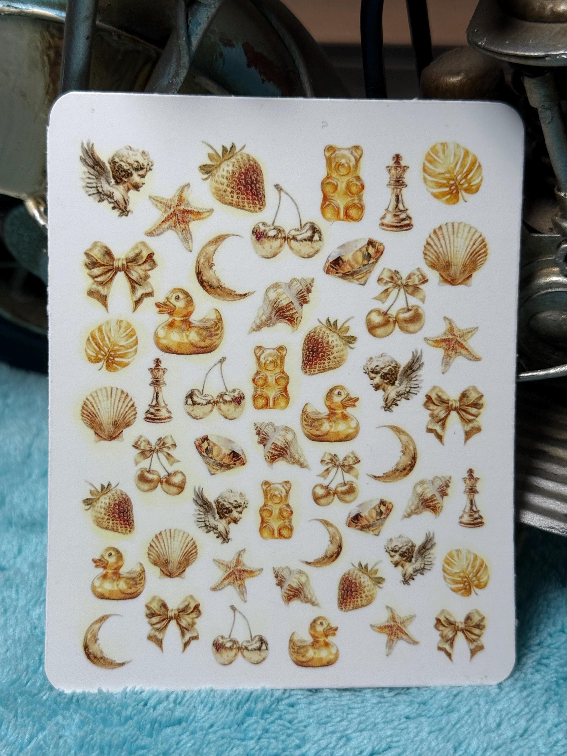 Simply cut out the desired design as close to the image as possible, briefly place it in water, and then carefully apply it to your nail. Allow to dry briefly and then seal with clear varnish as usual.