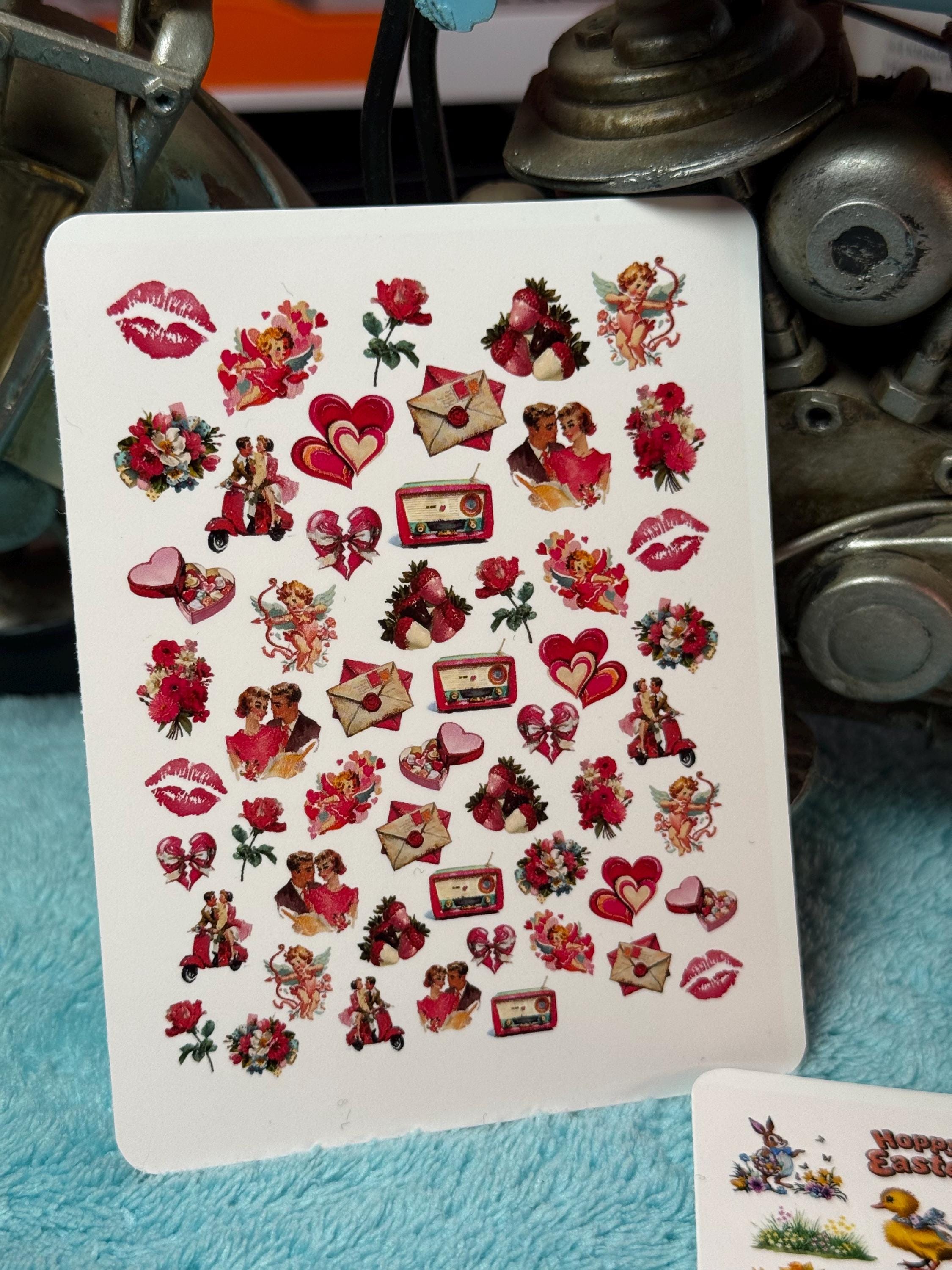 Valentine's Day Water Slide Nail Stickers - Water Slide Stickers - Nail Art - Water Nail Stickers - Vintage Lips, Hearts, Flowers