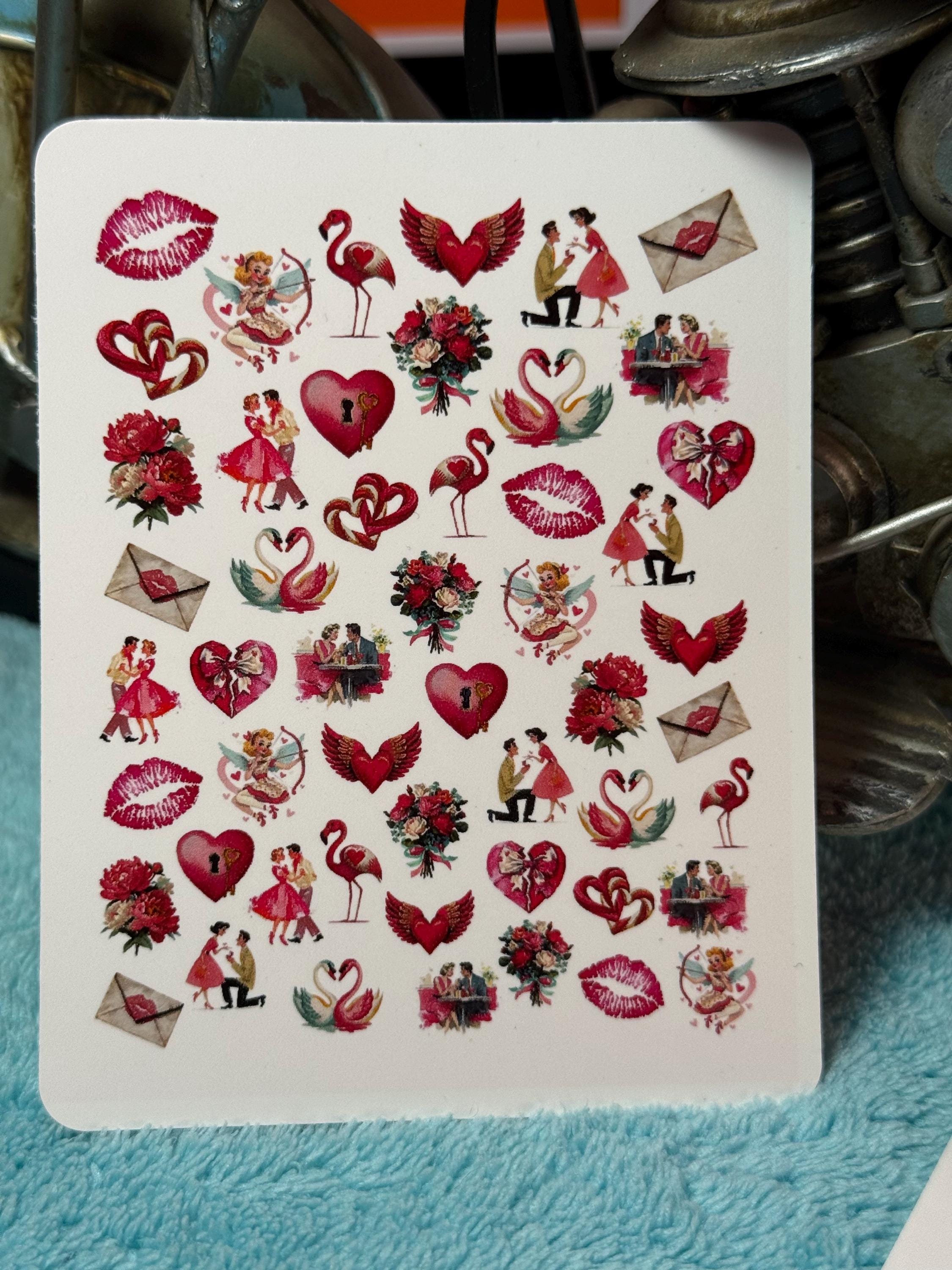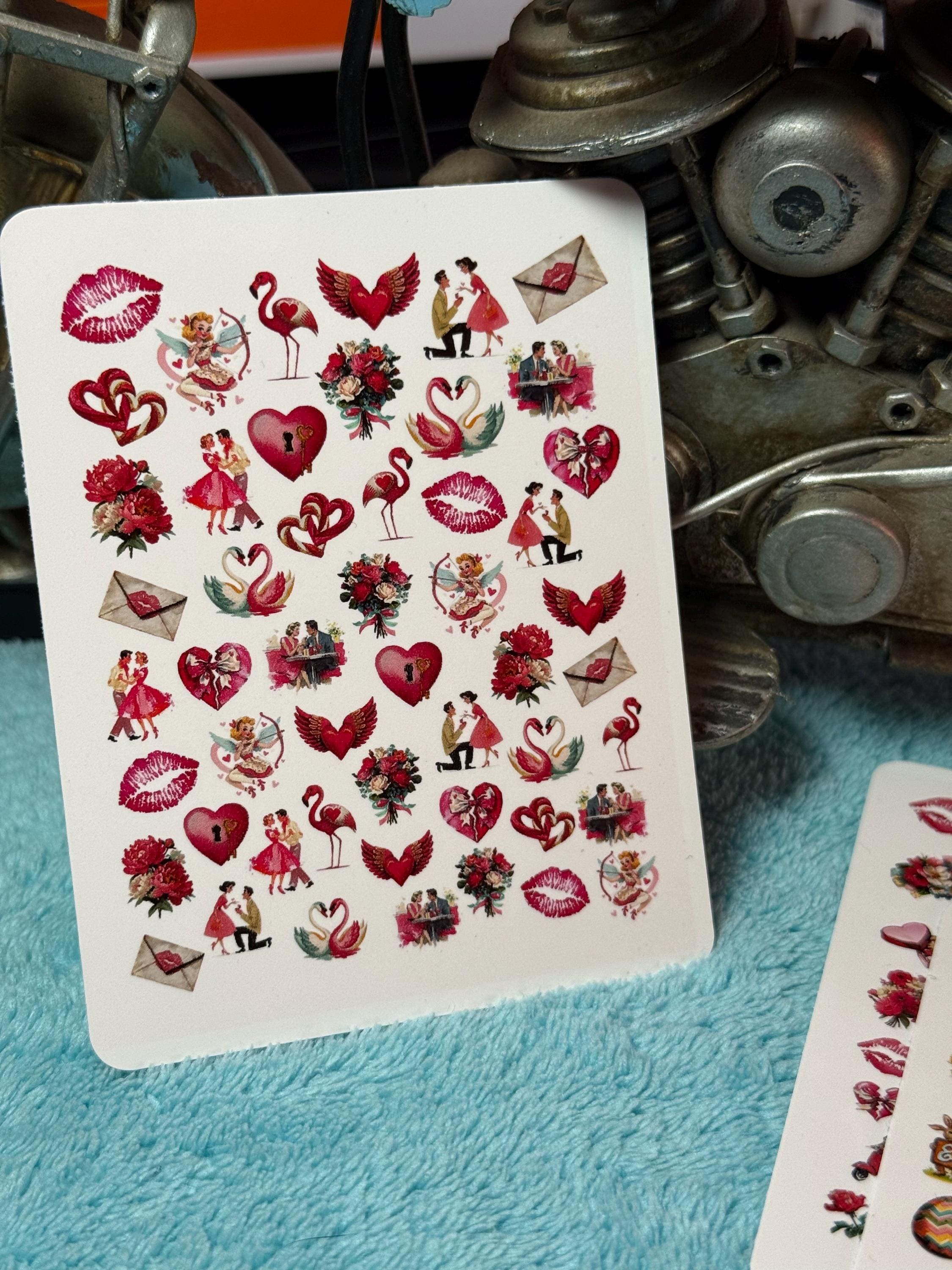 Valentine's Day Water Slide Nail Stickers - Water Slide Stickers - Nail Art - Water Nail Stickers - Vintage Lips, Swan, Couples