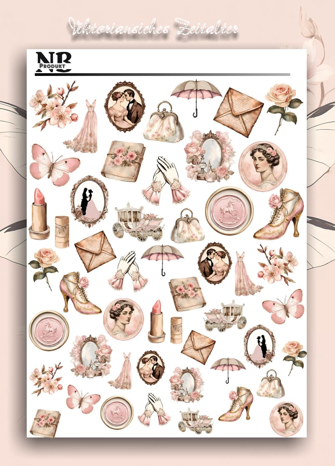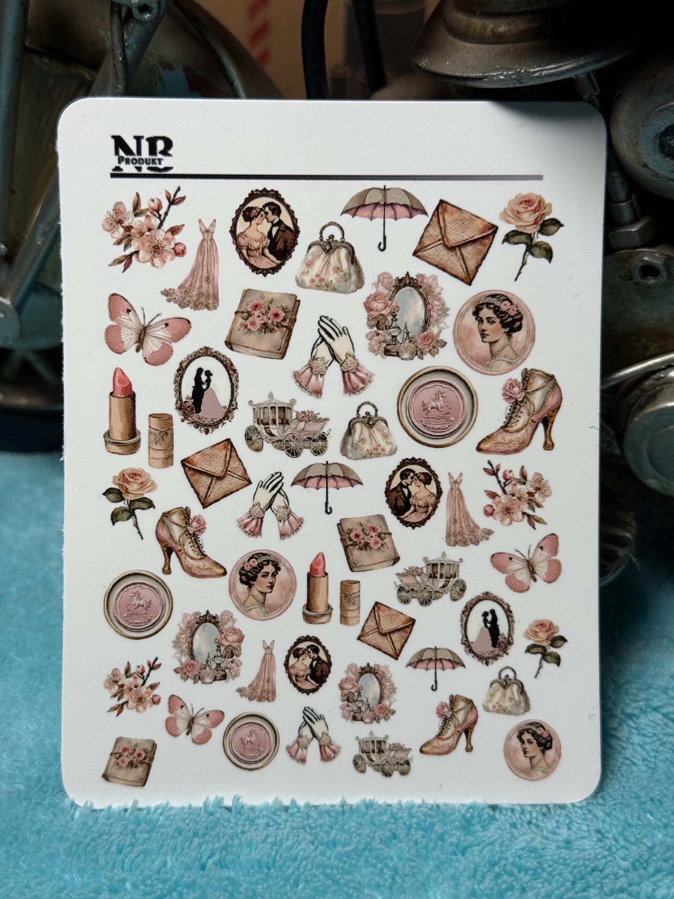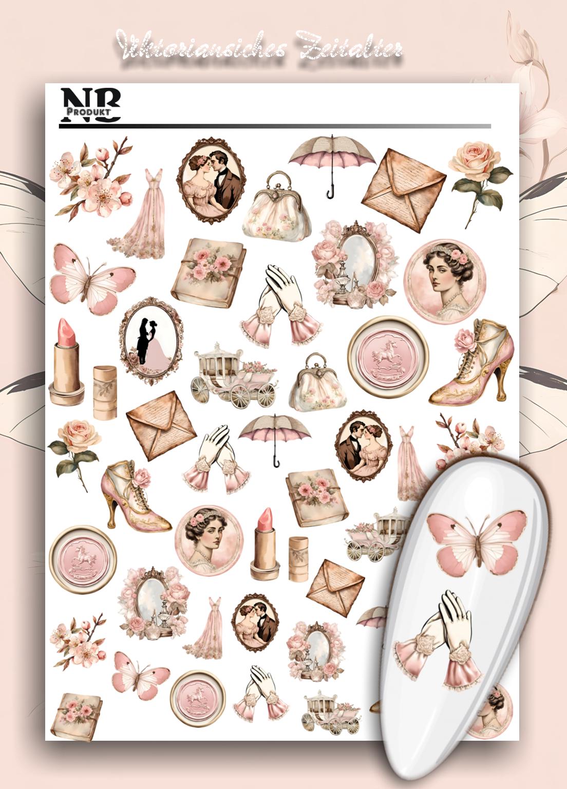 Victorian Era Water Slide Nail Stickers, Regency Era Nail Stickers, Dusty Rose