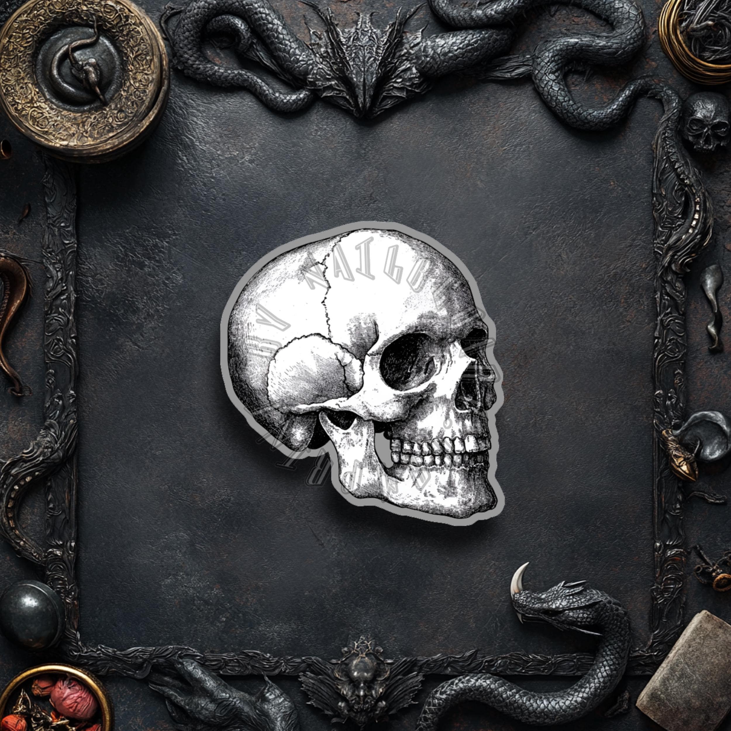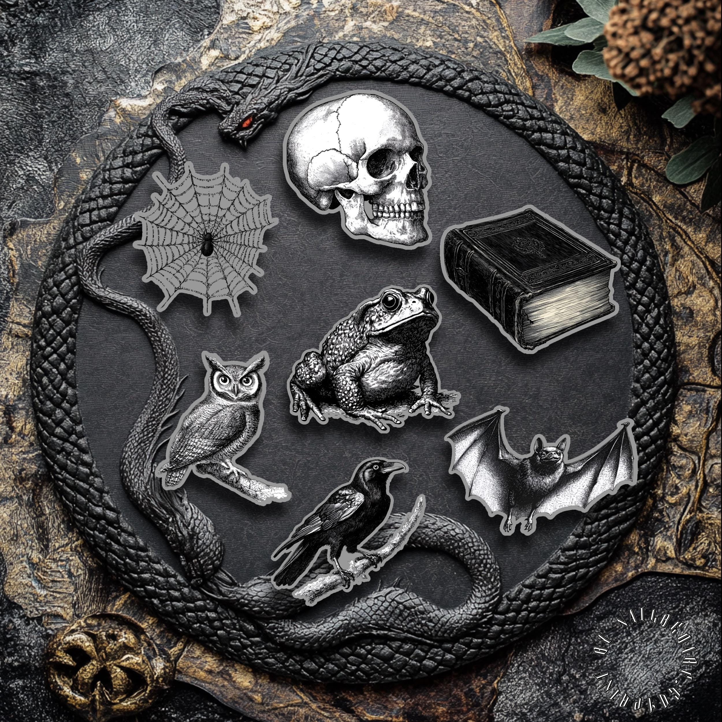 7 spooky vinyl stickers with a Gothic Halloween theme.